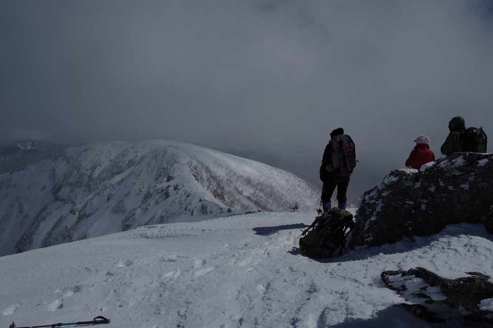 金山岩(2532m)の手前 2400m地点で平らな場所があり「テント泊適地だなぁ」といいながら本日のランチ会場に決定。