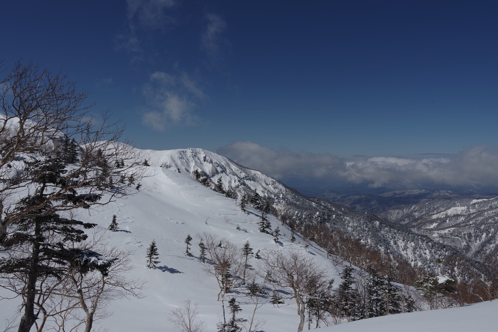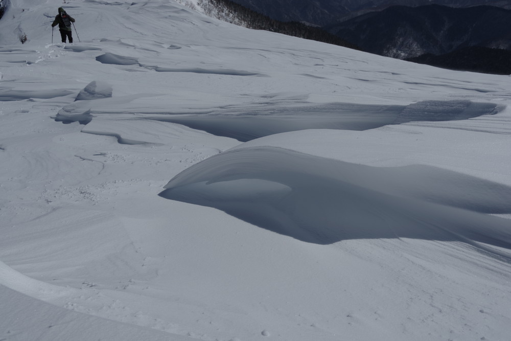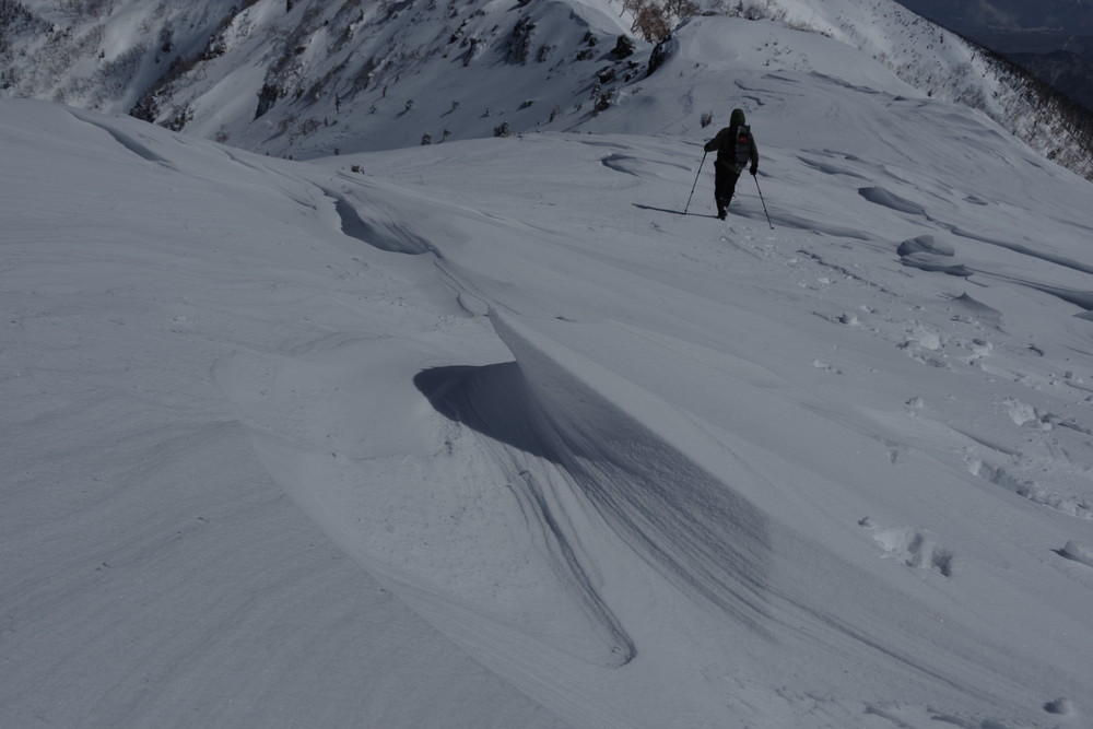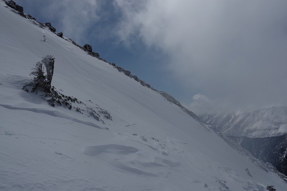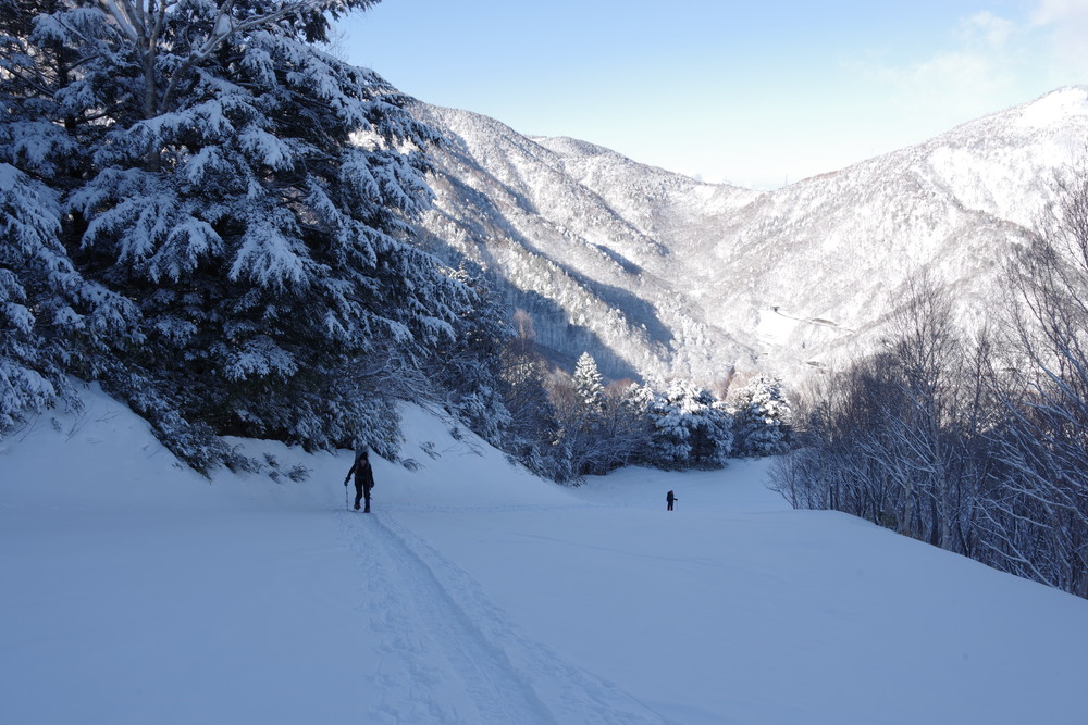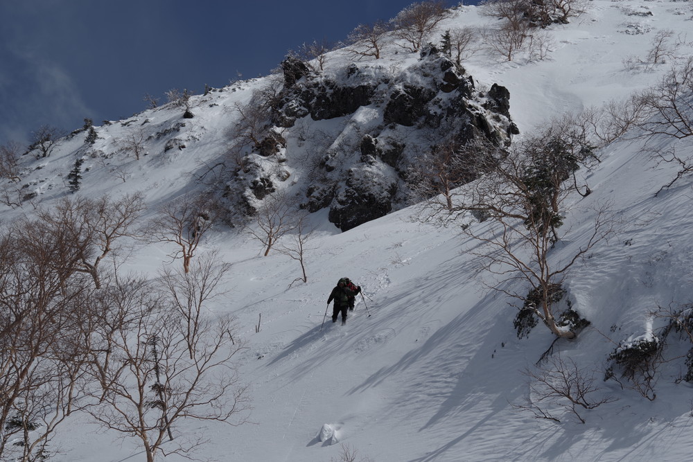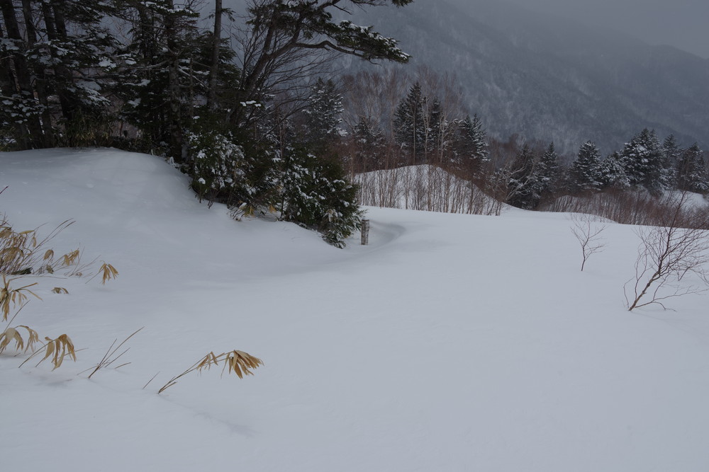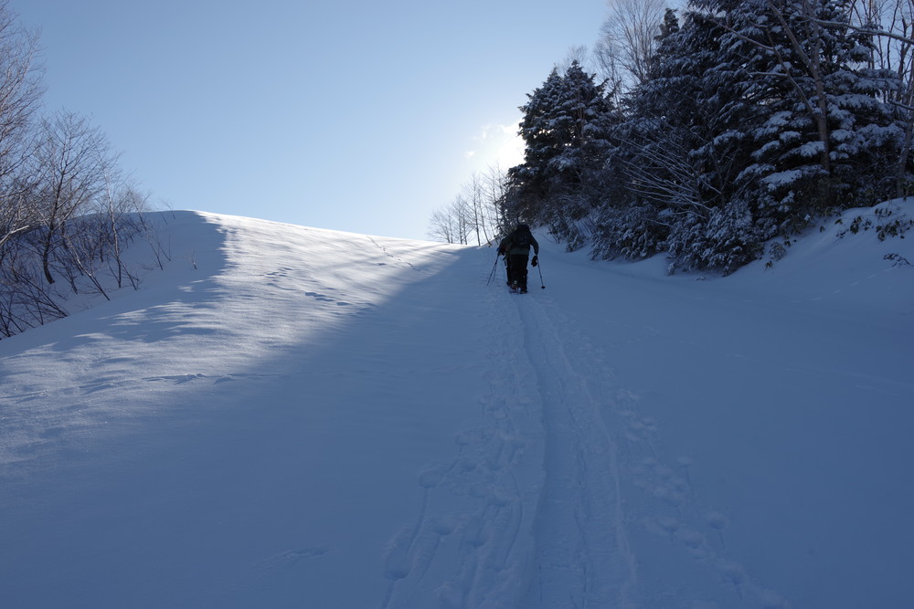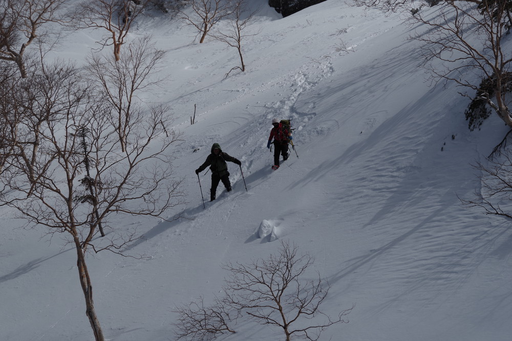 ほぼ同時にスタートのスキーヤー2名さんのトレースを辿らせていただき助かりました。