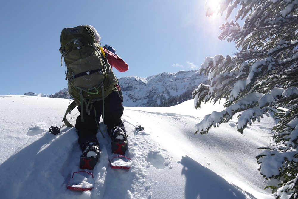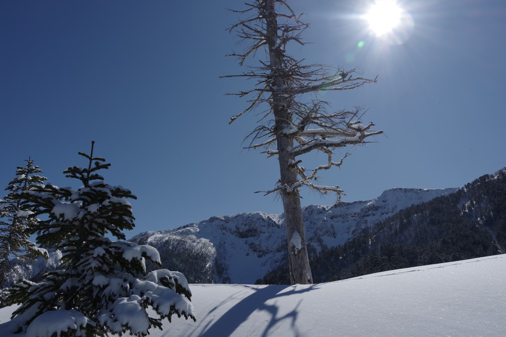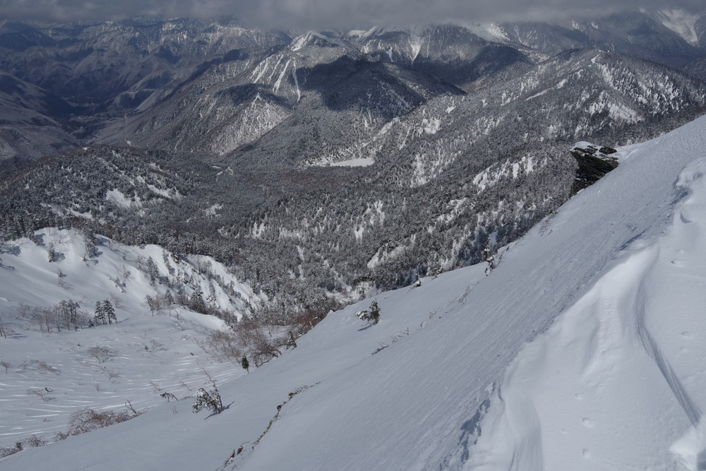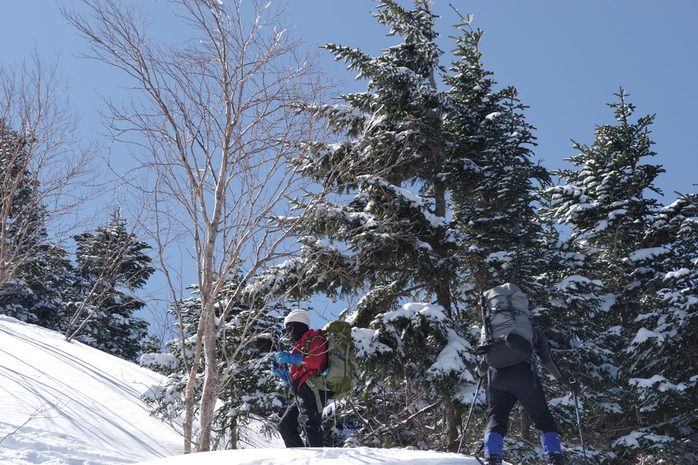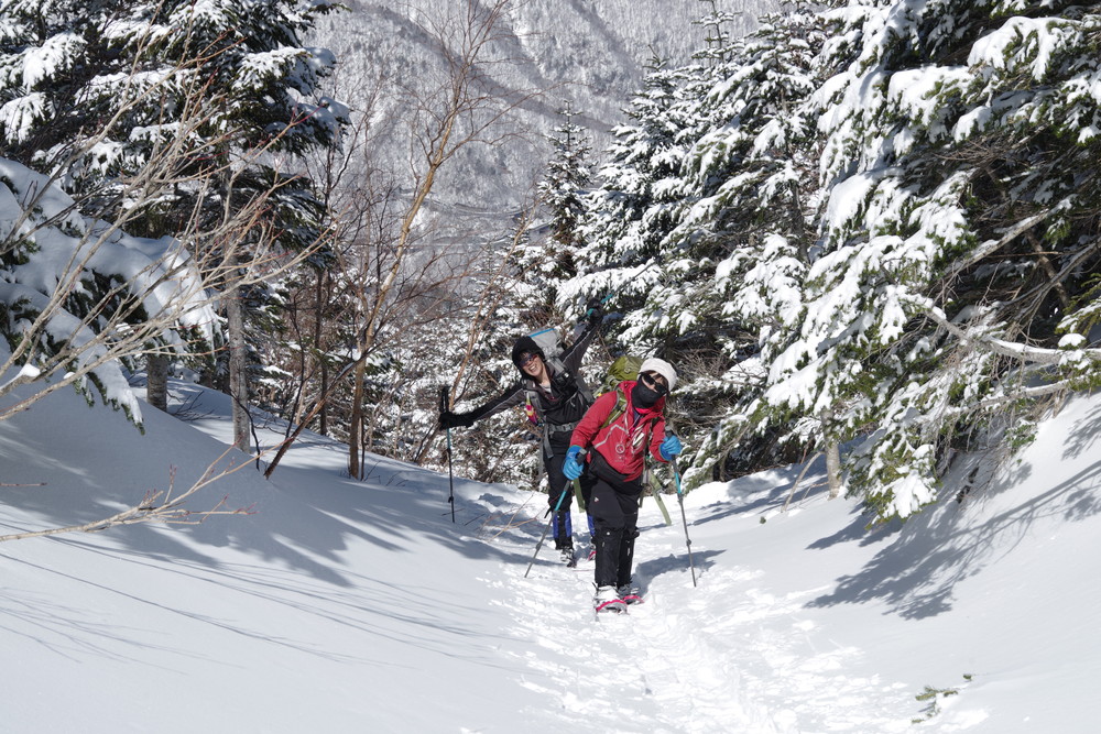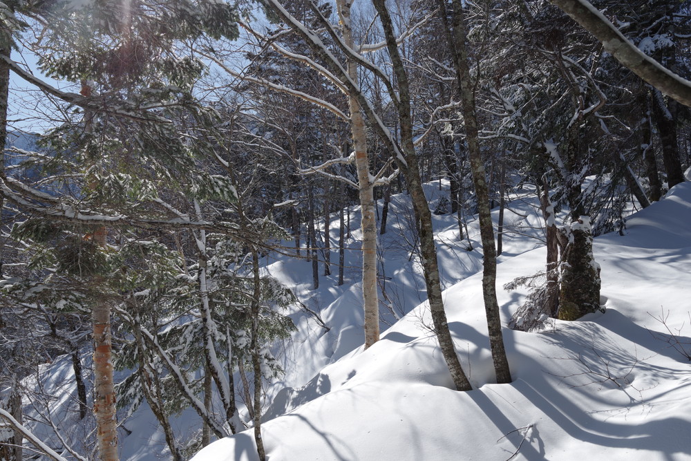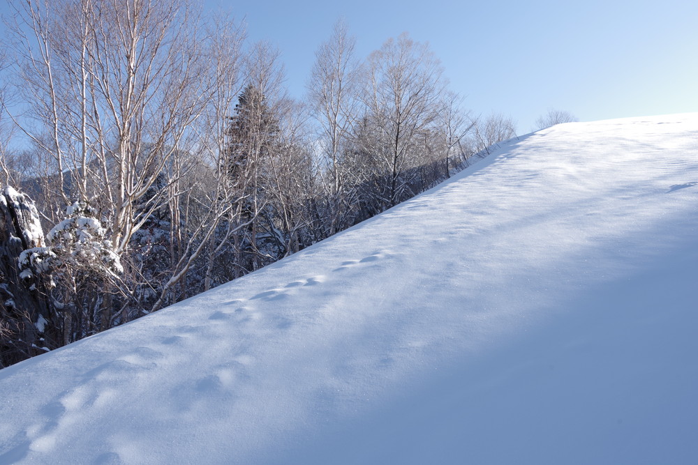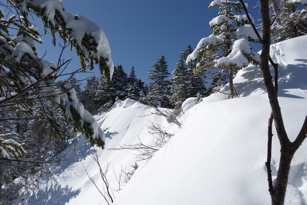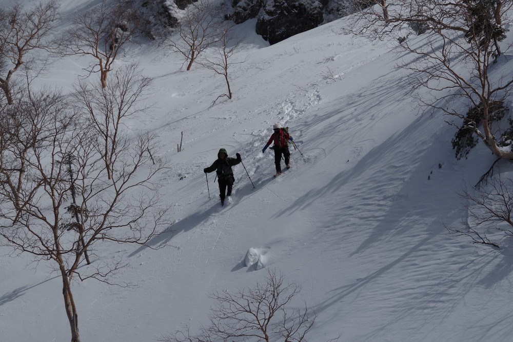 ただし急斜面のトラバースはパウダースノーということもあり谷側の足がズルズルして内ももに力が入りました。