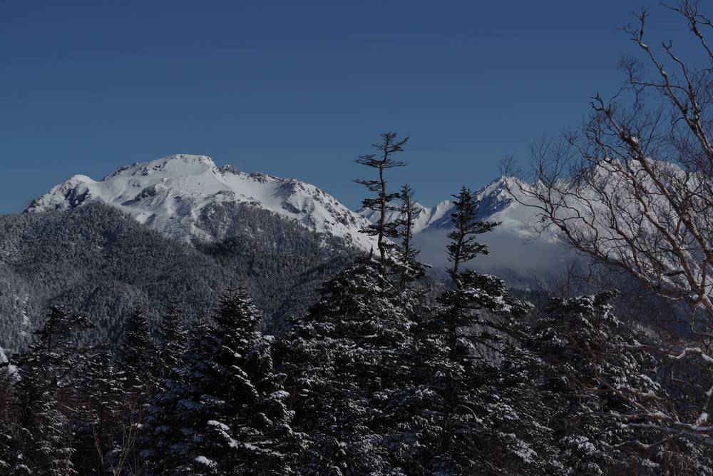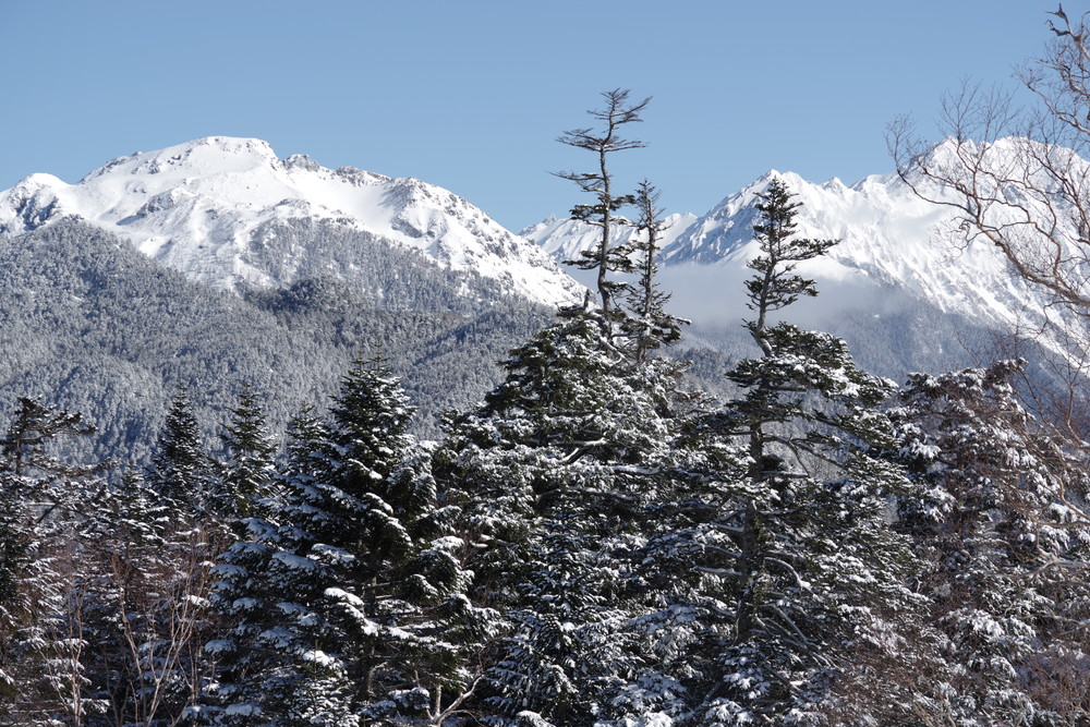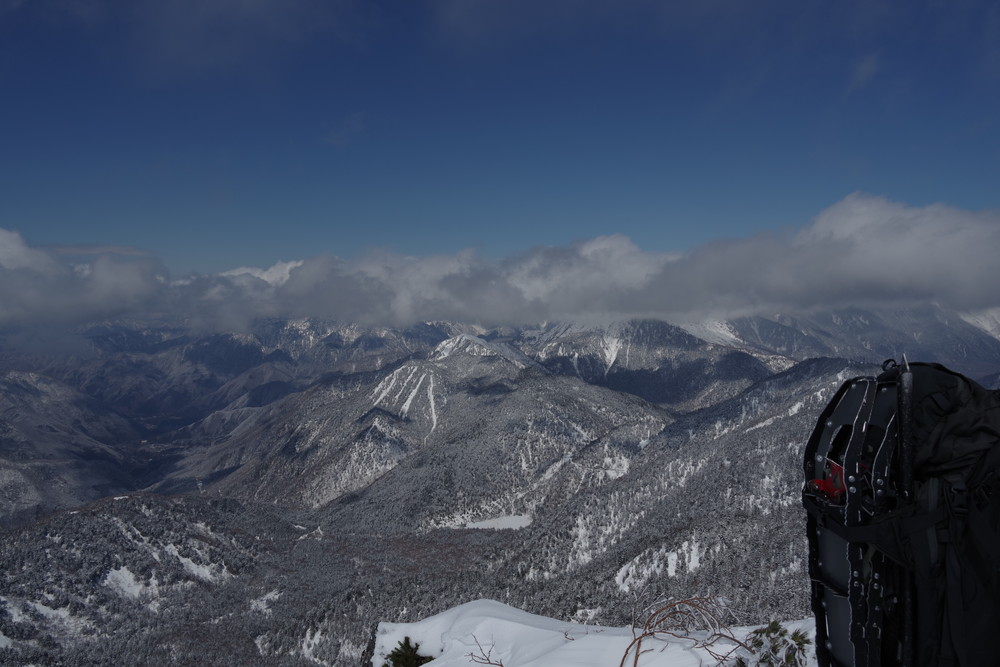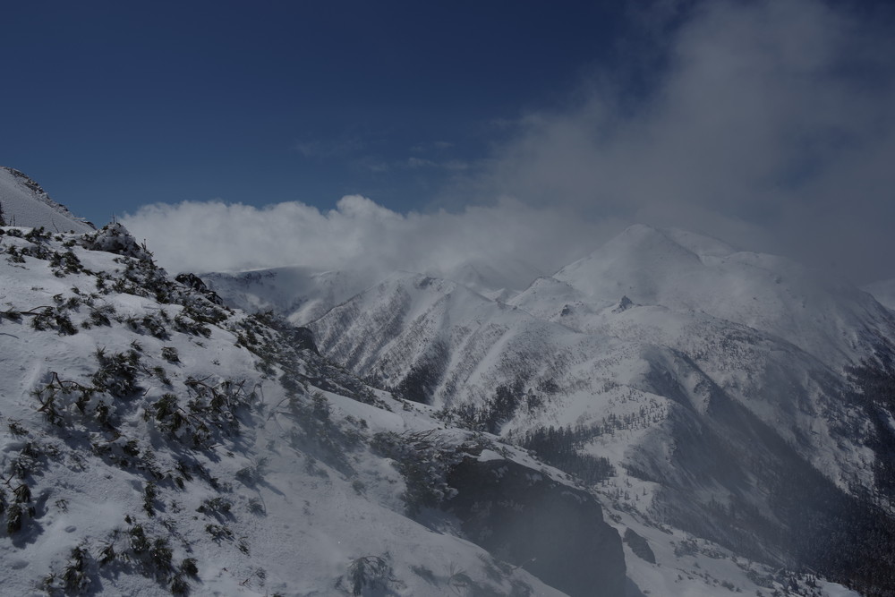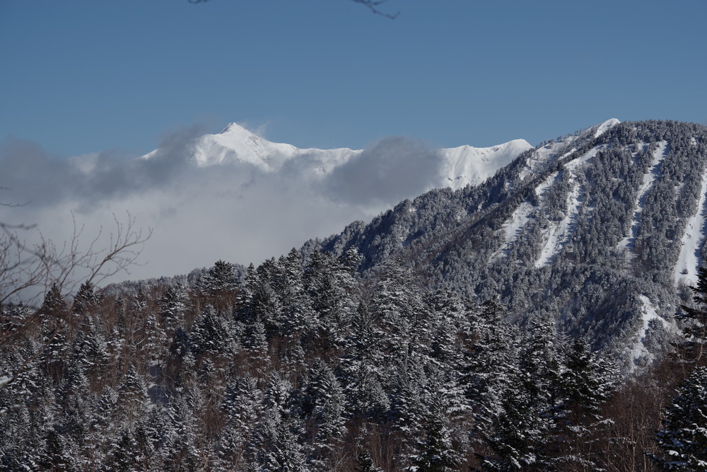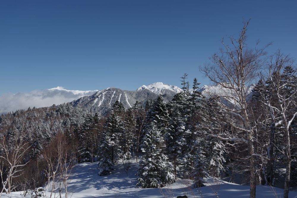乗鞍も全貌をくっきり見るという時間帯はありませんでした。しかしきれいな青空に名峰たちの白が映えておりました。