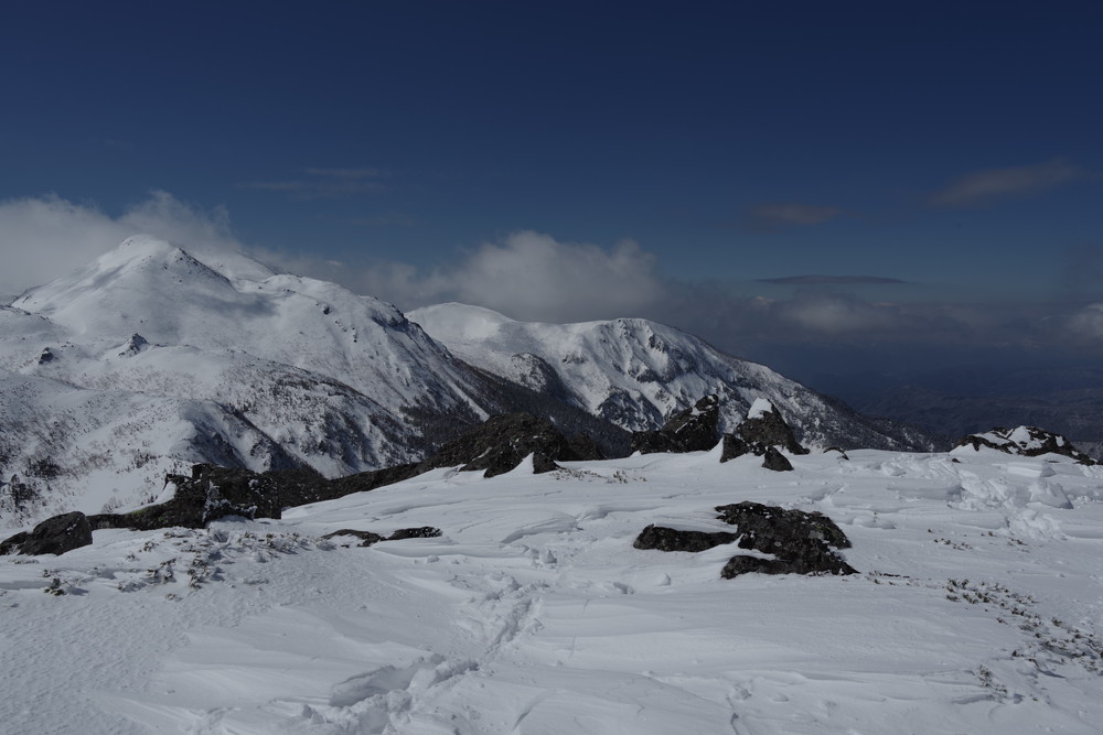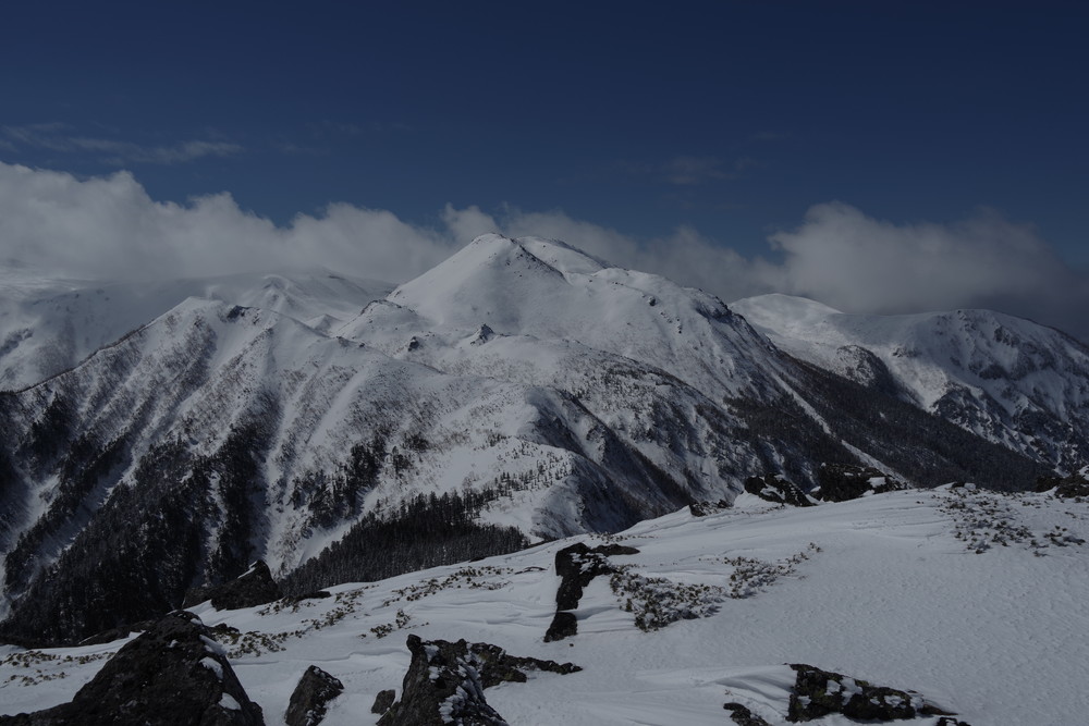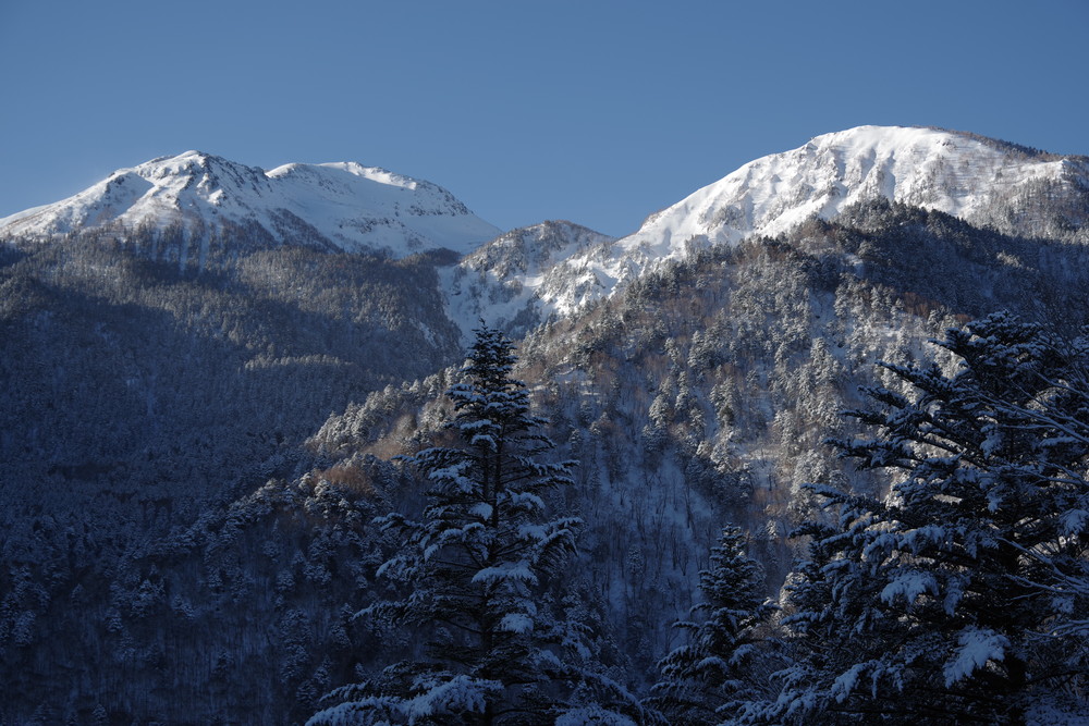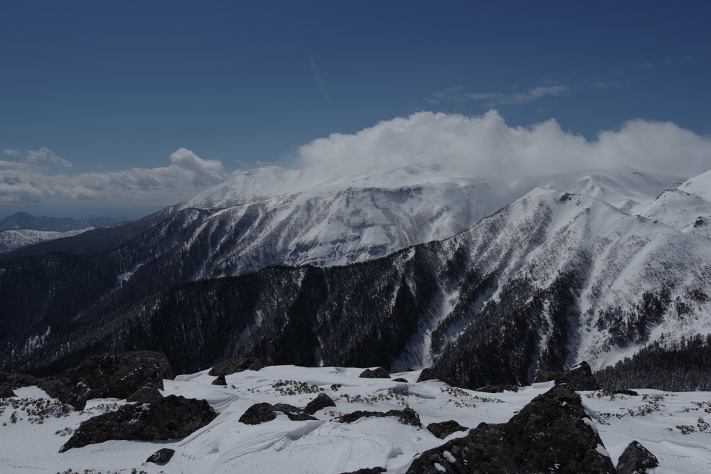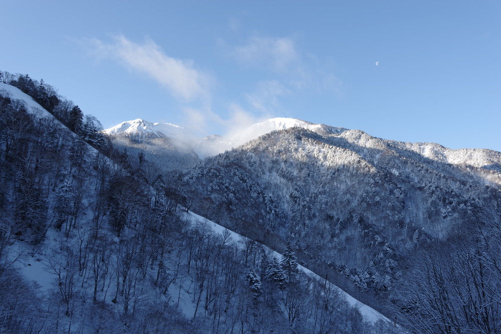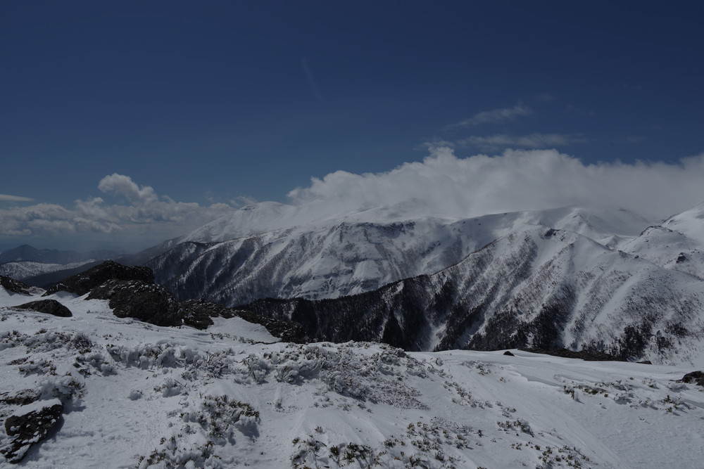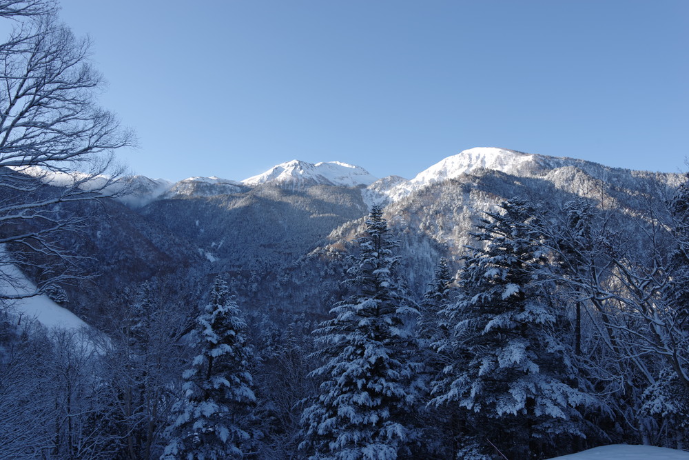 乗鞍も全貌をくっきり見るという時間帯はありませんでした。しかしきれいな青空に名峰たちの白が映えておりました。