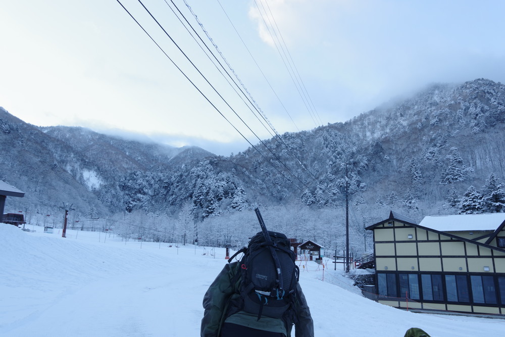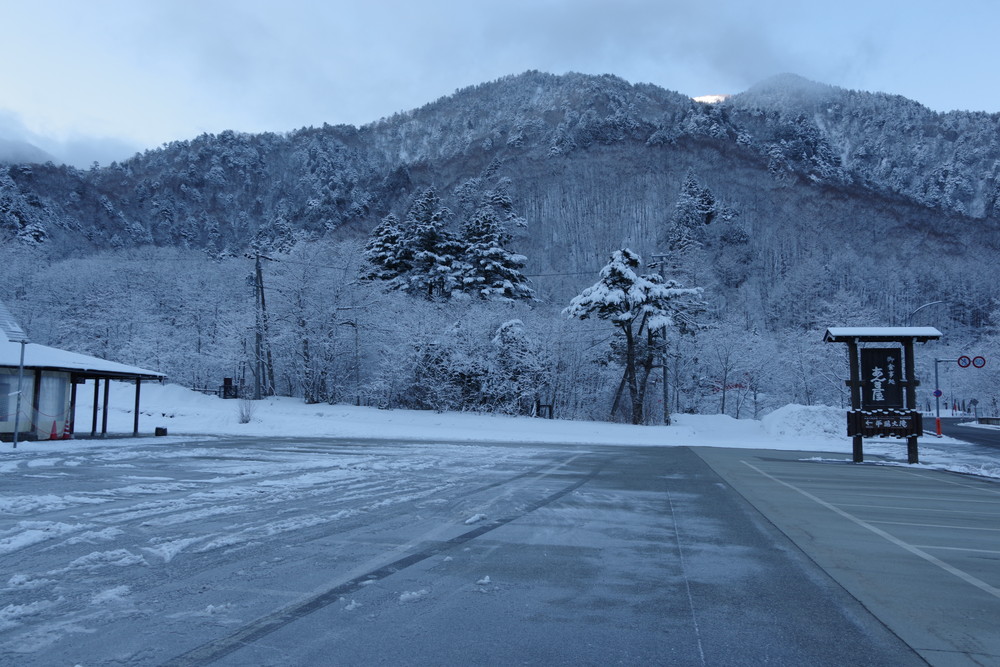 平湯温泉スキー場の駐車場にとめさせていただきました。