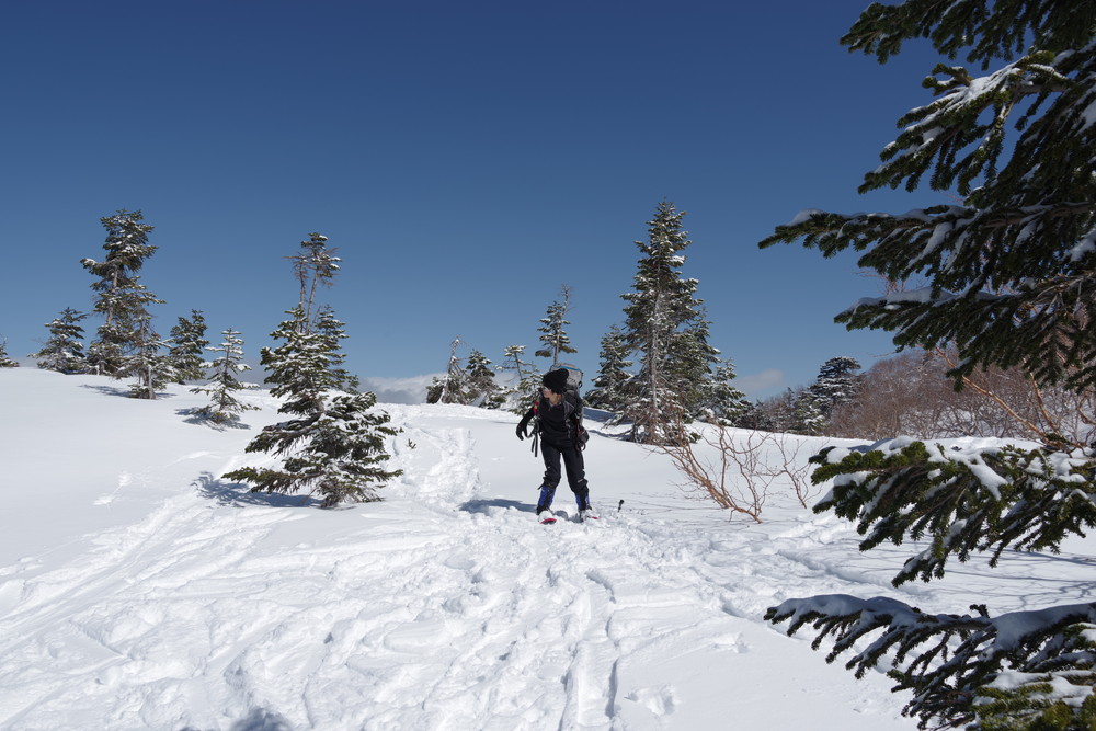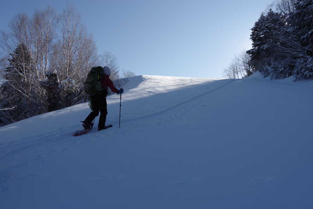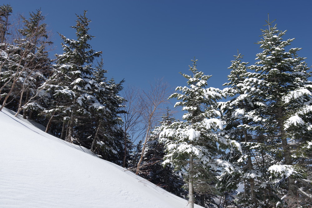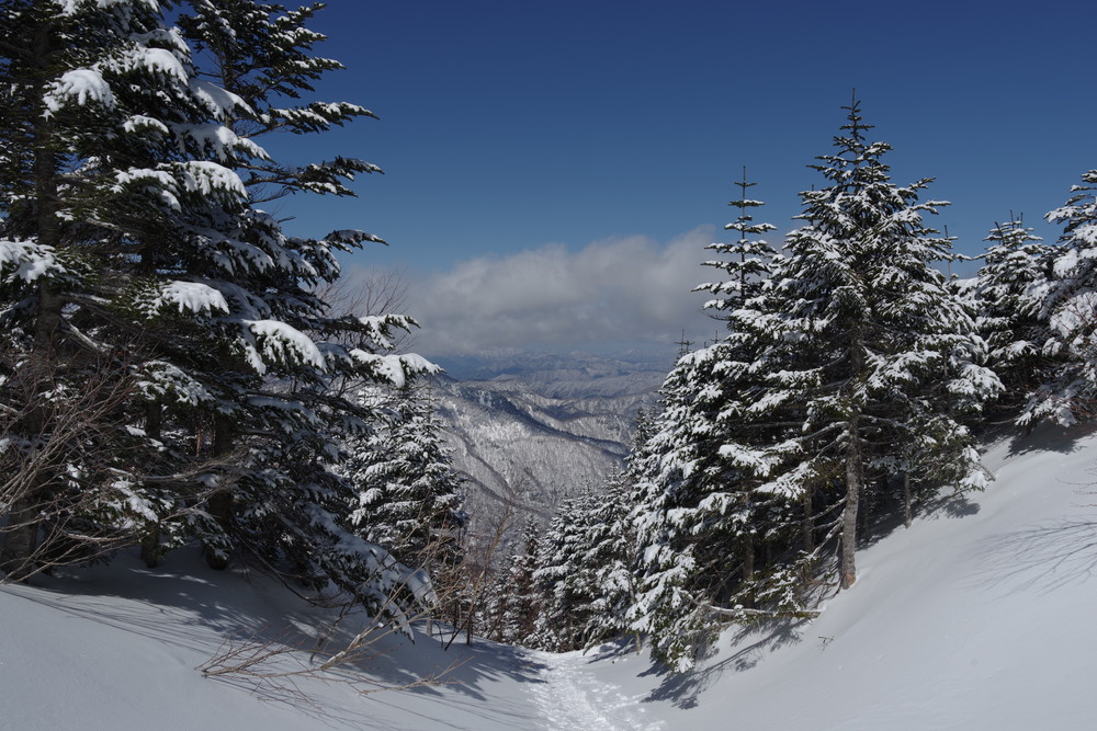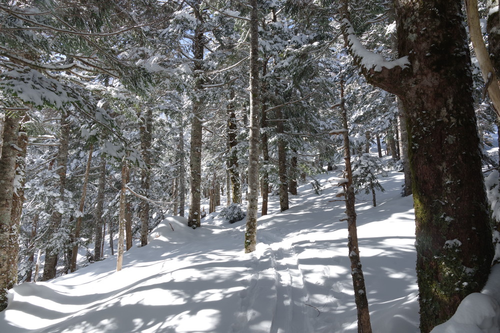 その先木の枝がちょっと邪魔だったり、急斜面につきジグザグに進んだりはありましたがさほどでもありません。