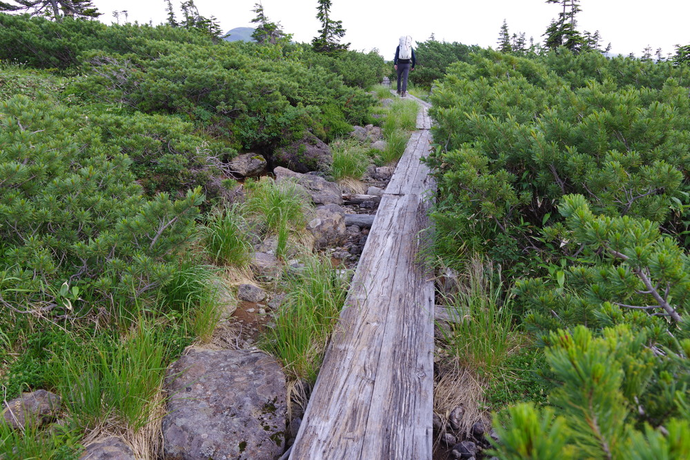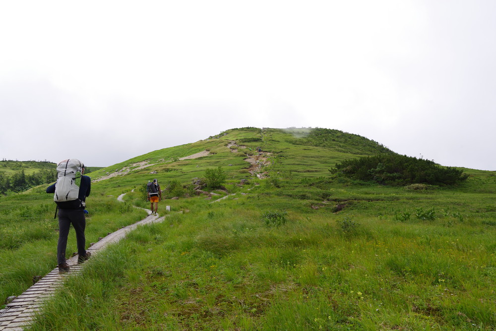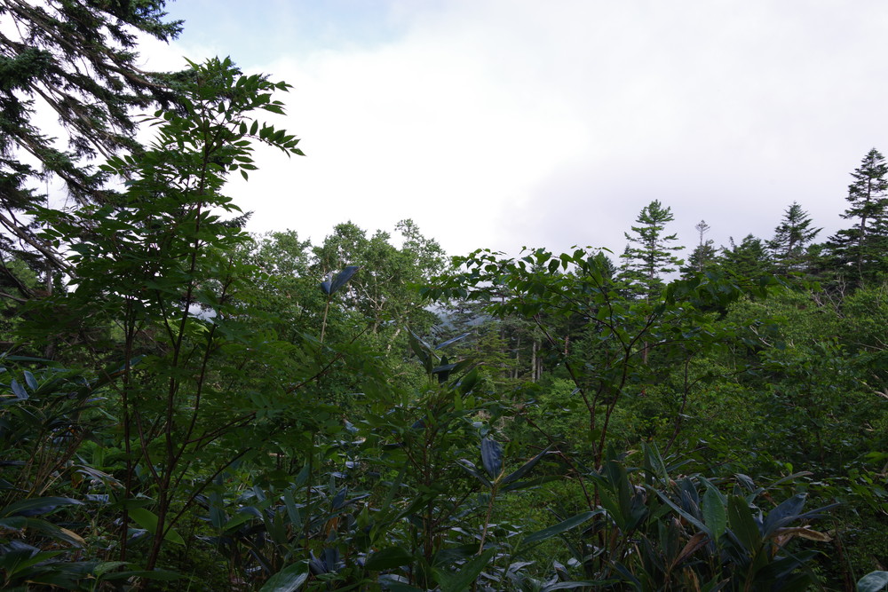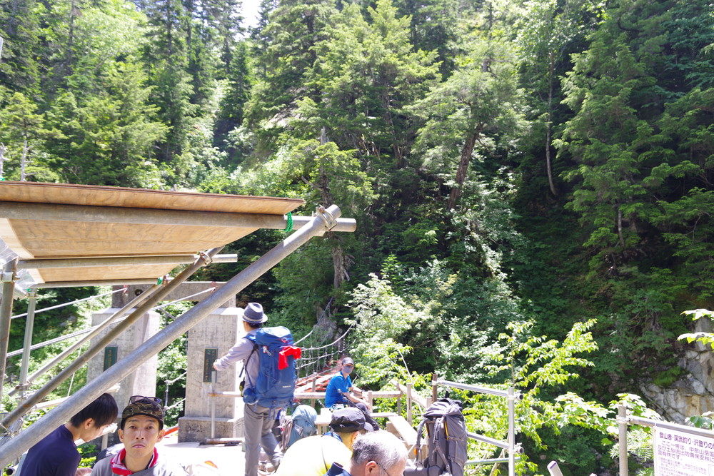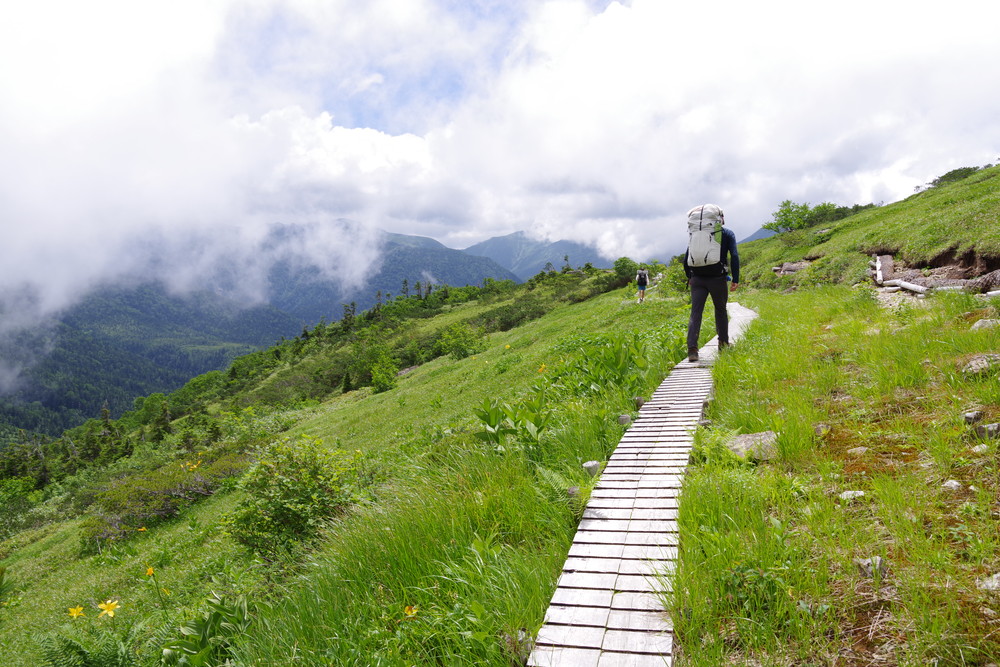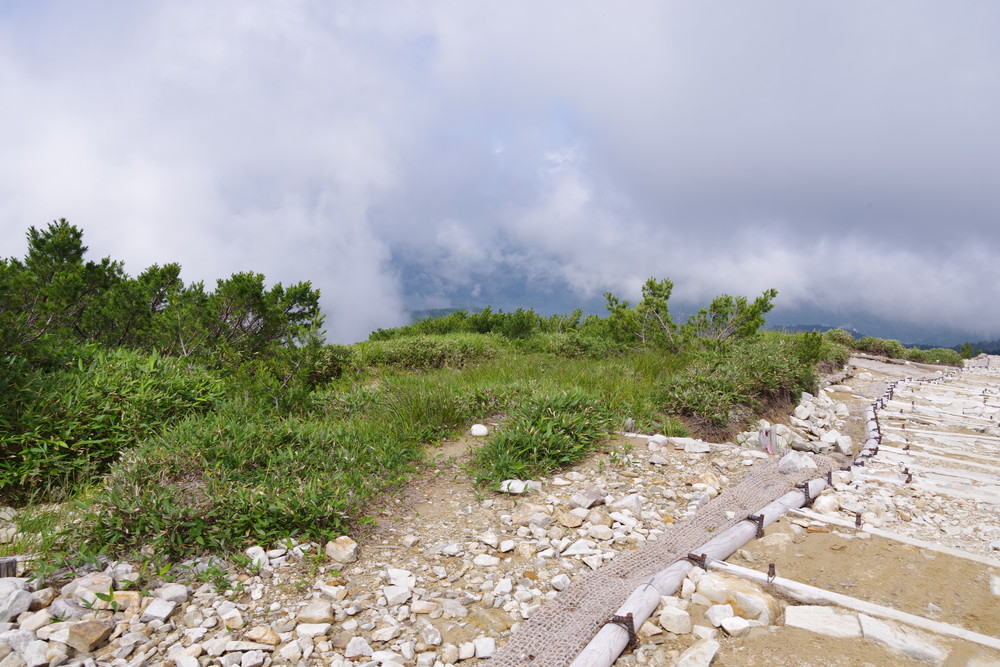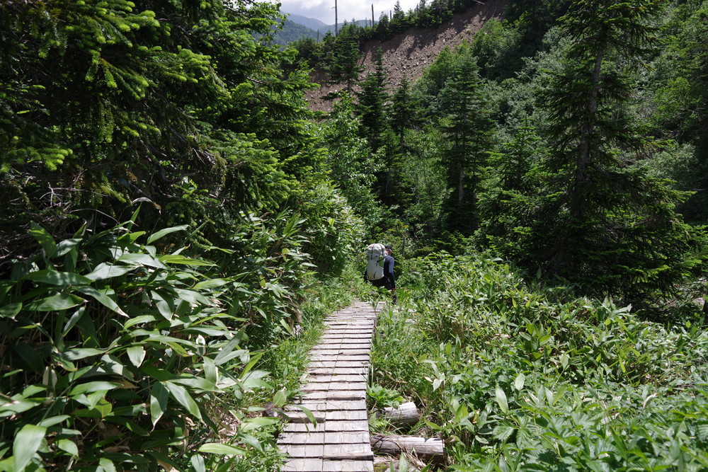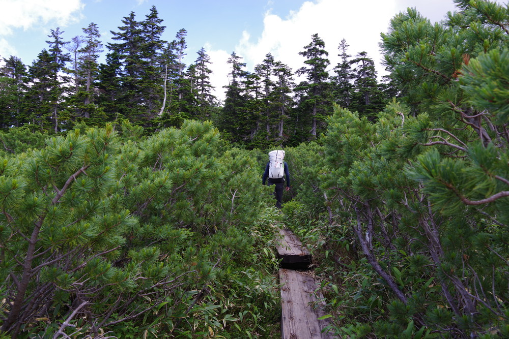 登山道を登り始めてすぐ重いザックに心が折られました。これは足腰よりも先に肩がやられそうだ・・・。