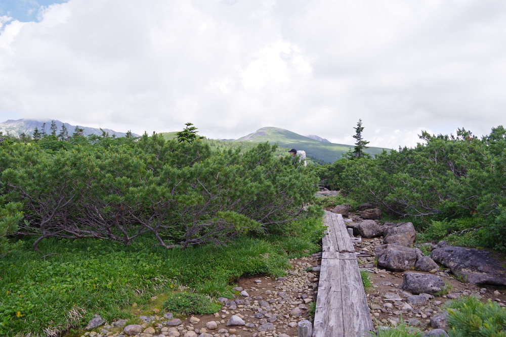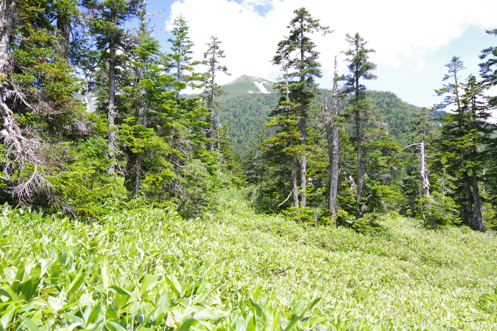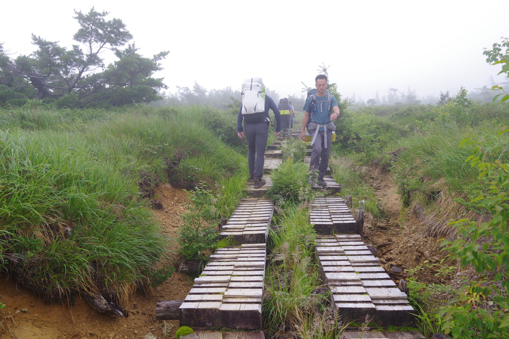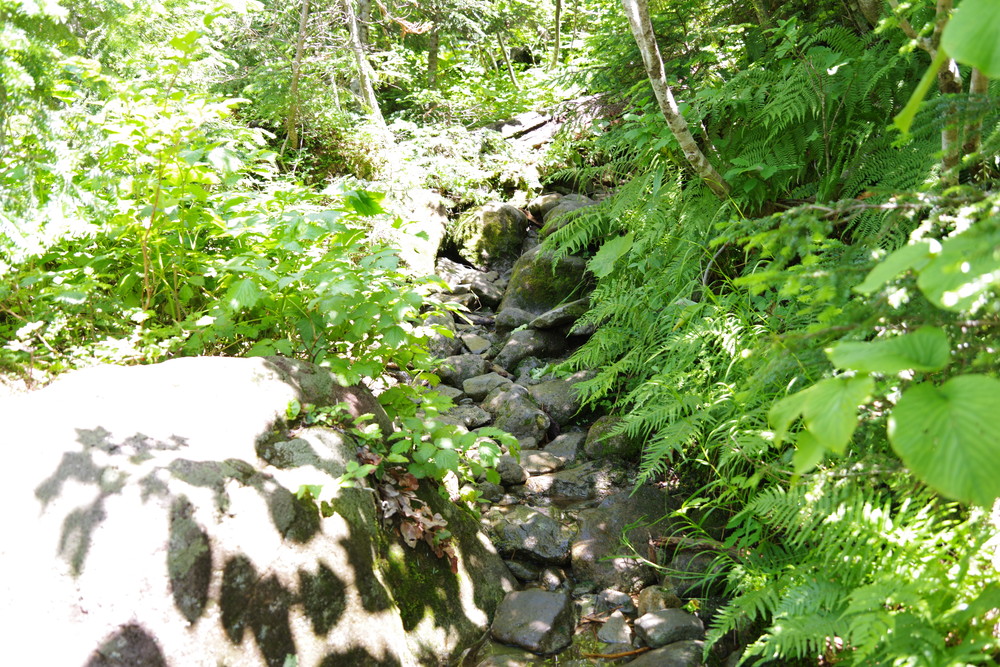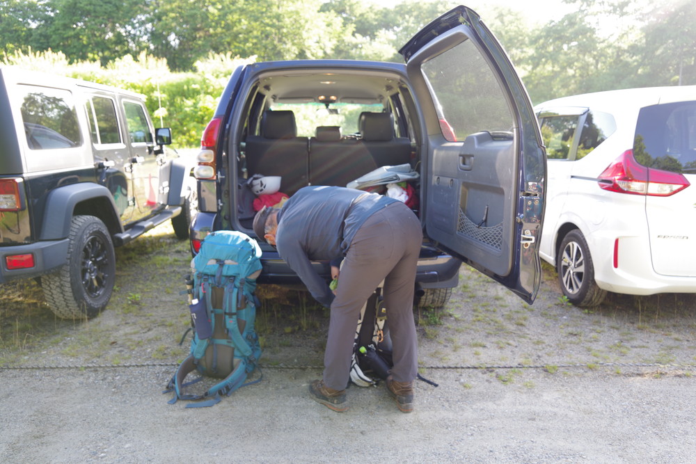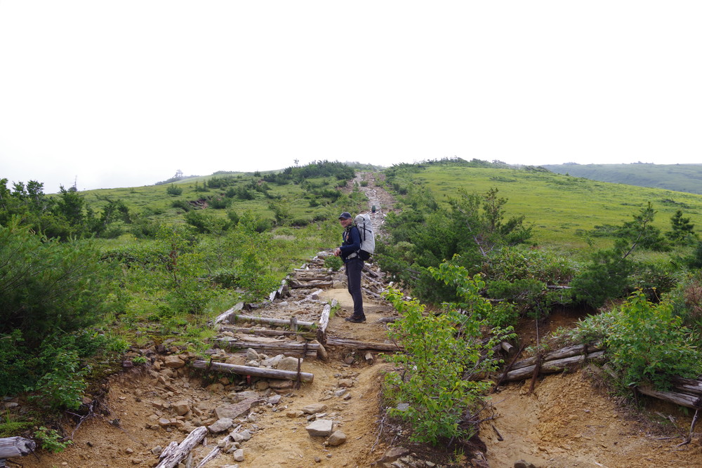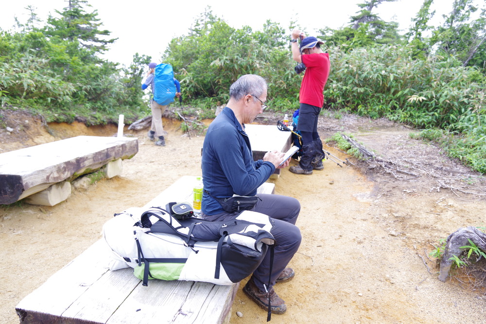 登山道を登り始めてすぐ重いザックに心が折られました。これは足腰よりも先に肩がやられそうだ・・・。
