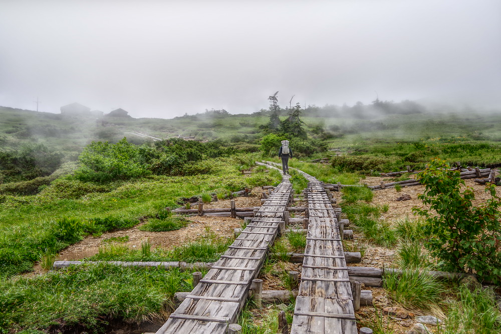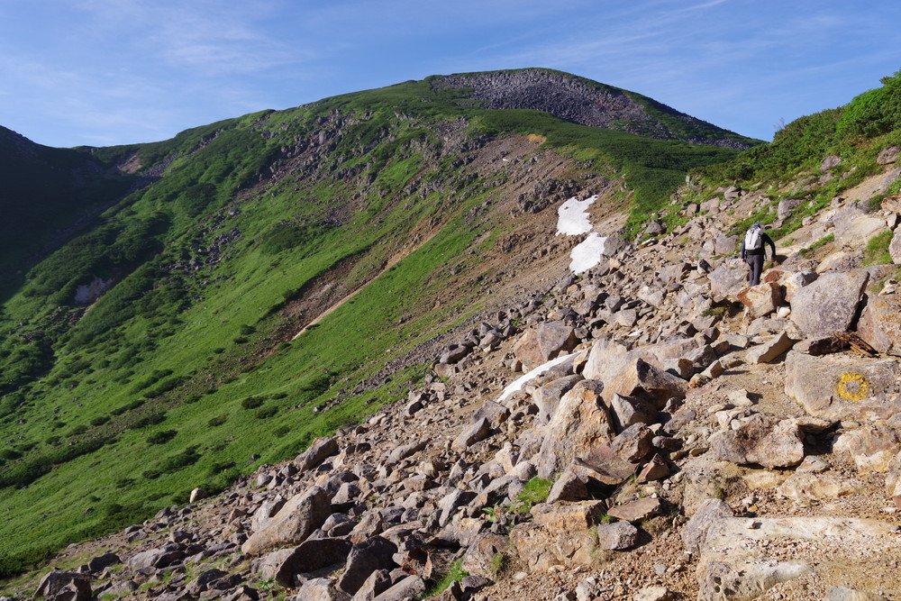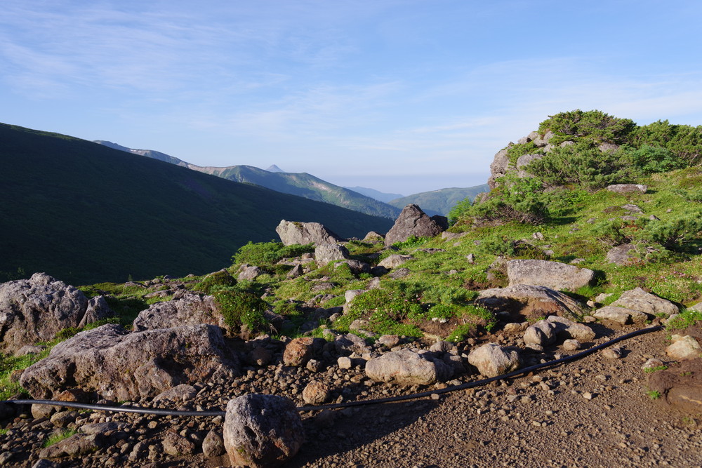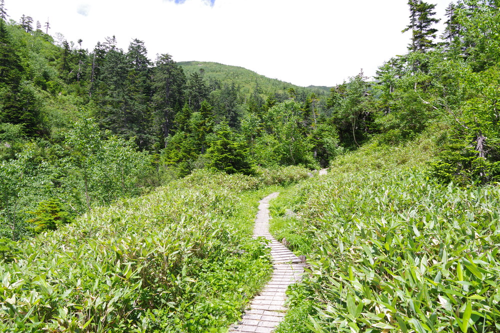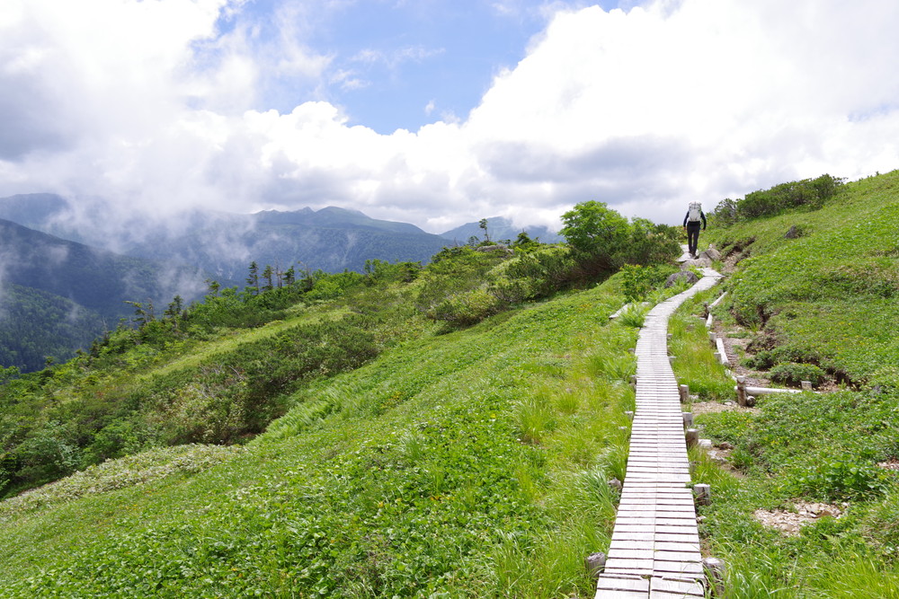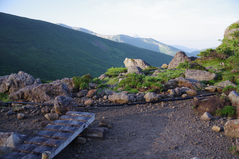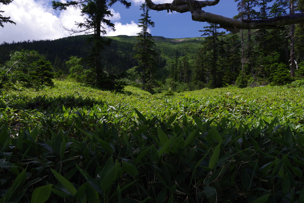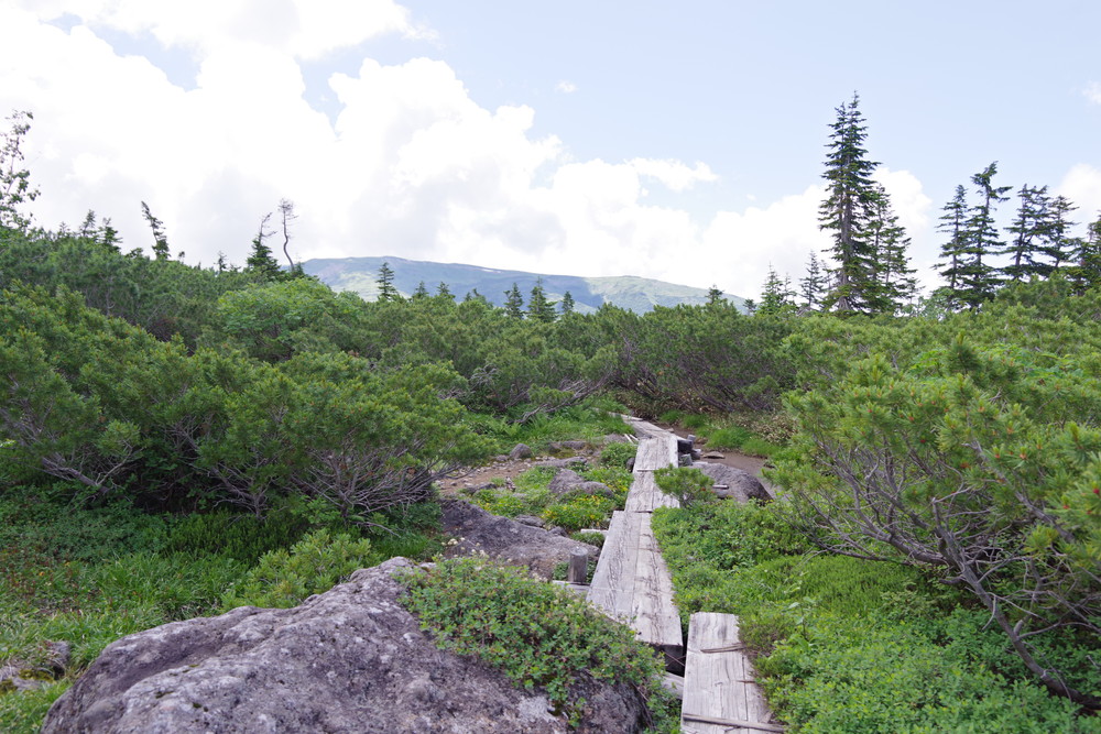 登山道を登り始めてすぐ重いザックに心が折られました。これは足腰よりも先に肩がやられそうだ・・・。