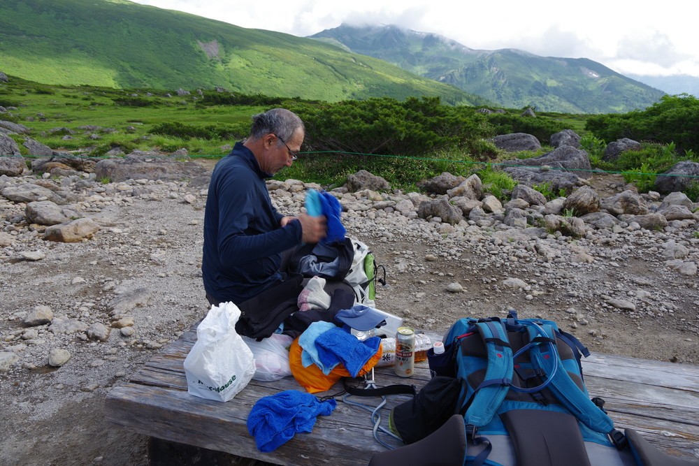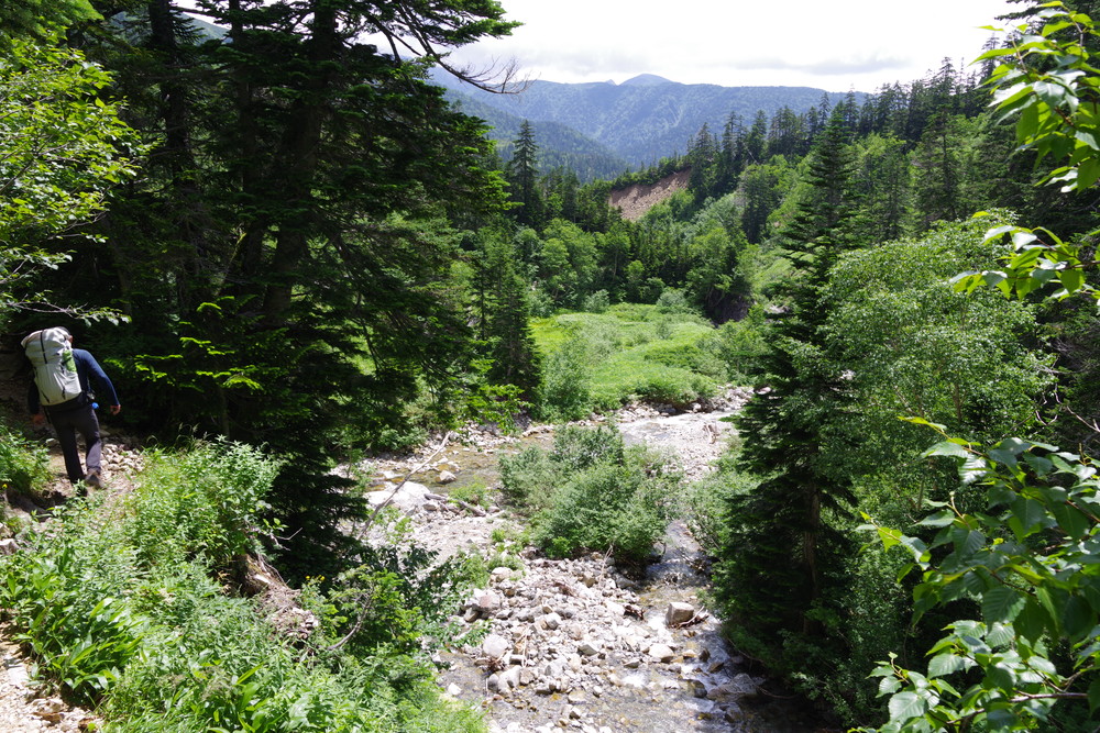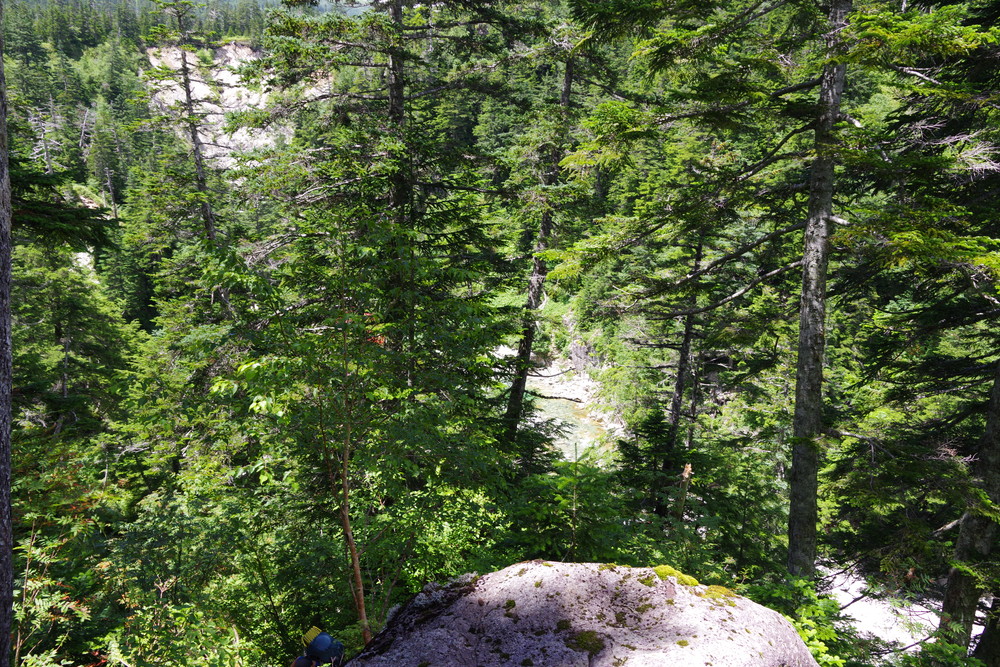 ぶらぶらペットボトルをぶら下げるスタイルはやめてキャメルバッグで水分を取ることにし薬師沢小屋までの岩々の激下りに備えました。