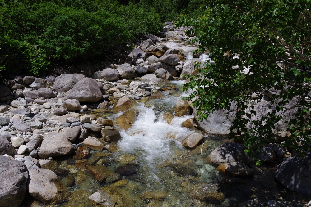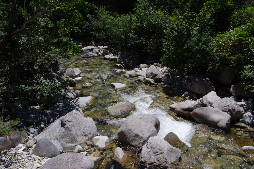 皆さん登山靴のまま何度も渡渉して大変だ・・みたいなことを言われるのですが計国隊長のナイスジャッジで最初に沢靴にしたので渡渉もへっちゃら。