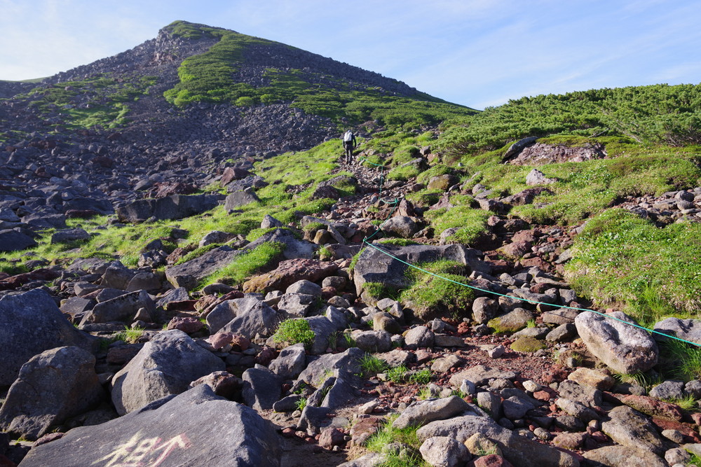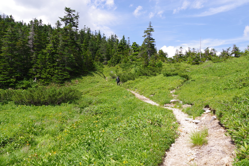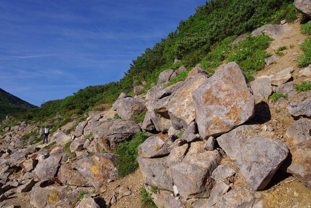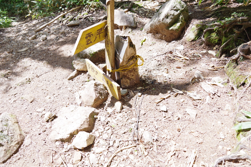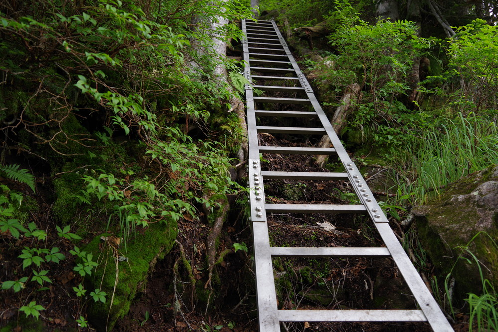 登山道を登り始めてすぐ重いザックに心が折られました。これは足腰よりも先に肩がやられそうだ・・・。