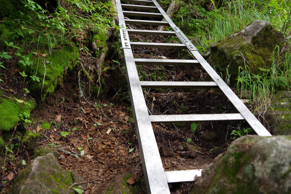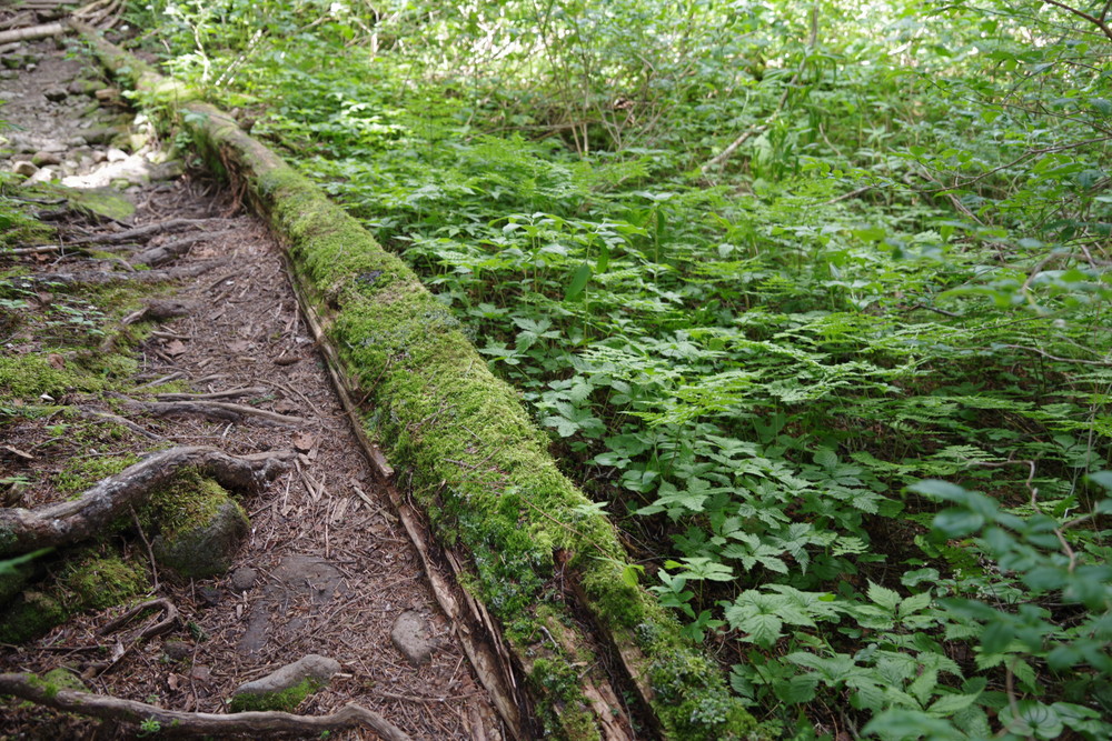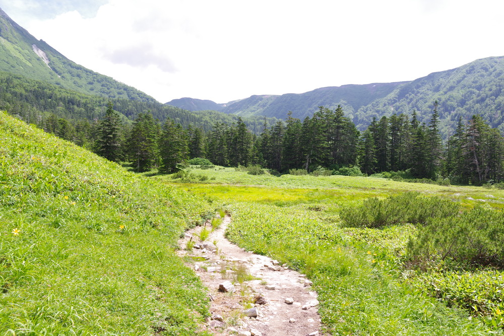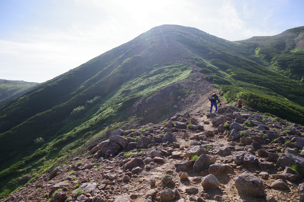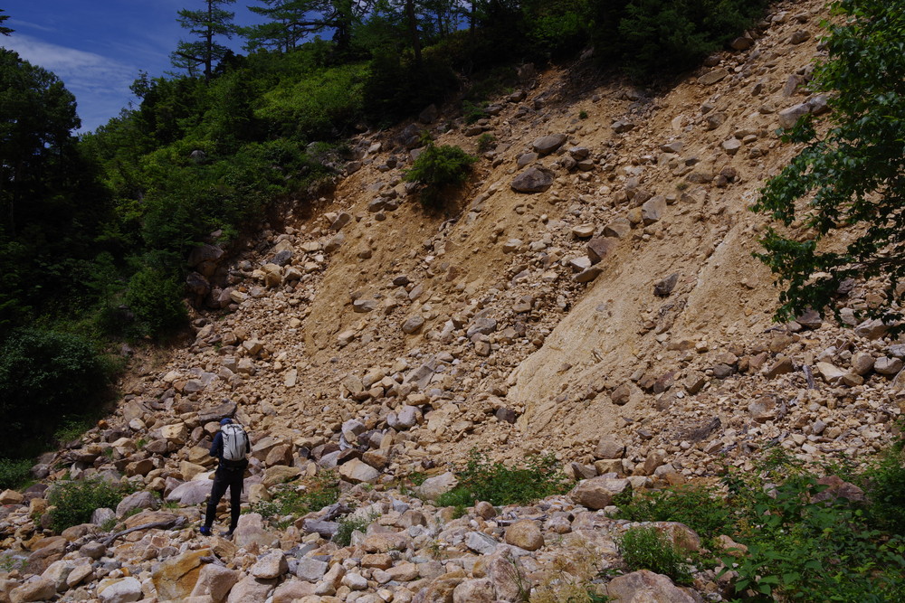 登山道を登り始めてすぐ重いザックに心が折られました。これは足腰よりも先に肩がやられそうだ・・・。