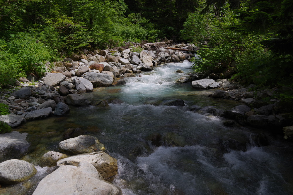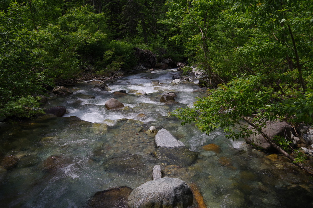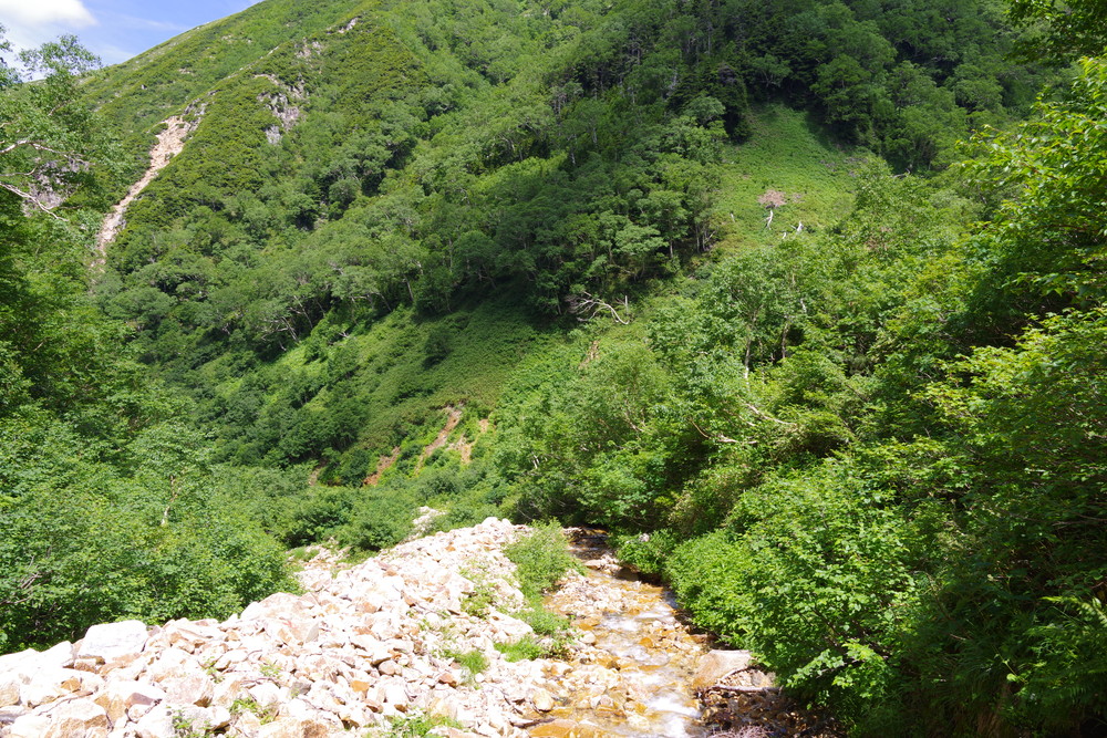 皆さん登山靴のまま何度も渡渉して大変だ・・みたいなことを言われるのですが計国隊長のナイスジャッジで最初に沢靴にしたので渡渉もへっちゃら。