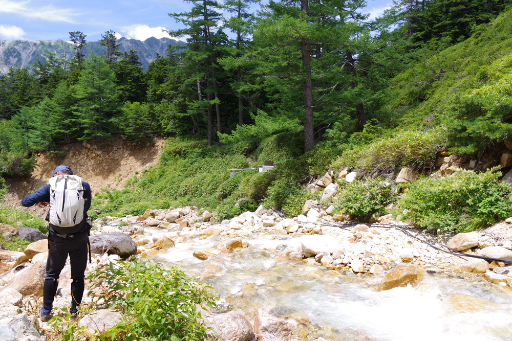 ぶらぶらペットボトルをぶら下げるスタイルはやめてキャメルバッグで水分を取ることにし薬師沢小屋までの岩々の激下りに備えました。