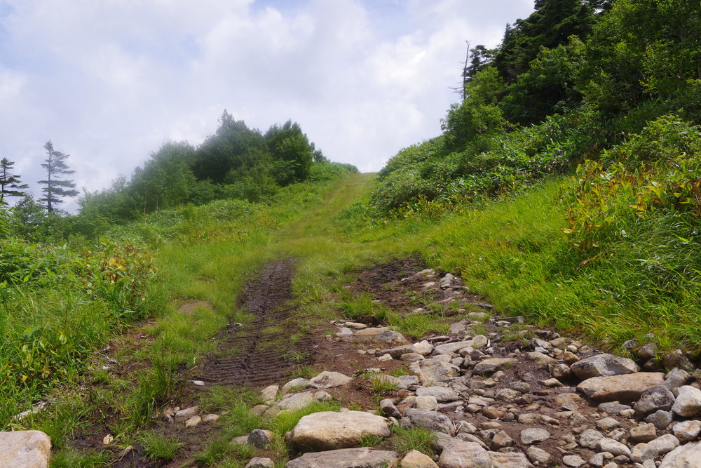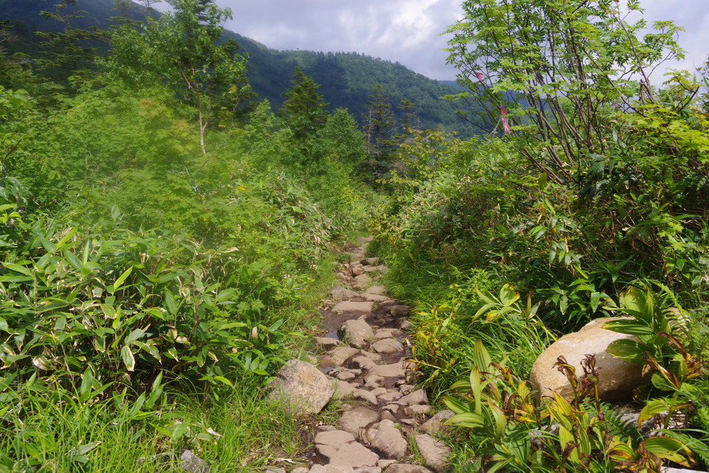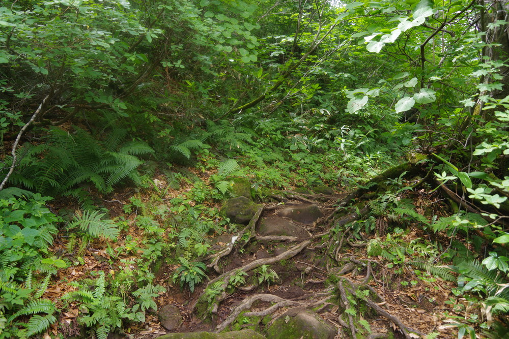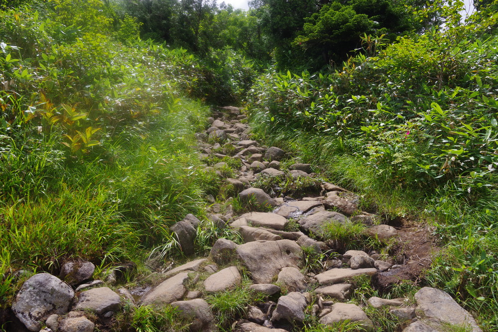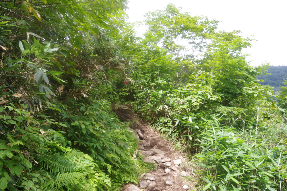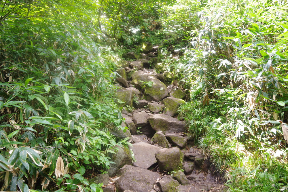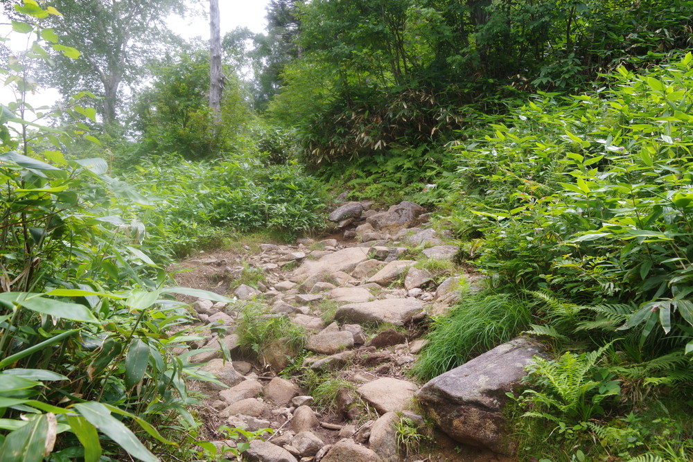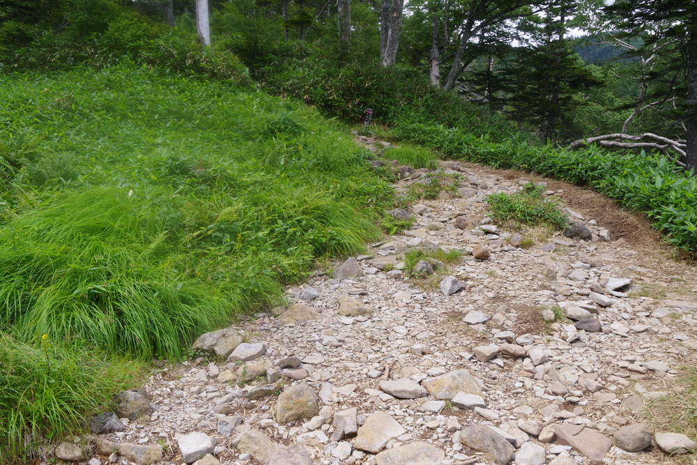ゲレンデを横切り本格登山道となるが岩々の道が続きなかなかしんどい。
