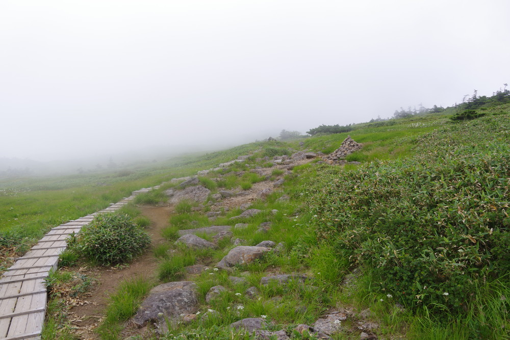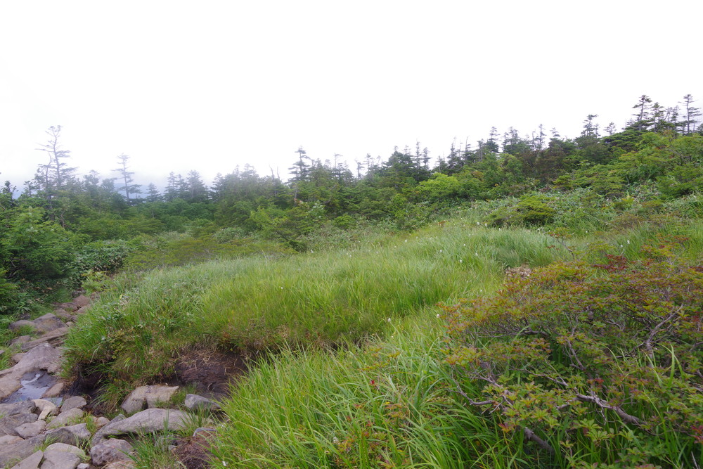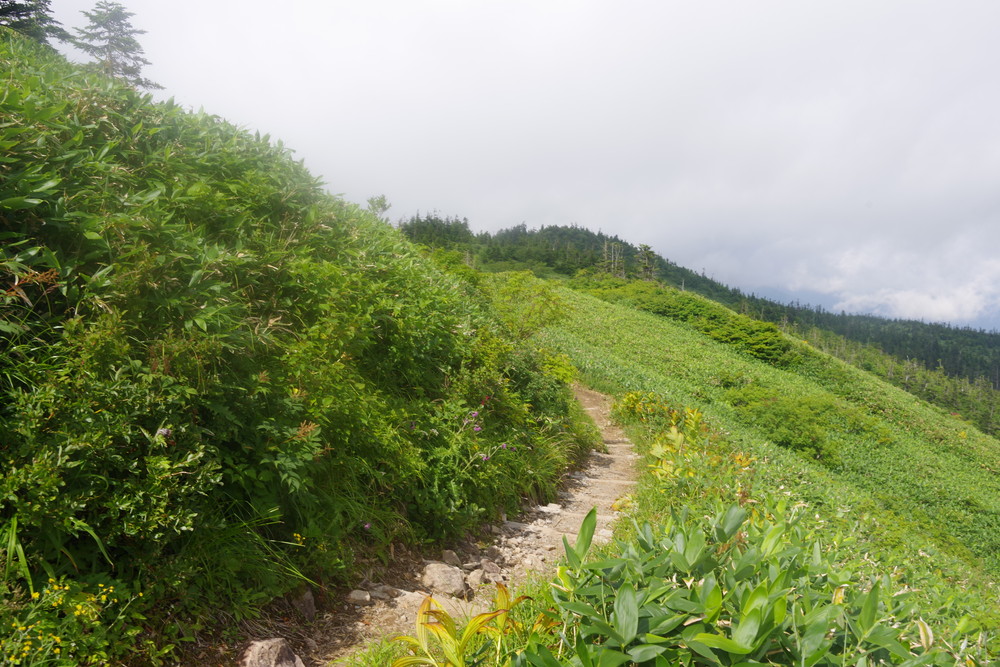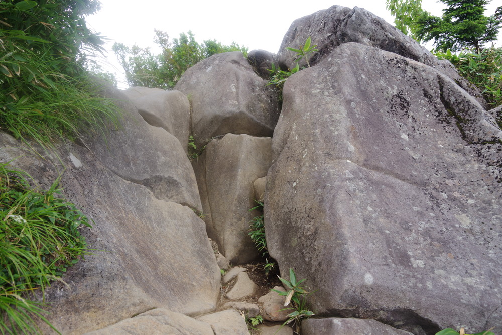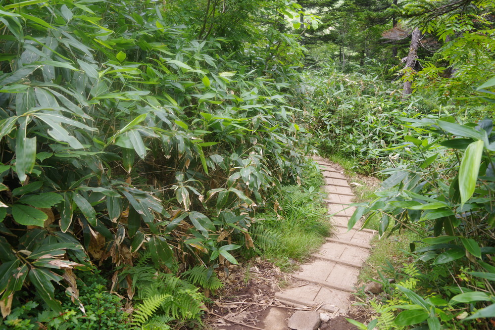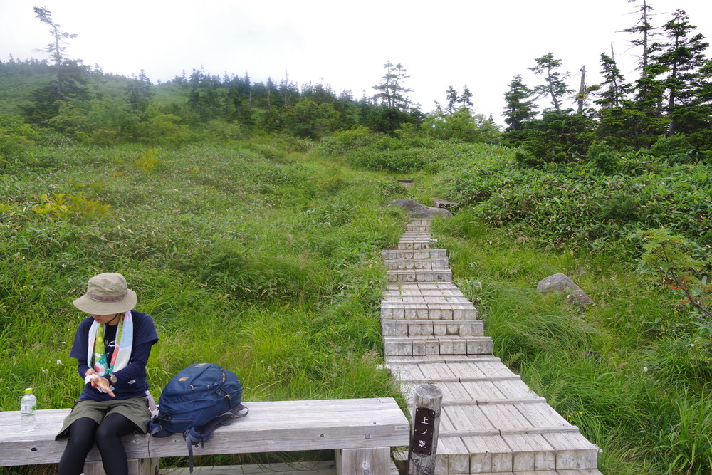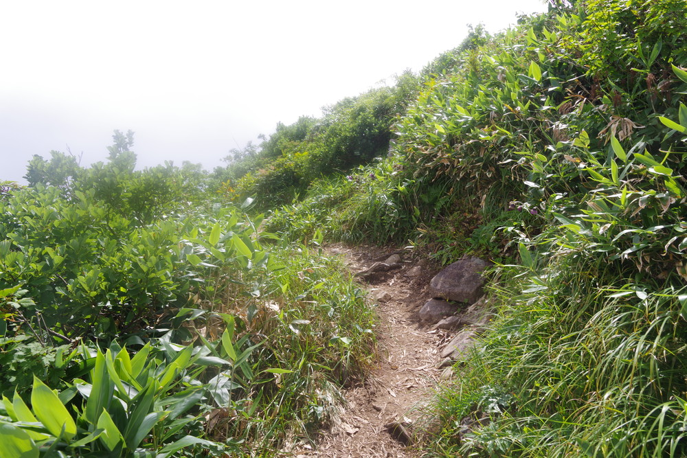 ゲレンデを横切り本格登山道となるが岩々の道が続きなかなかしんどい。