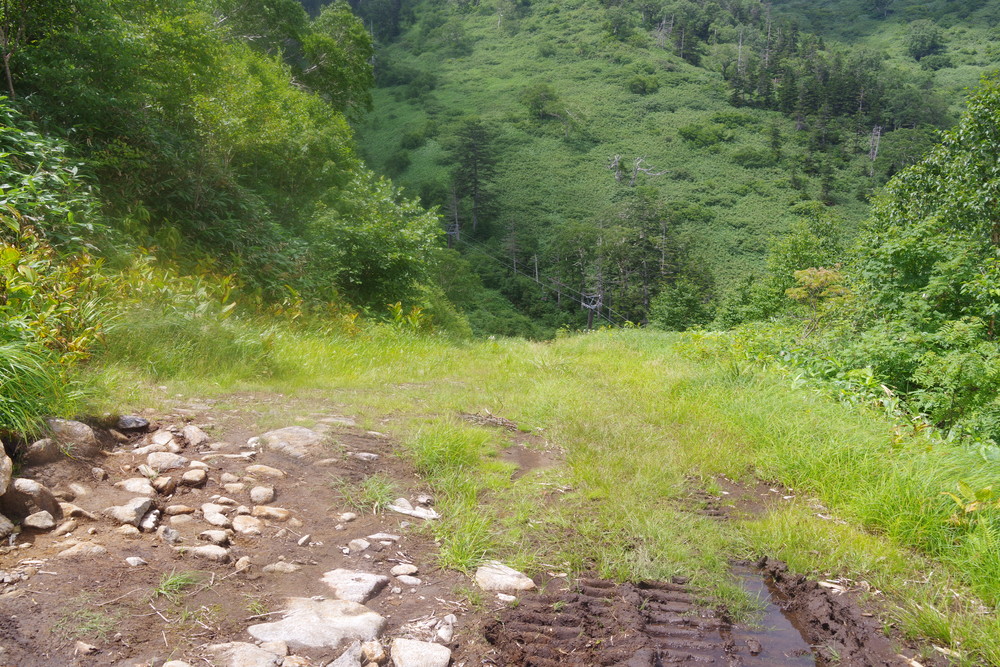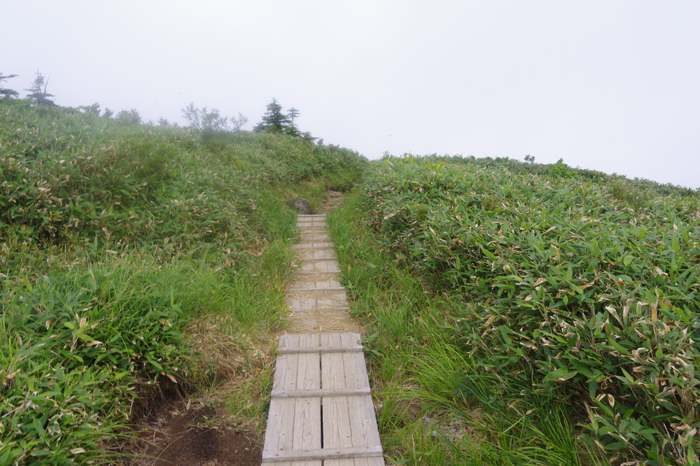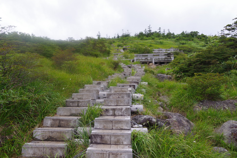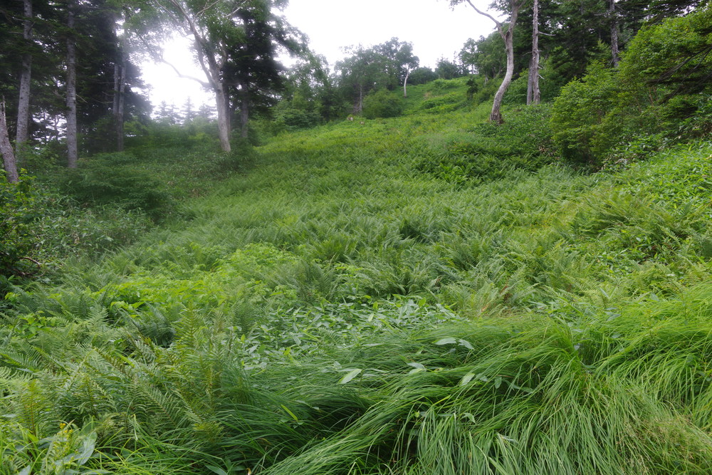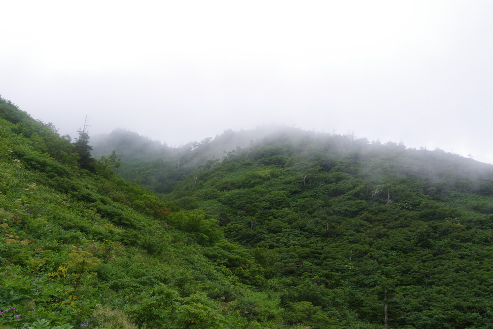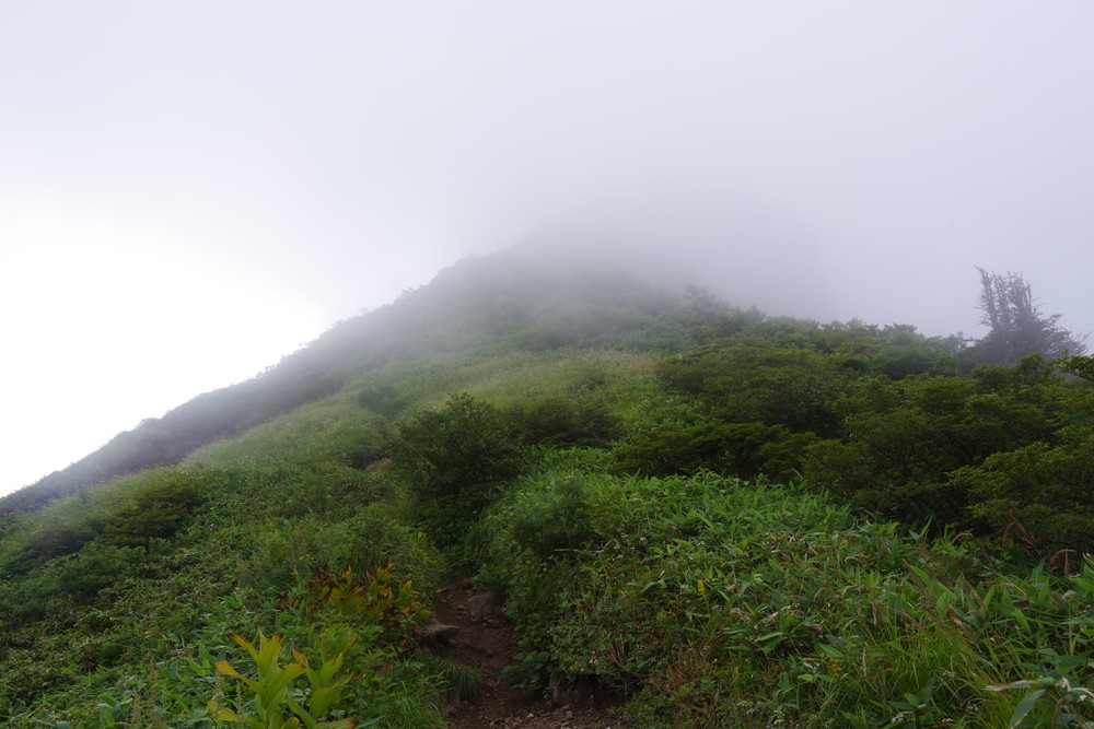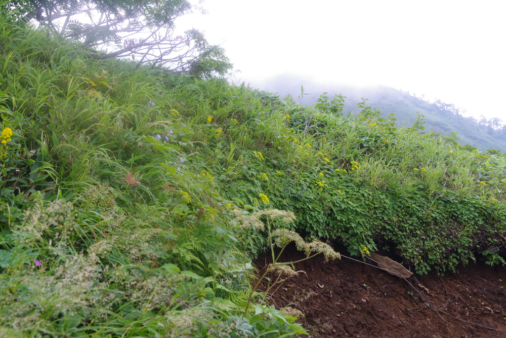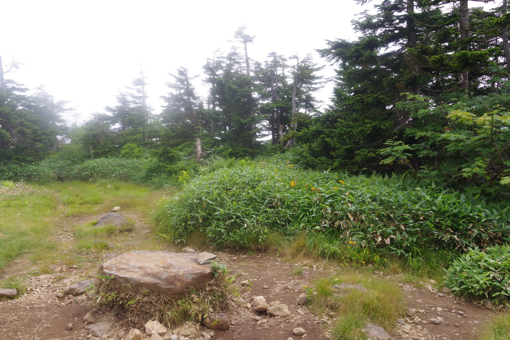 ゲレンデを横切り本格登山道となるが岩々の道が続きなかなかしんどい。