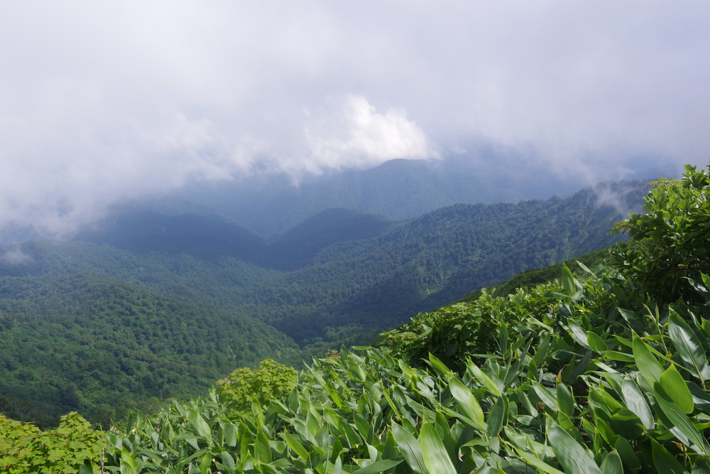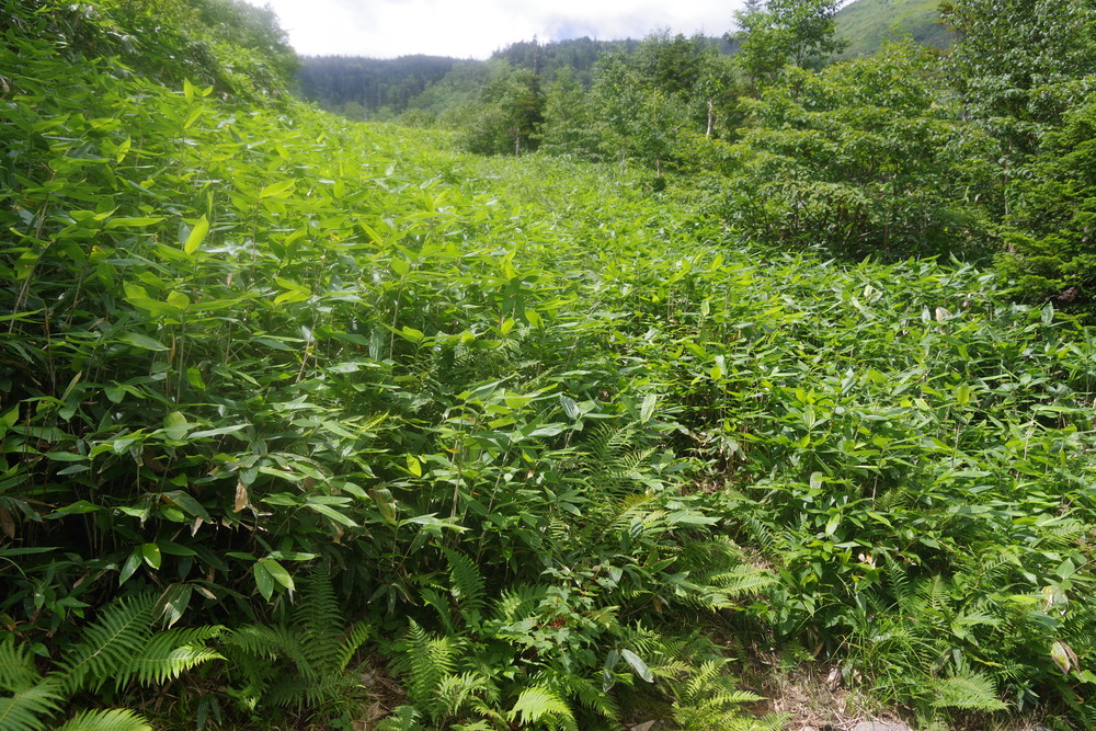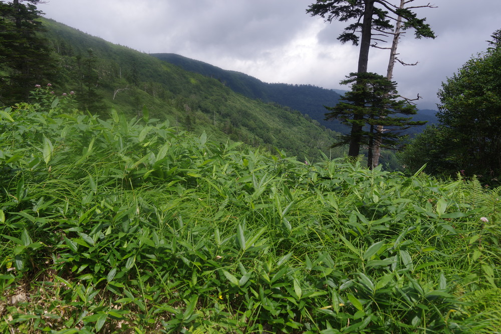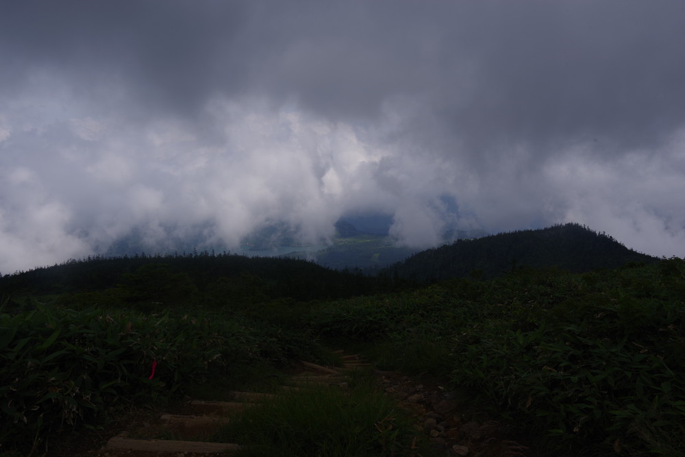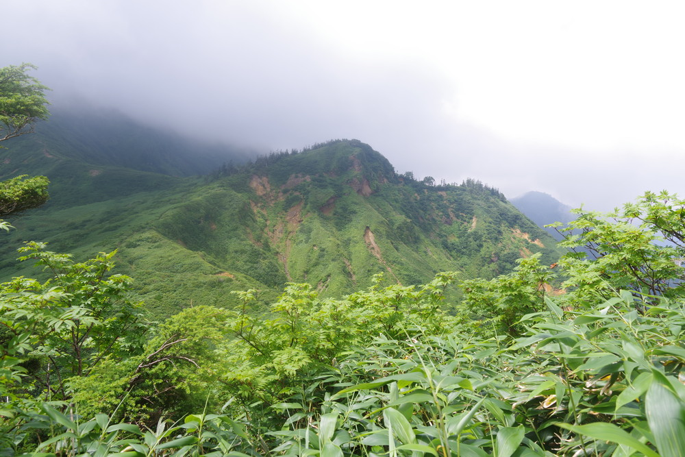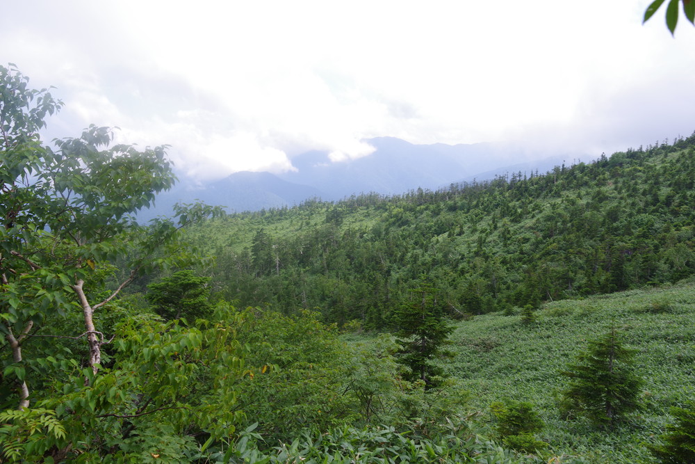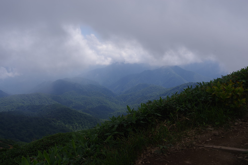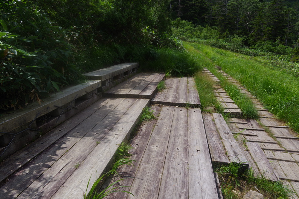 ゲレンデを横切り本格登山道となるが岩々の道が続きなかなかしんどい。