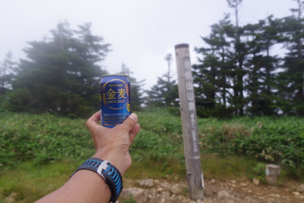 山頂までは駐車地から3時間2分で到着。金麦飲んでランチして下山です。