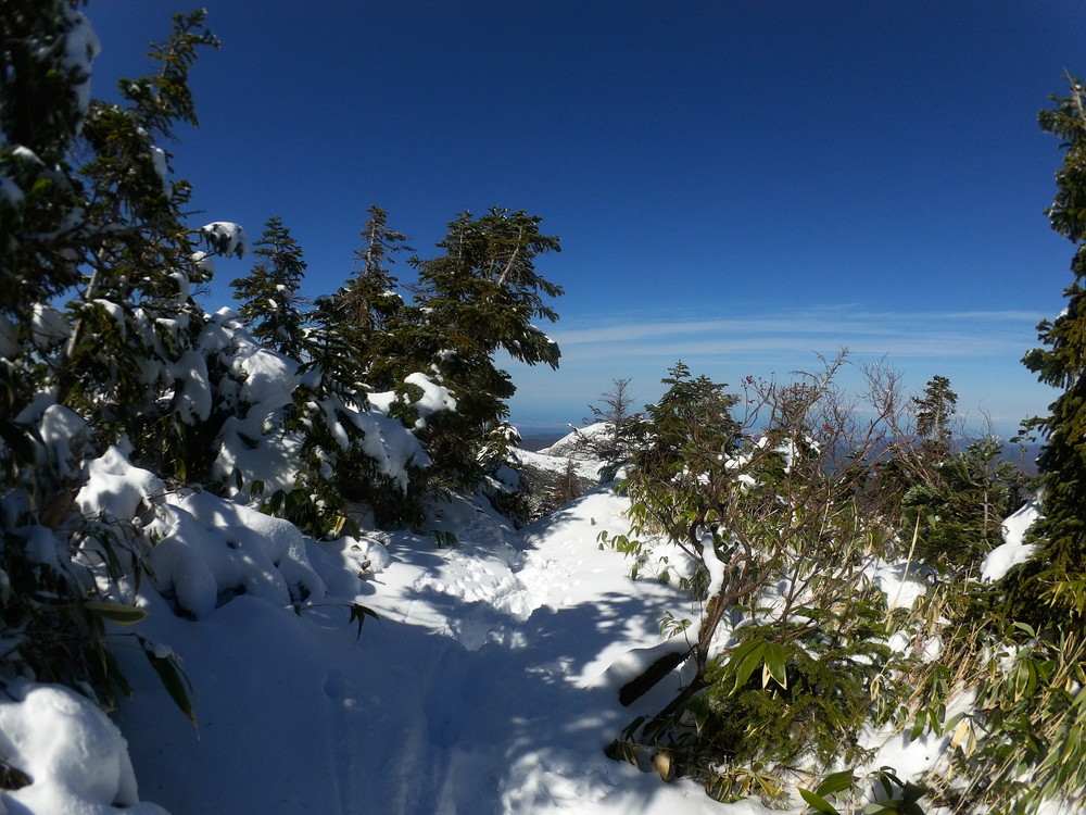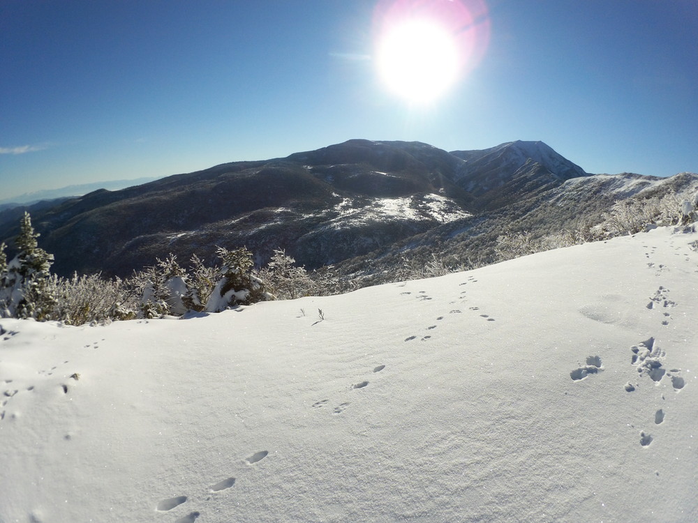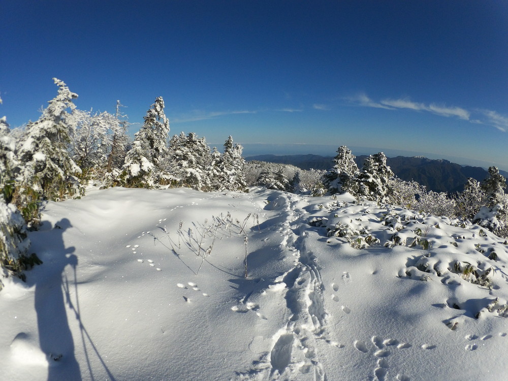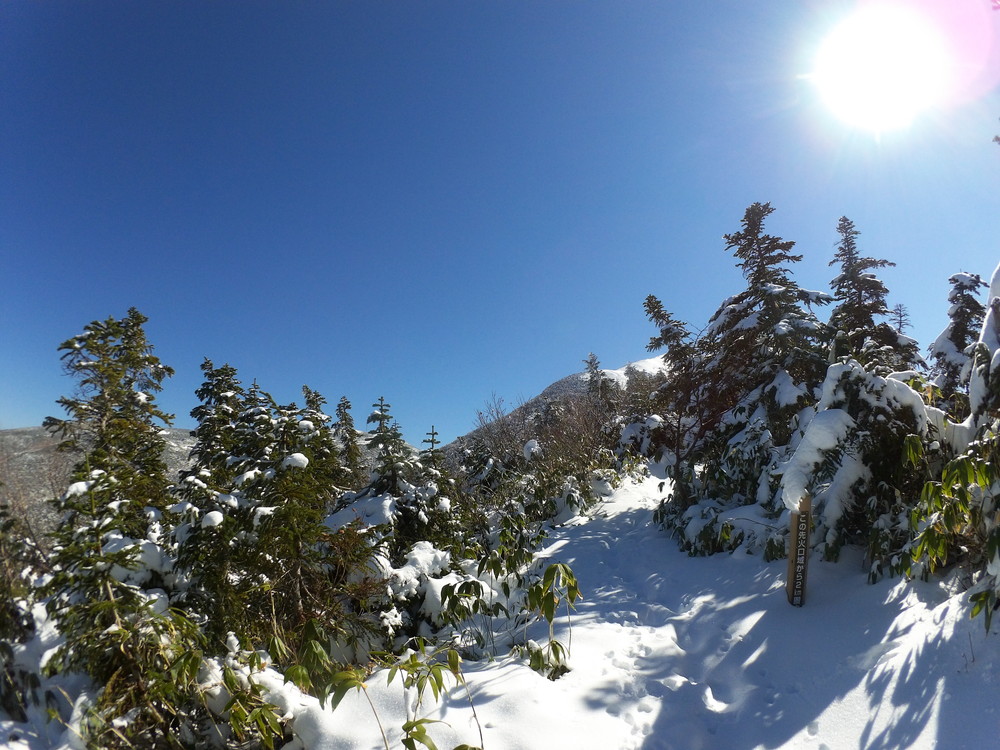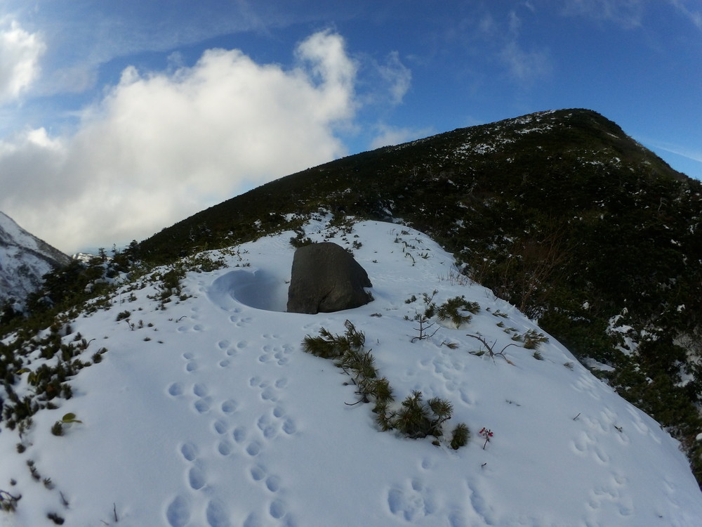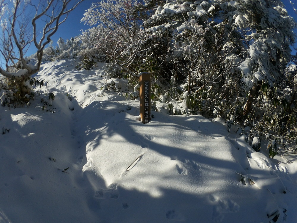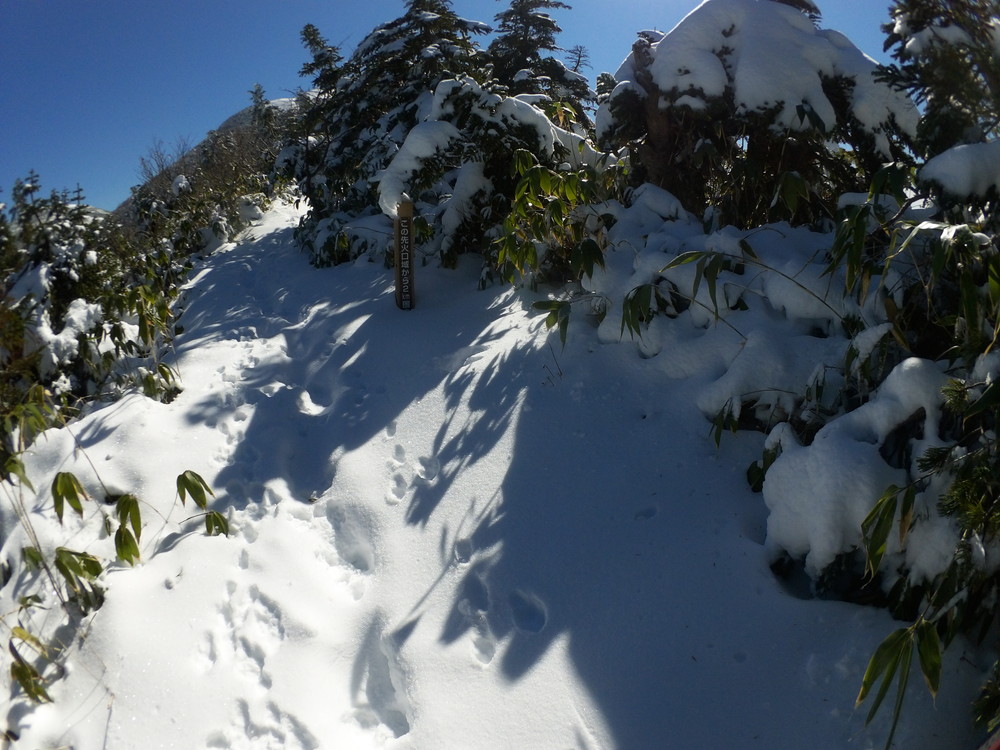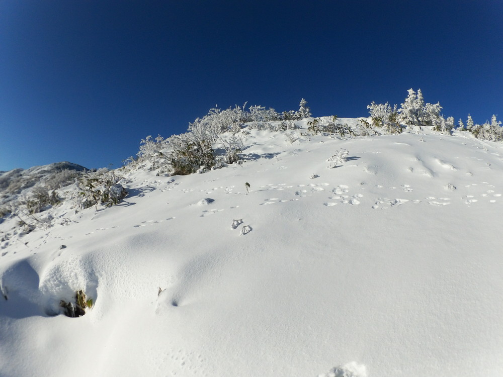 数日前の踏み跡のうえに新雪が積もりふかふか。