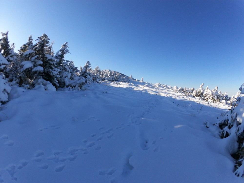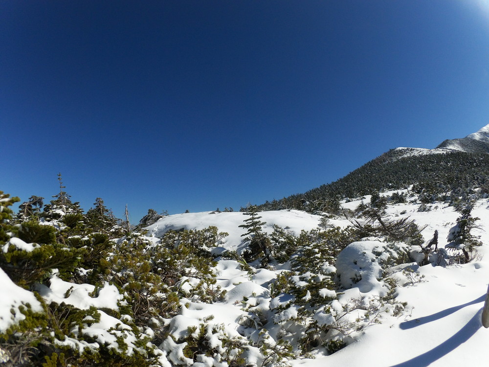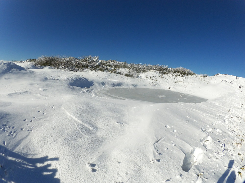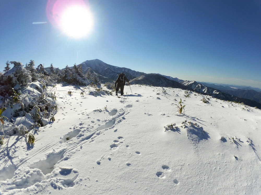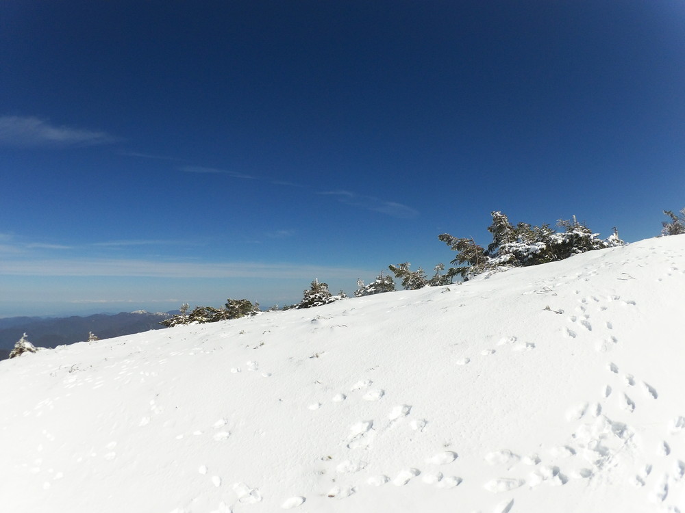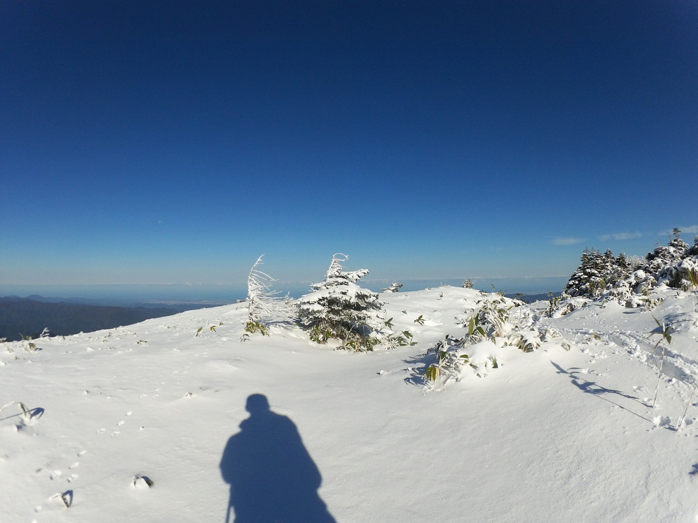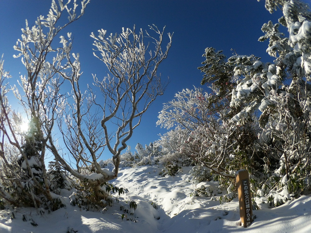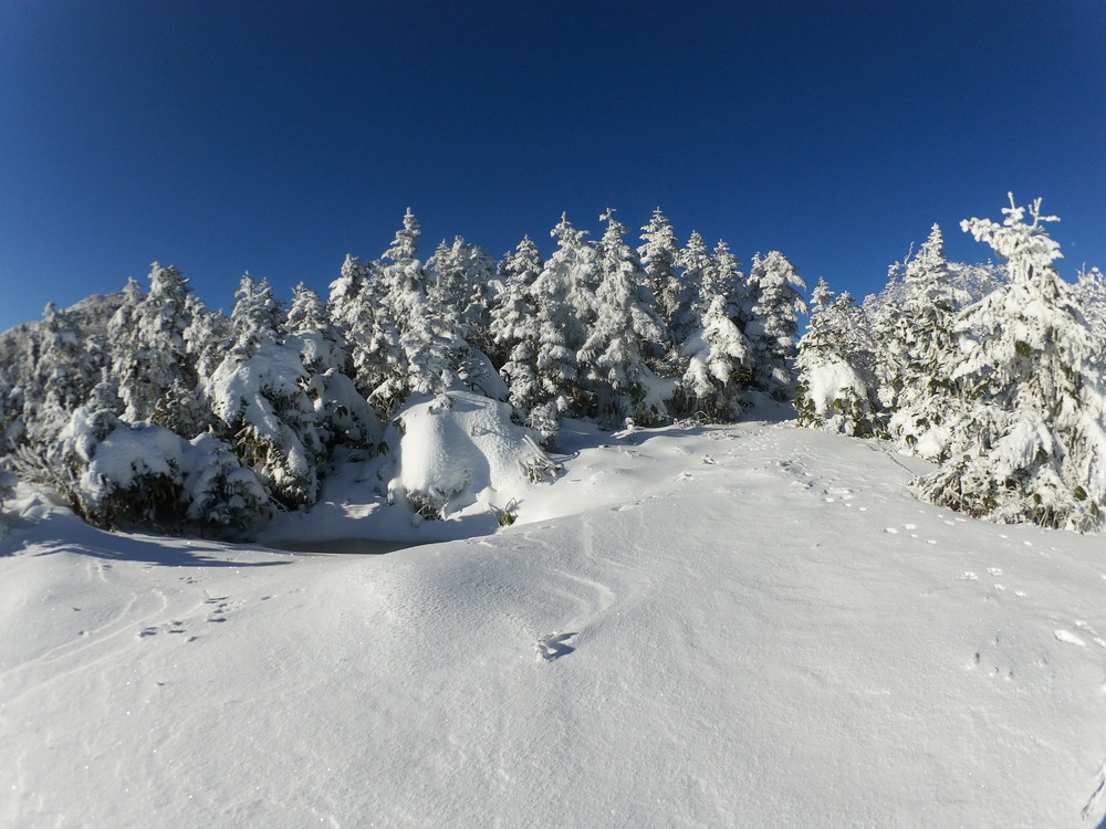 数日前の踏み跡のうえに新雪が積もりふかふか。