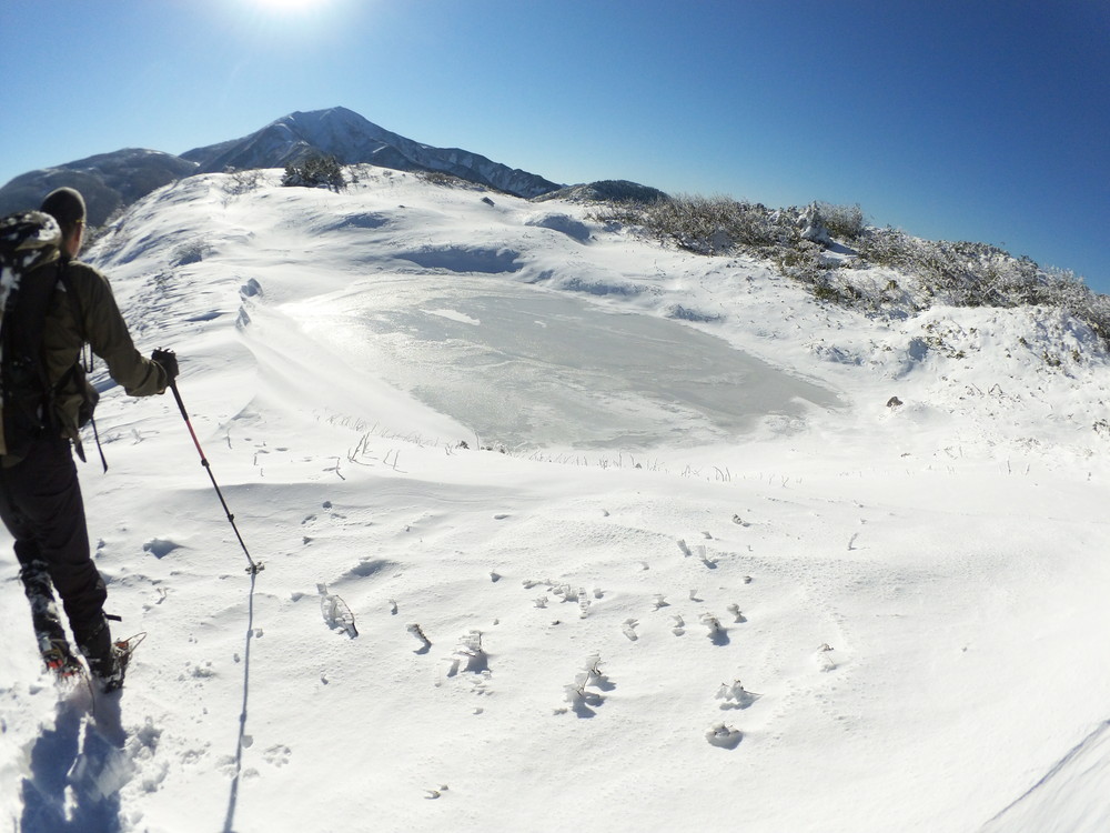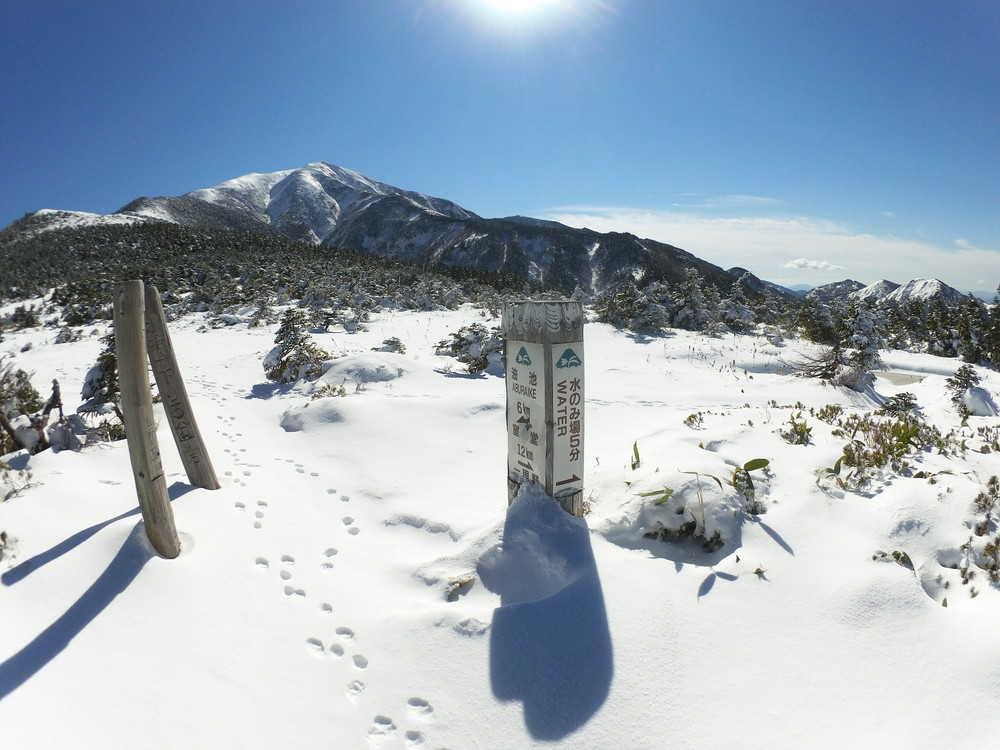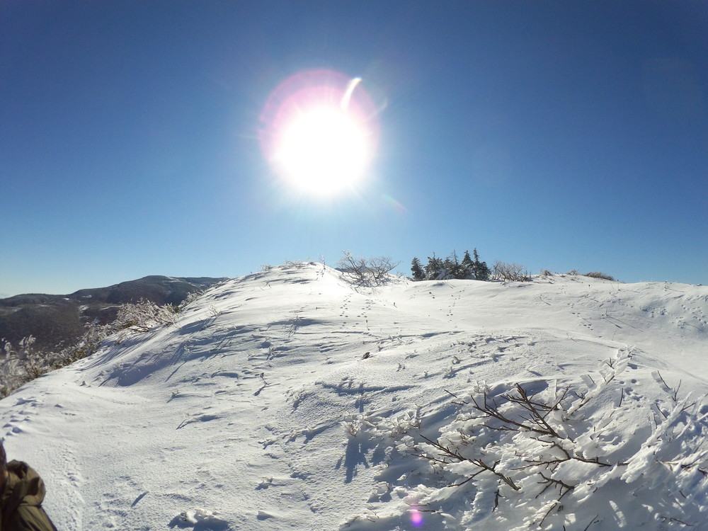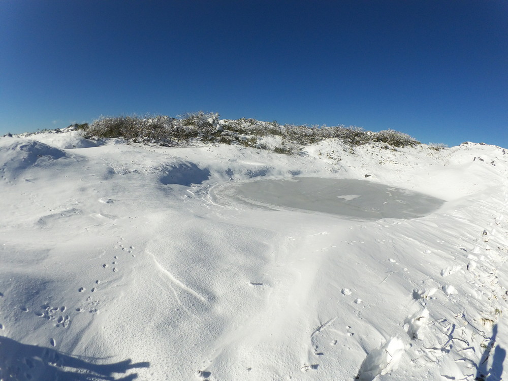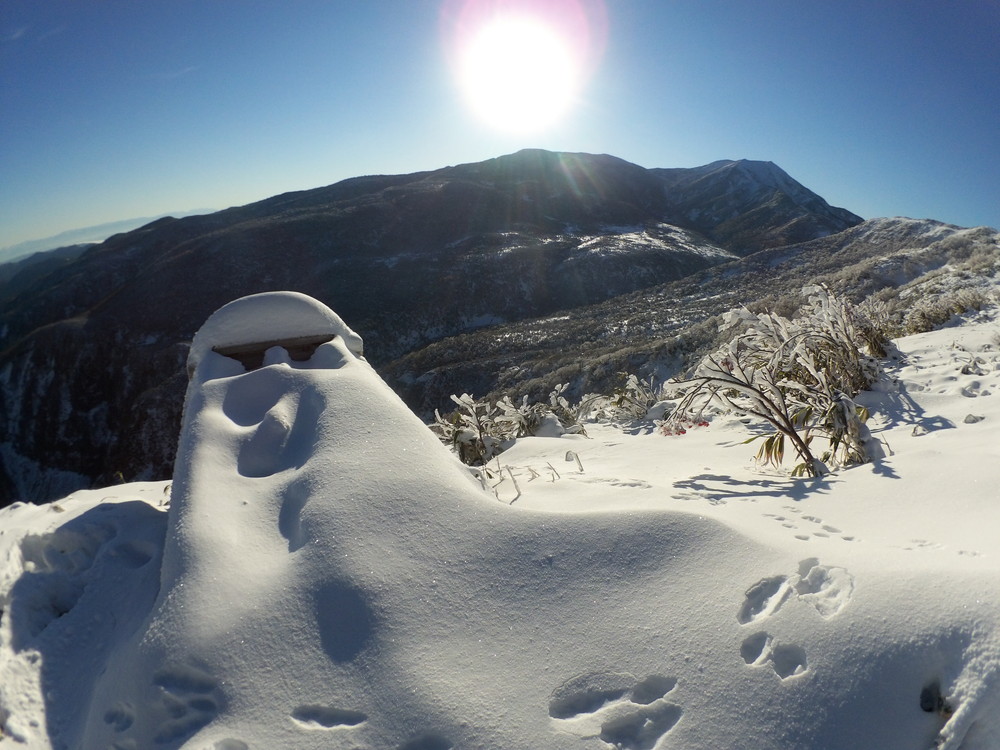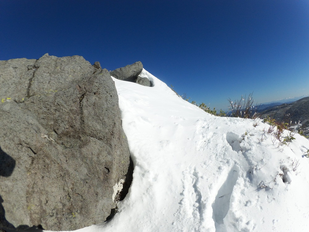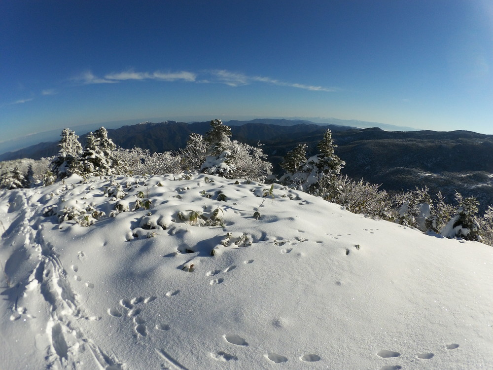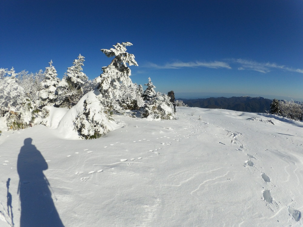 数日前の踏み跡のうえに新雪が積もりふかふか。