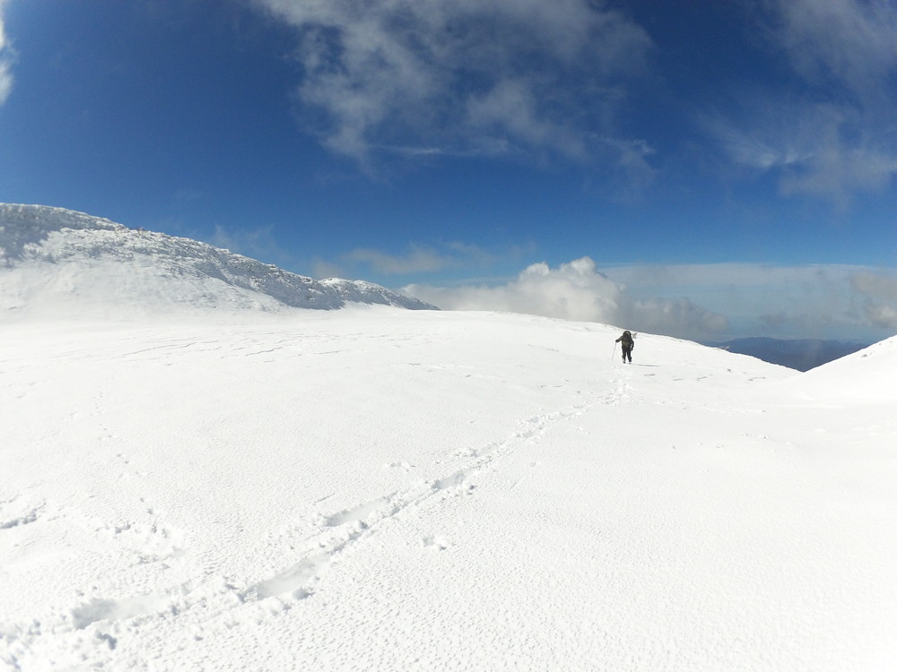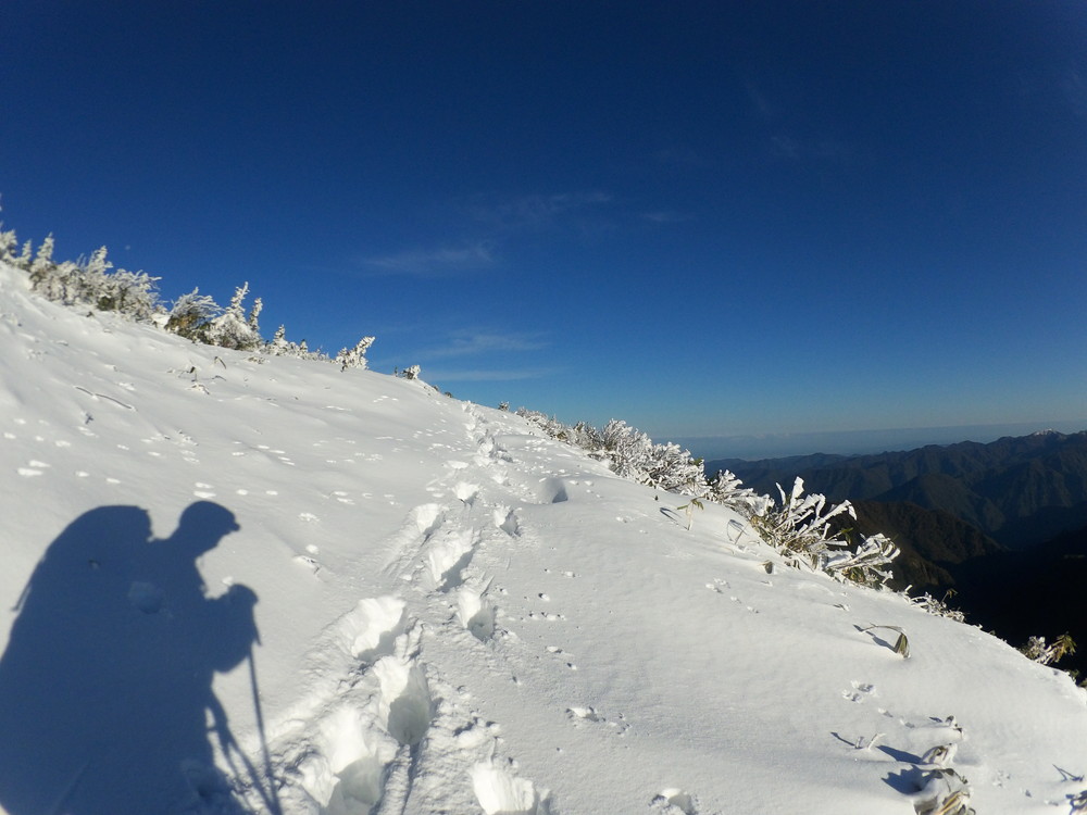 アイゼンをはいた足がふくらはぎまで毎回沈みます。