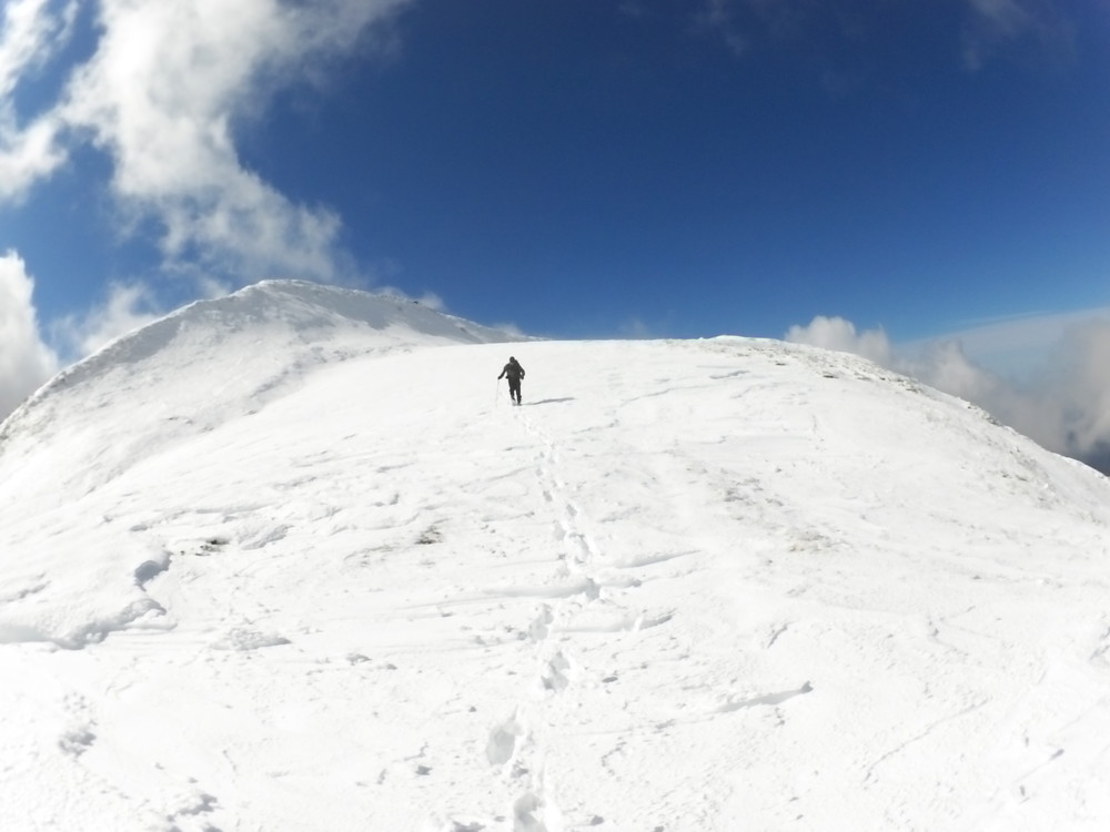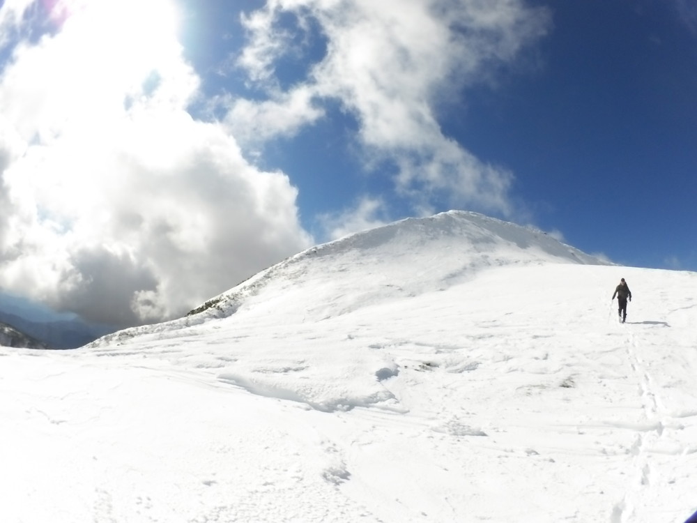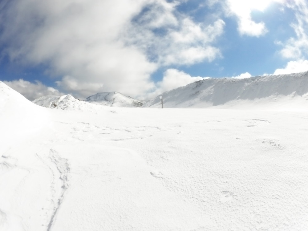 ストックも夏用のストックでスノーバスケットを付けていないのでズボズボ刺さって大変です。