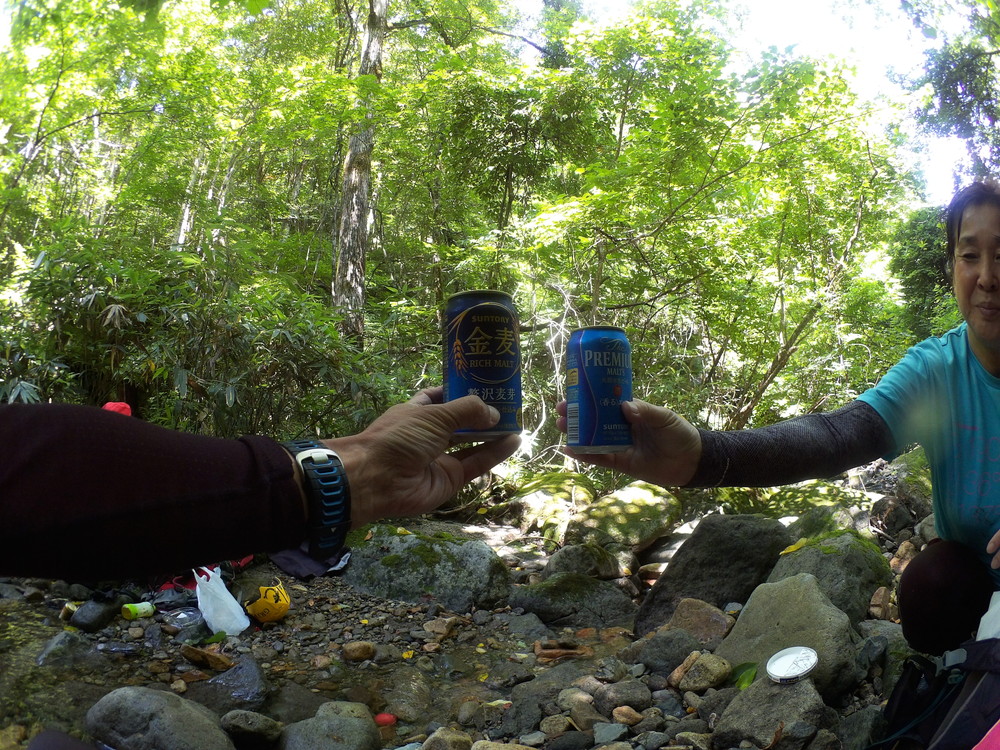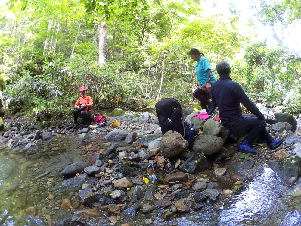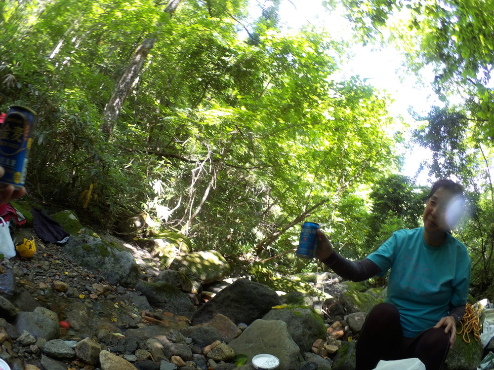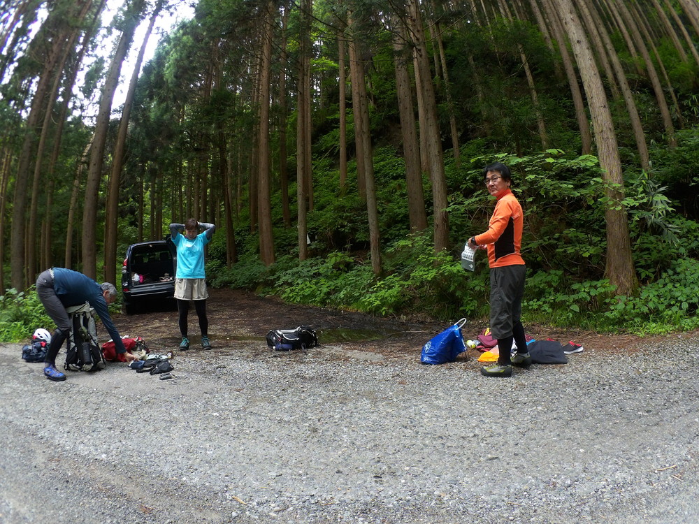 Goal地点で沢から上がり、恒例の車取りに行く人決めのじゃんけん。