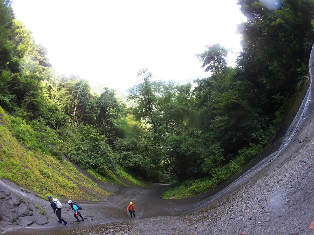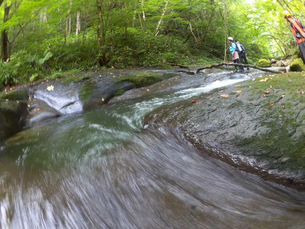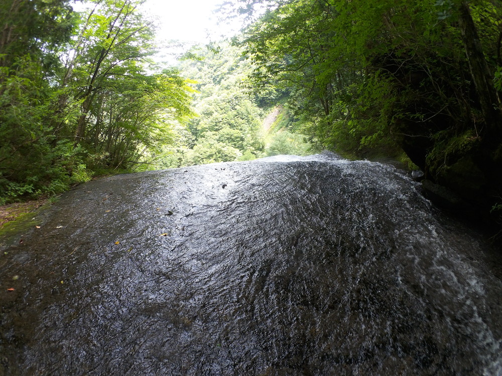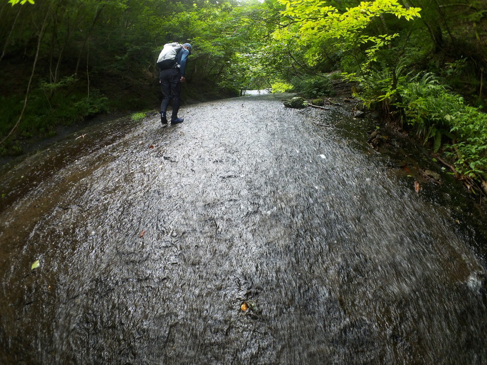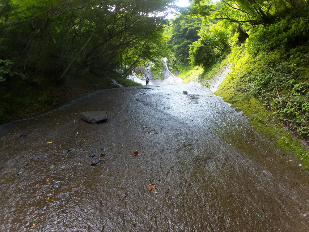 素晴らしい滑を足裏で感じつつ進む。 蜘蛛の巣がちょっとうるさいけど、それ以外はすべて素晴らしい。