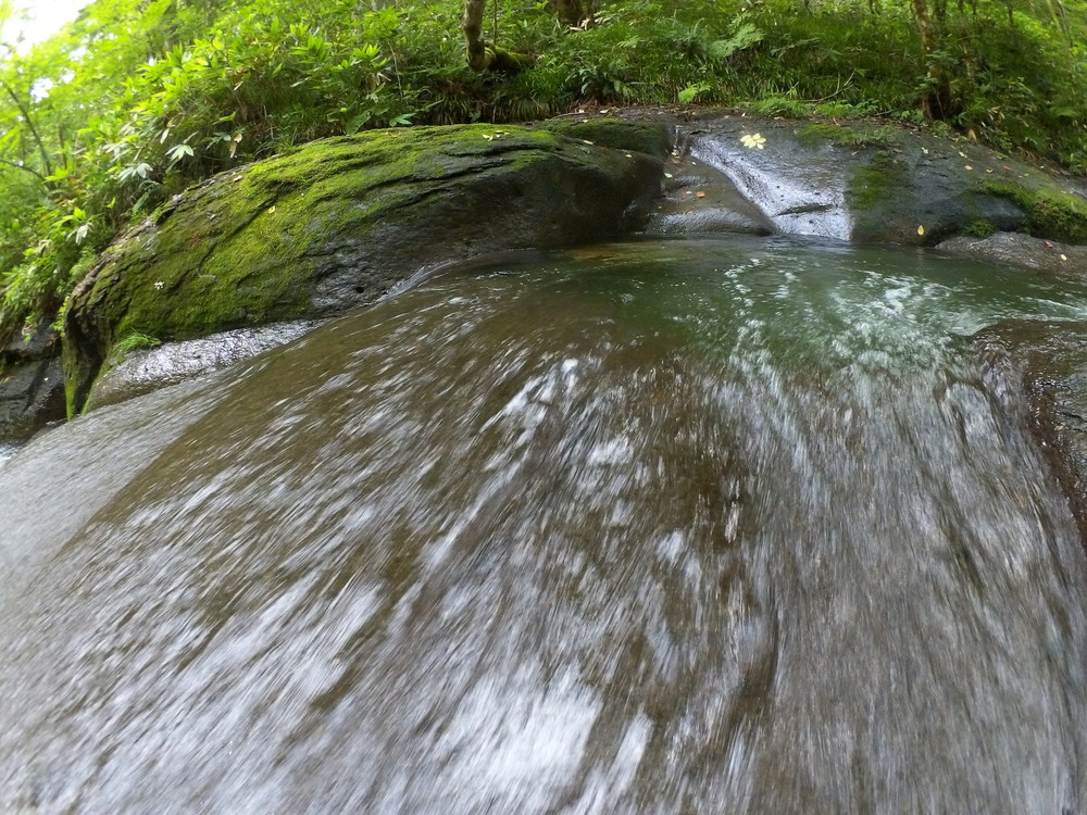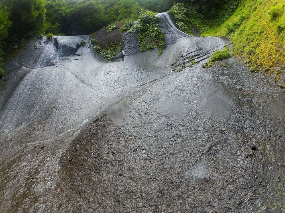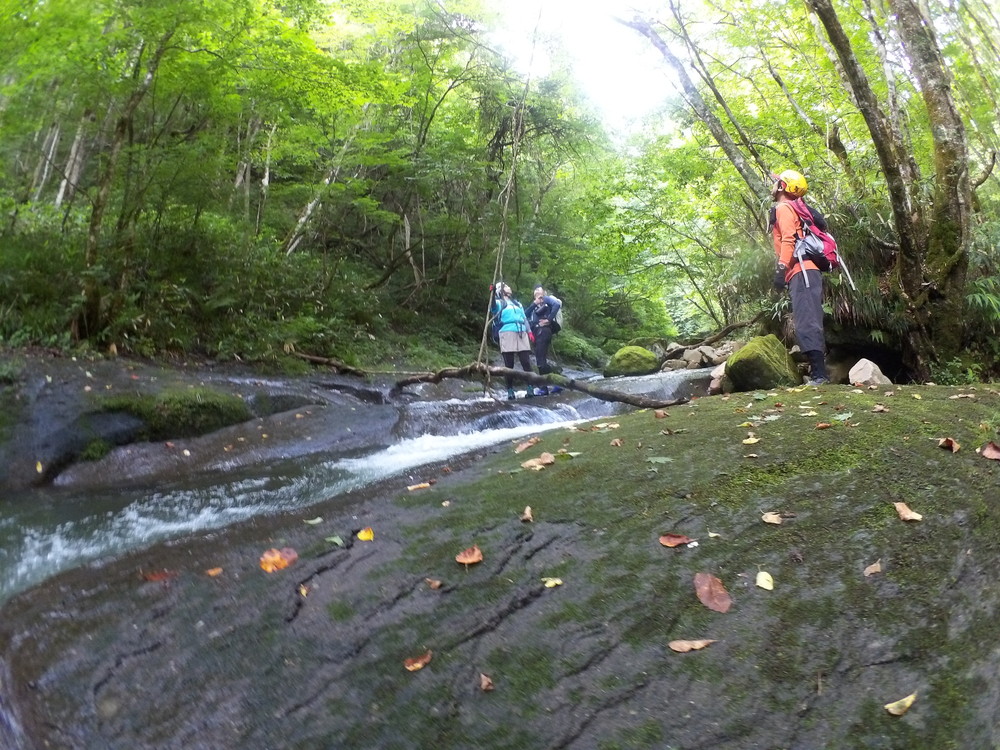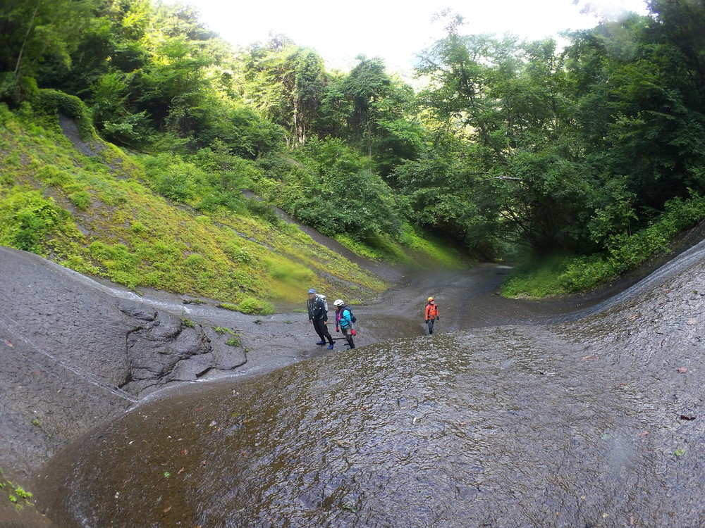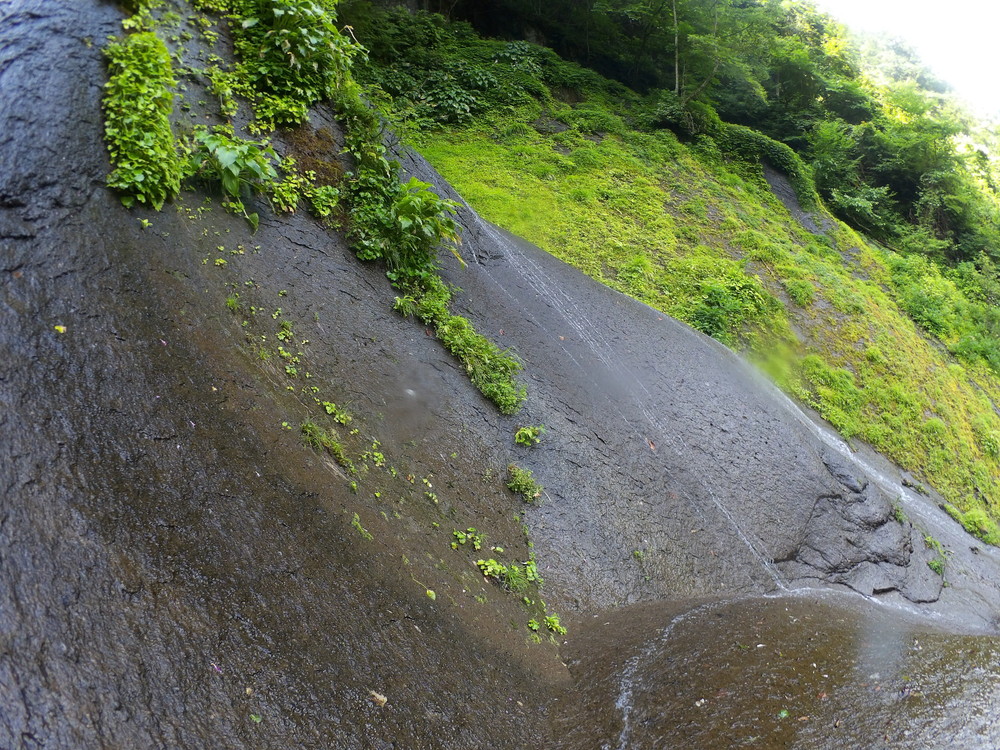 素晴らしい滑を足裏で感じつつ進む。 蜘蛛の巣がちょっとうるさいけど、それ以外はすべて素晴らしい。