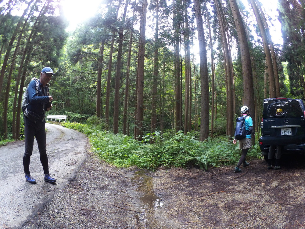 下りの林道をフェルト底の沢靴で3.95km走って取りに行きました。