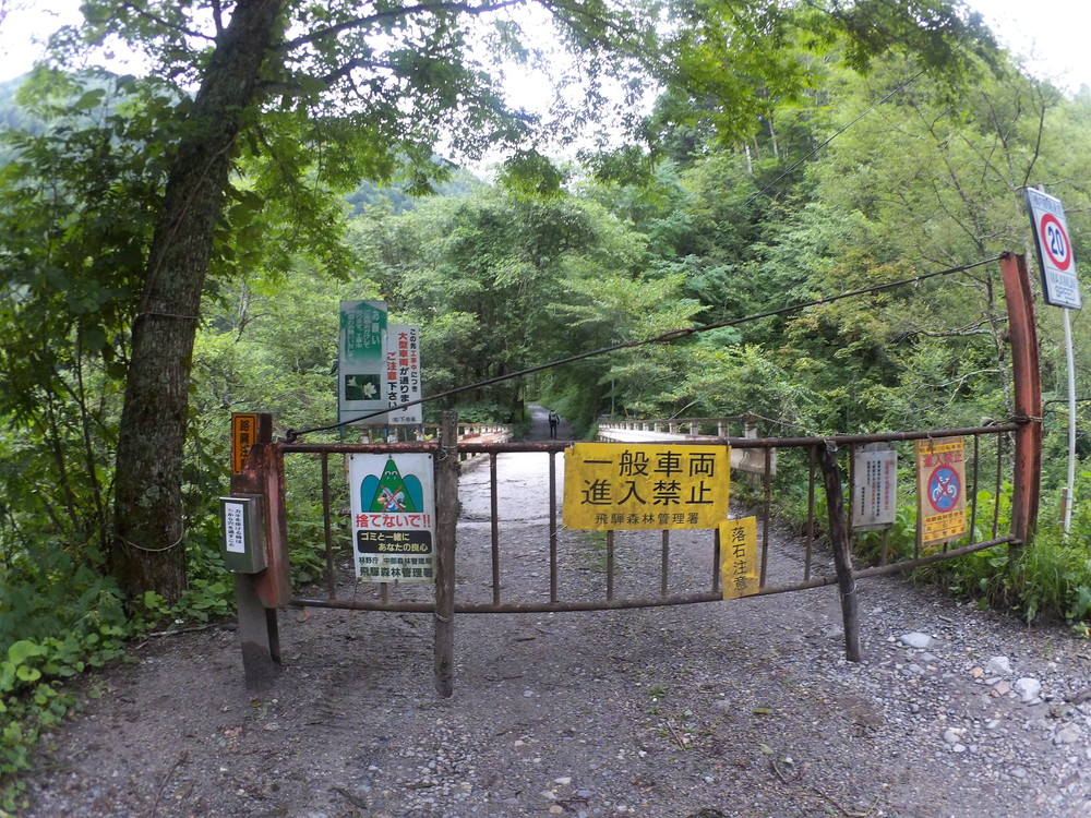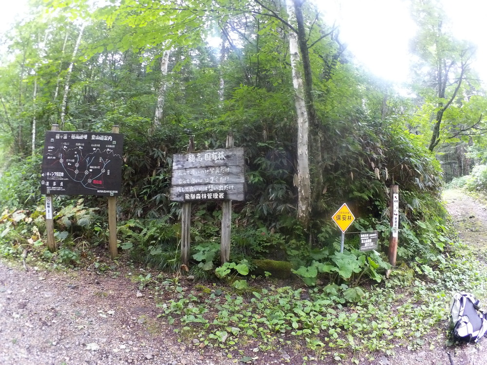 ロープウェイの駐車場を過ぎて右俣林道の入り口に看板が。
