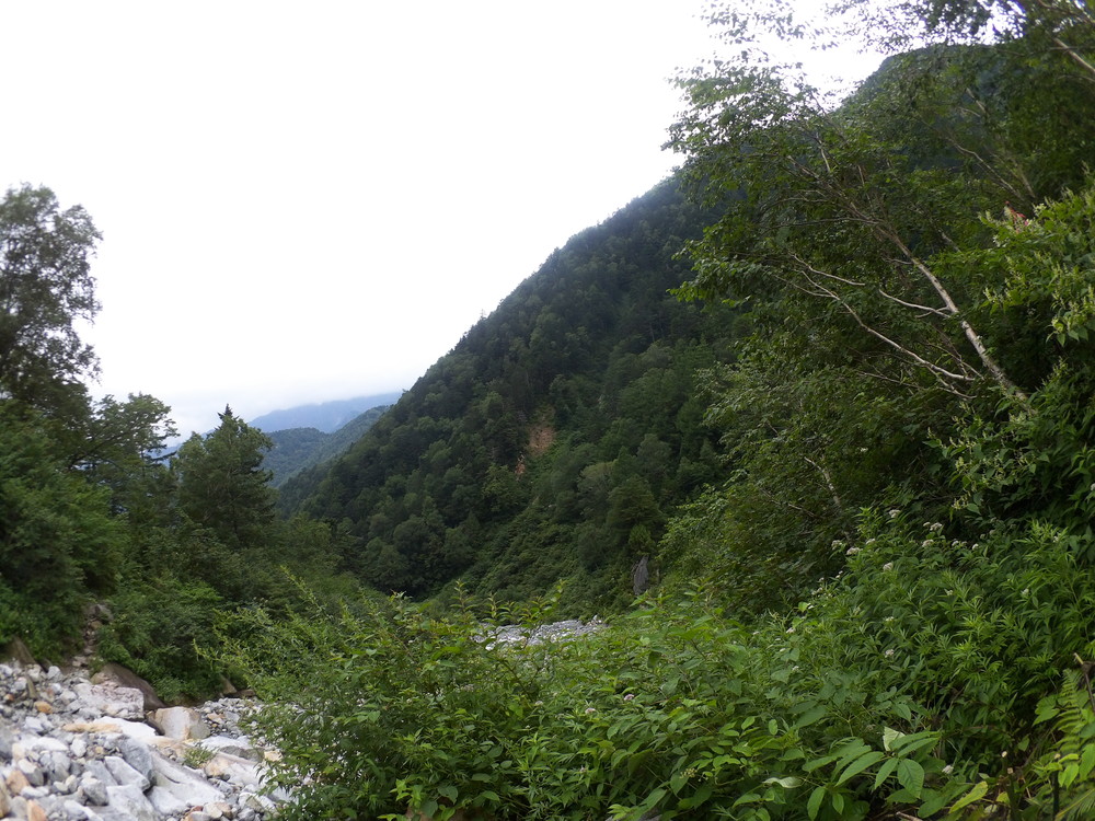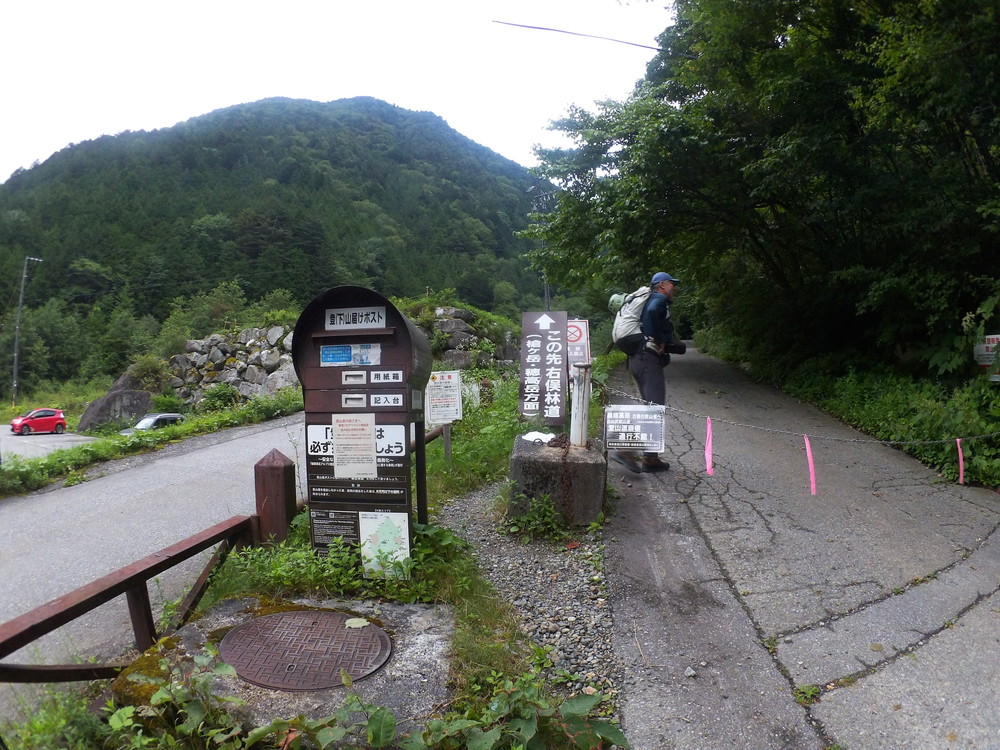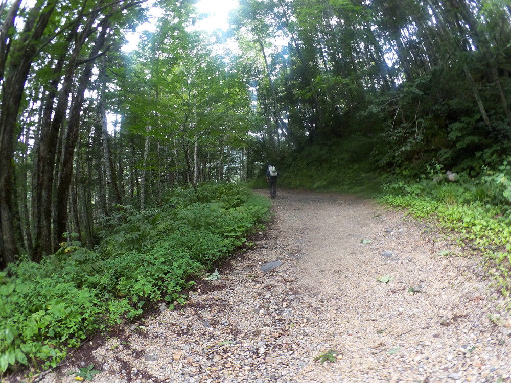 途中の穂高平小屋で聞いてみたらかなり苦労して降りてきた人はいた ということらしい。でも、まあ白出沢登山口まで行ってみましょう。