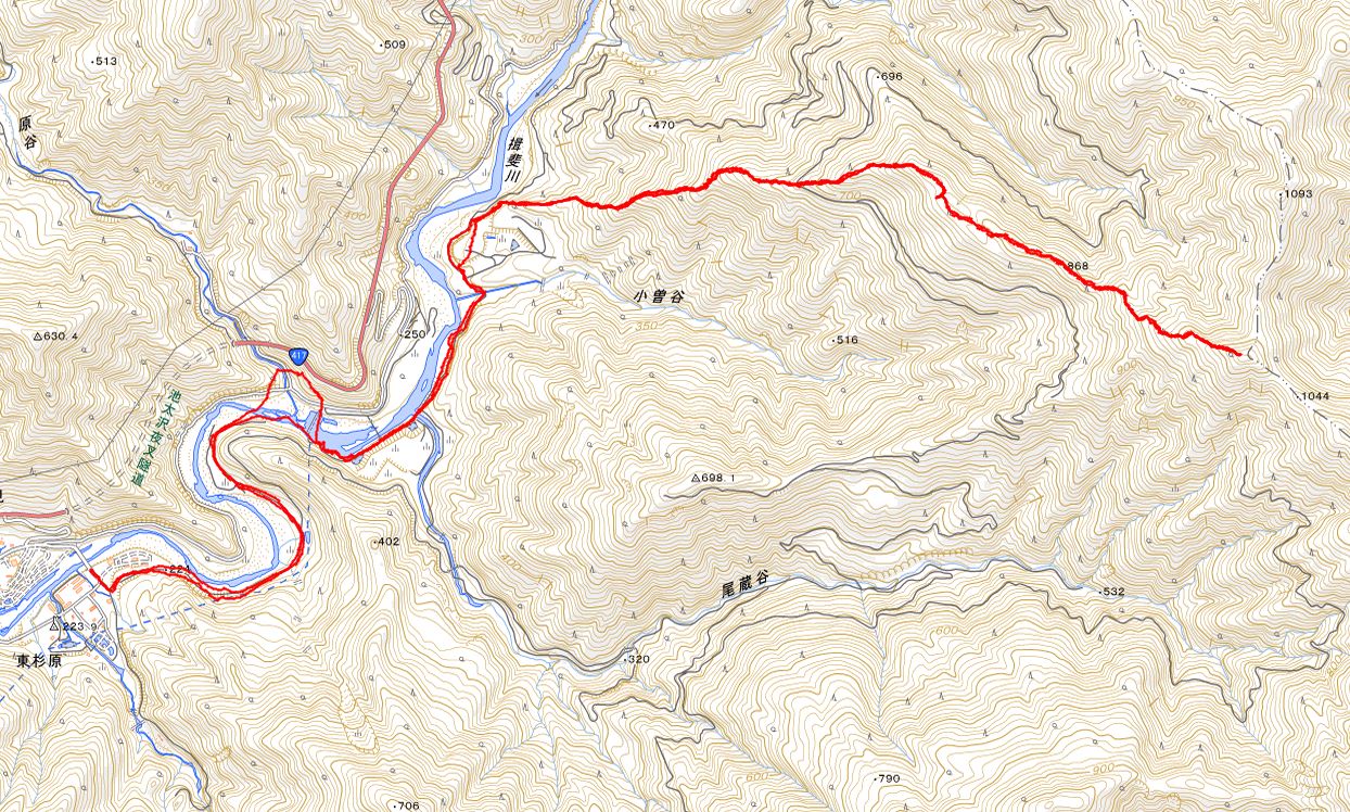 林道の1時間歩きを含めれば約5時間かかって1,080m地点につきました。