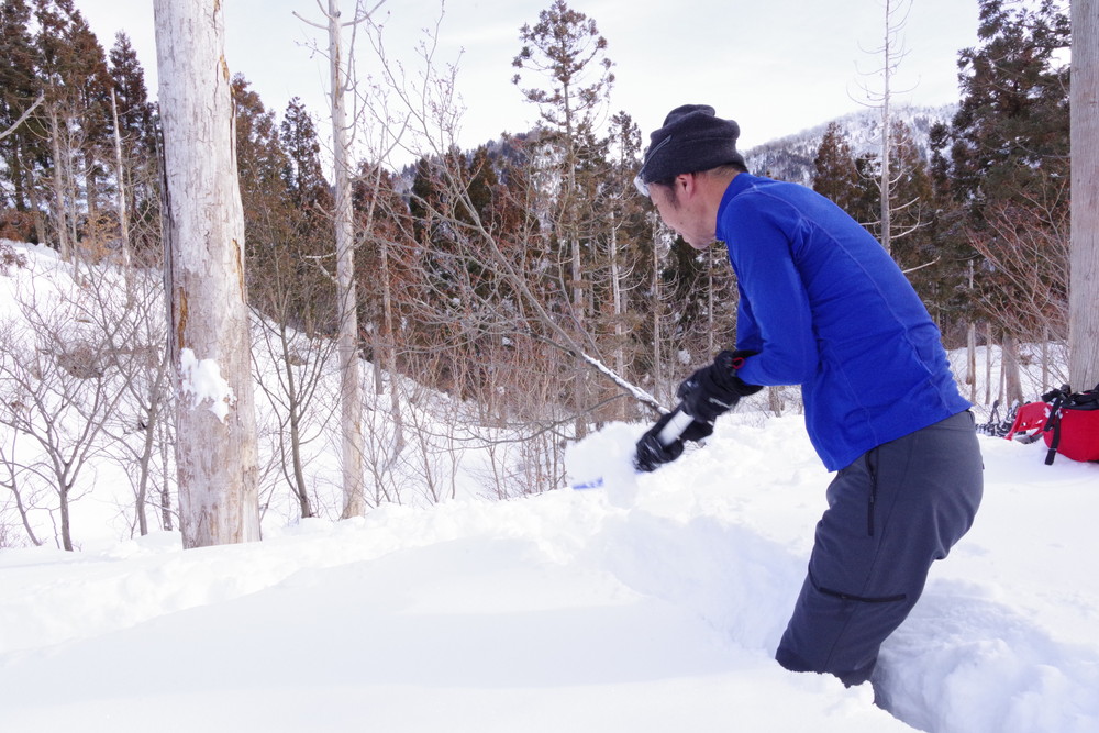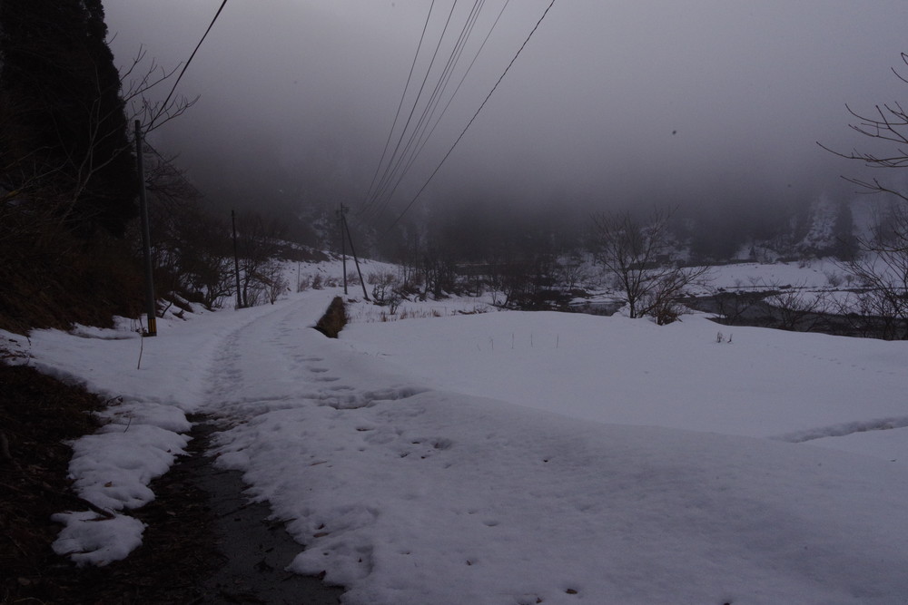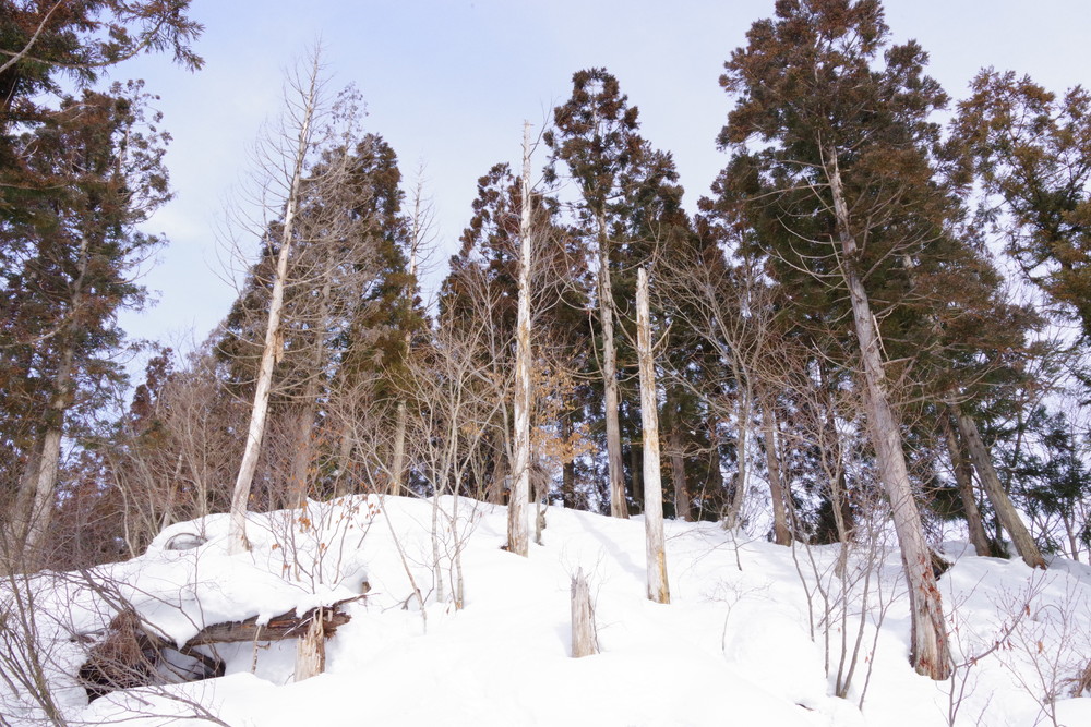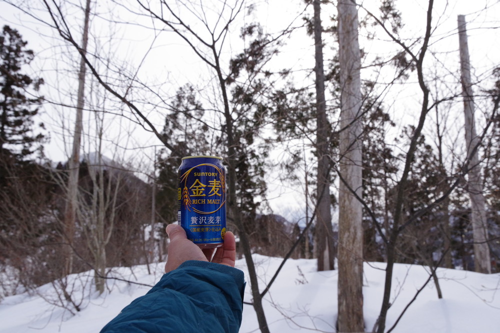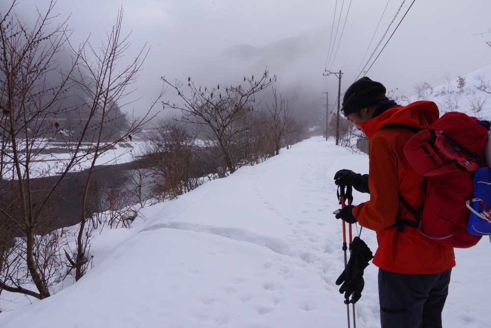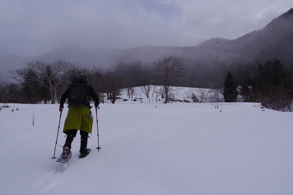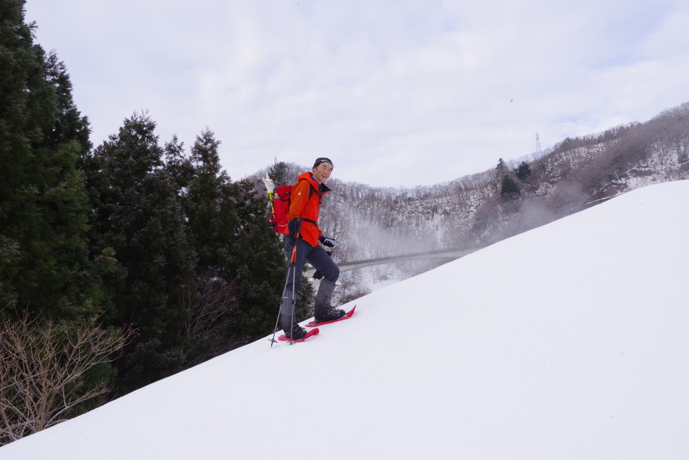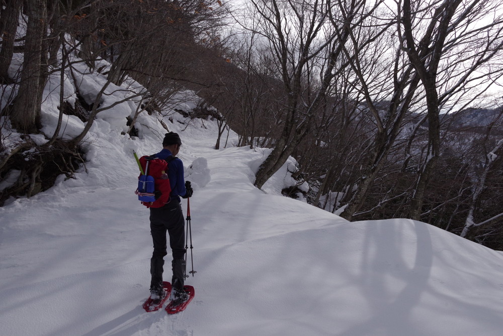 すぐに装着するだろうということでスノーシューは手に提げて歩いていましたが