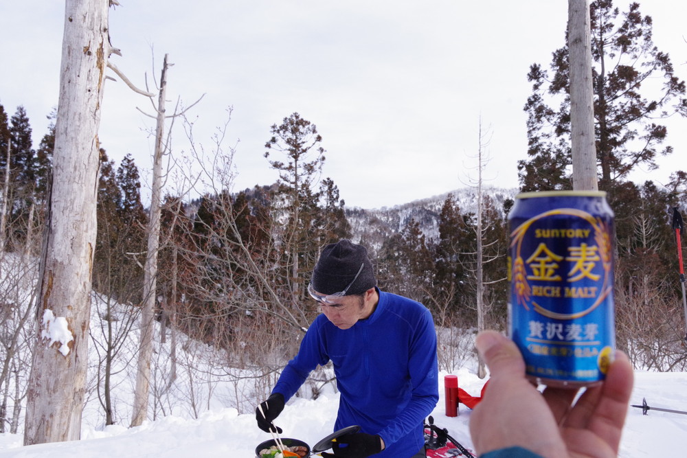 雪質があまりよろしくなく、雪の量も十分ではなかったので踏み抜きが多くちょっとストレスですね。