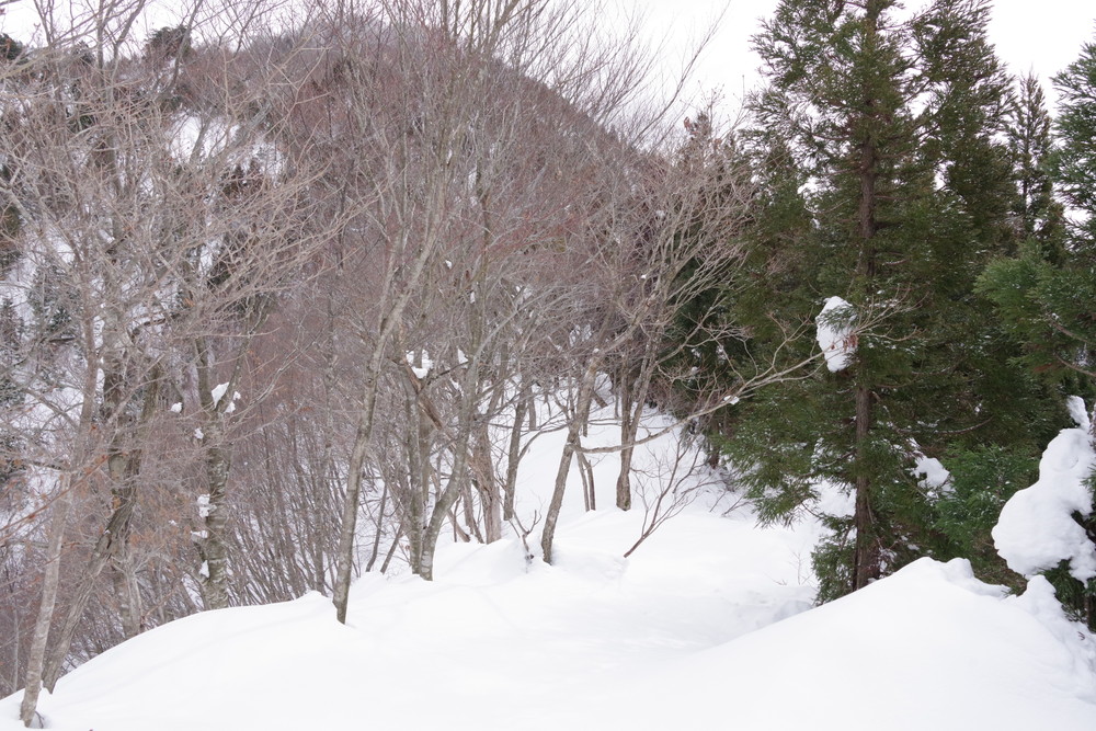 そこから約2km歩いてやっと尾根の取り付き点です。約1時間歩きましたよ。