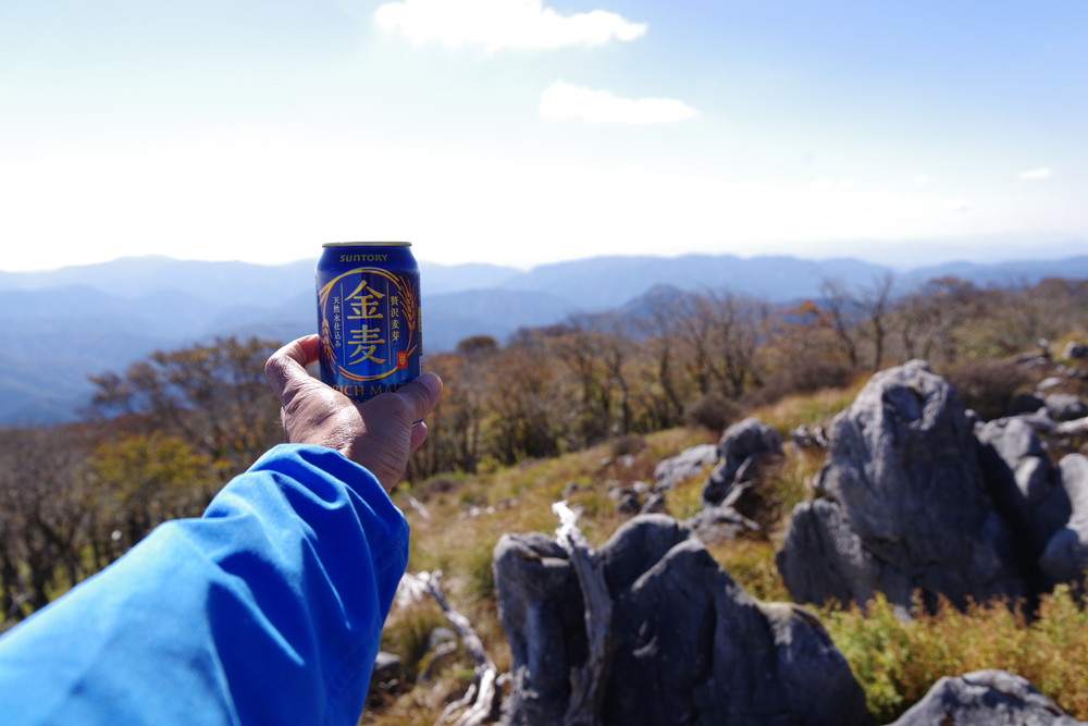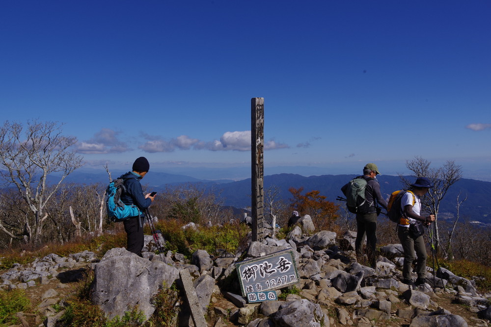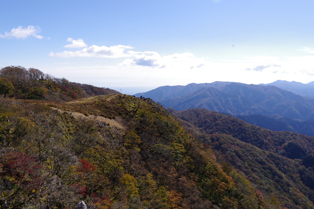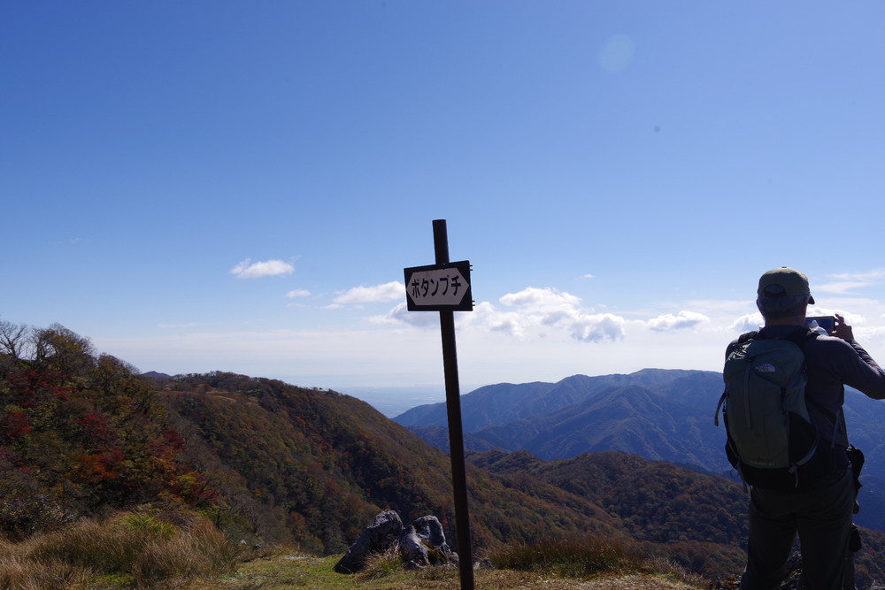 。しっかり汗かきながら辛抱して登りました。丸山の山頂で写真撮った後ボタンブチに向かう