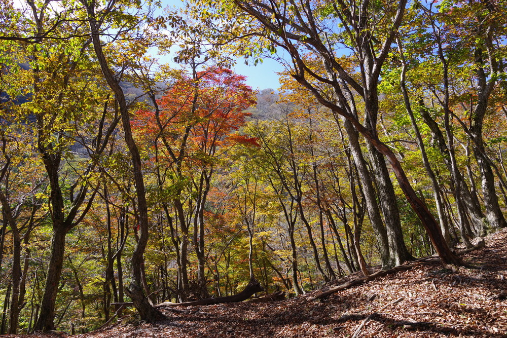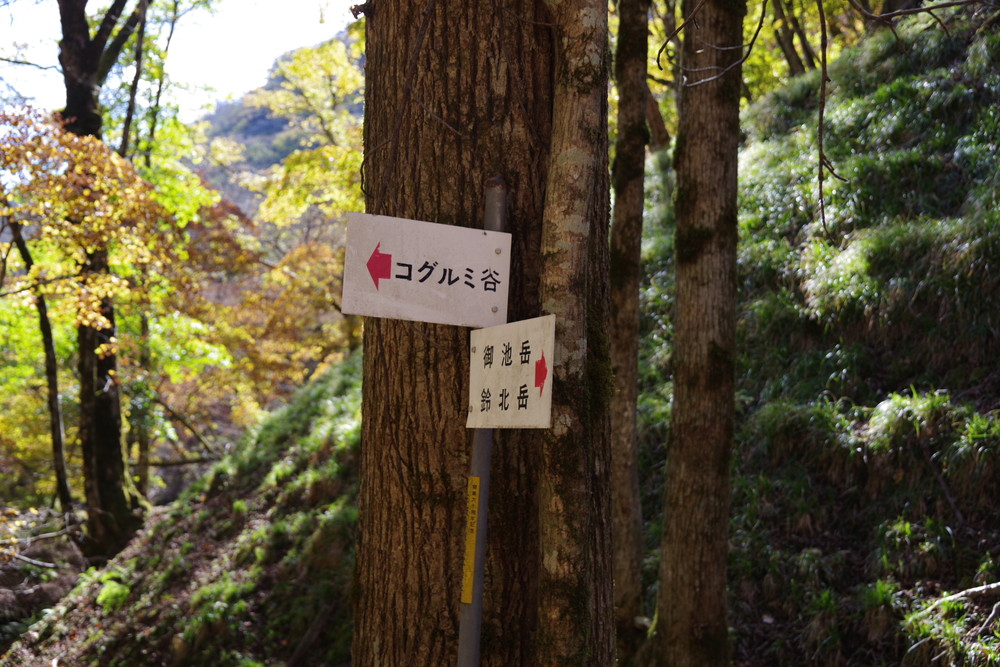 自宅を7:20に出発し鞍掛トンネル東に駐車、コグルミ谷登山口まで道路を下り登山開始