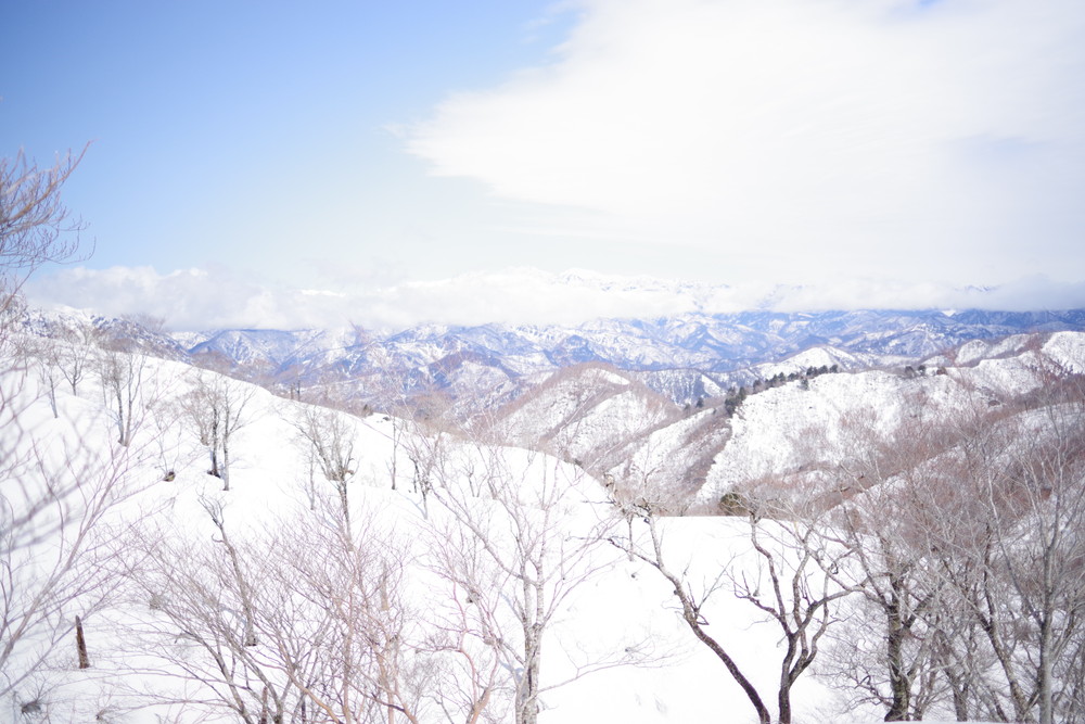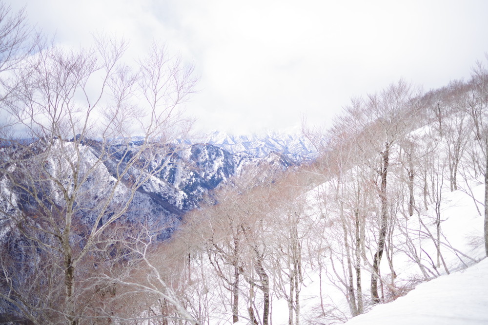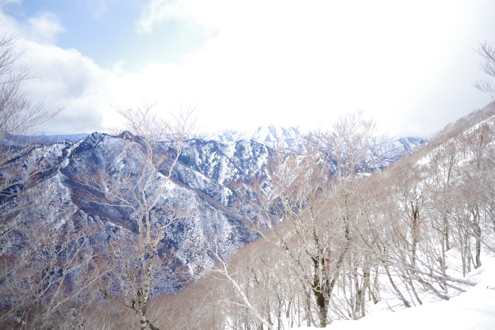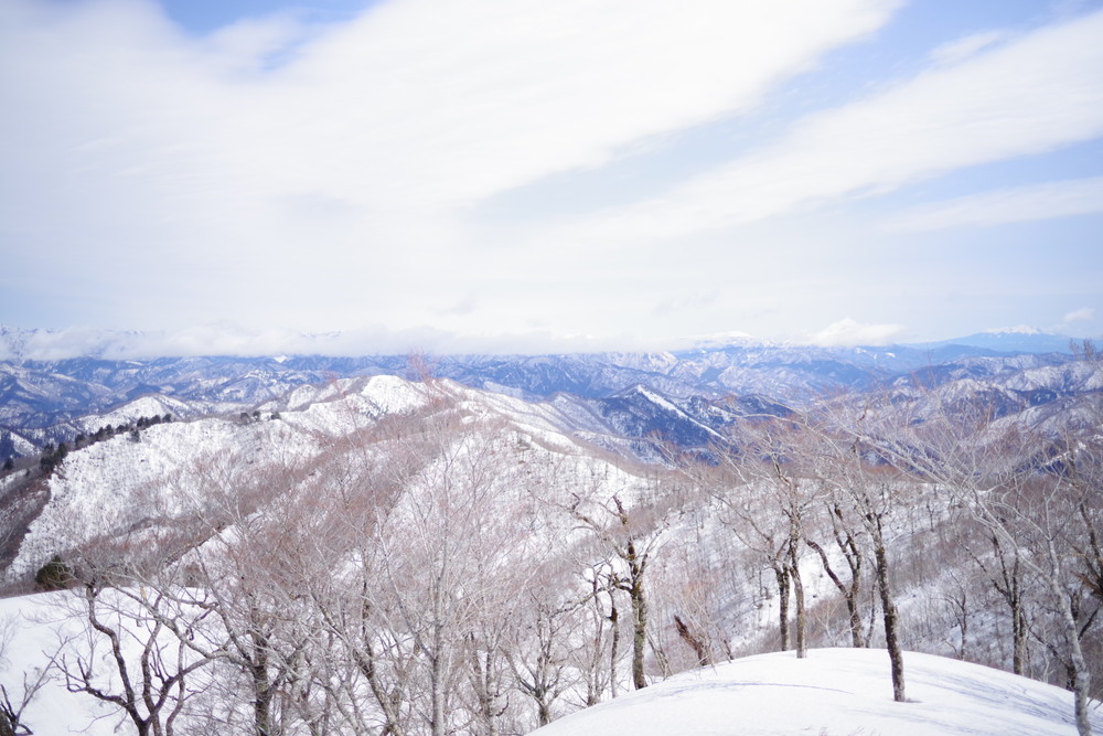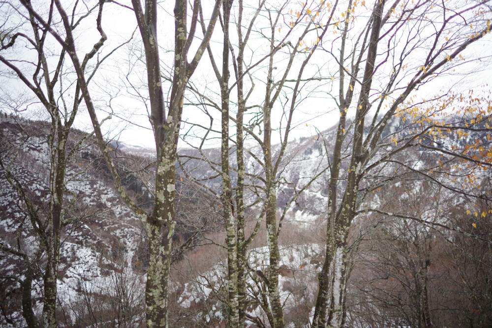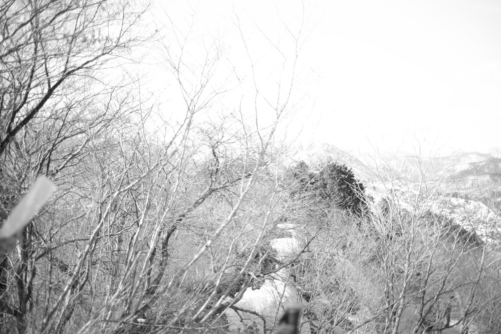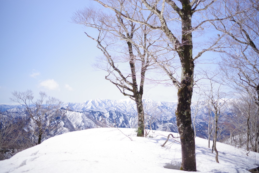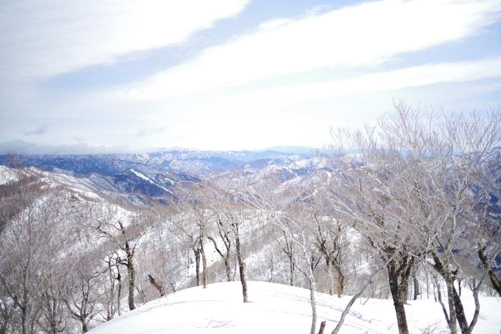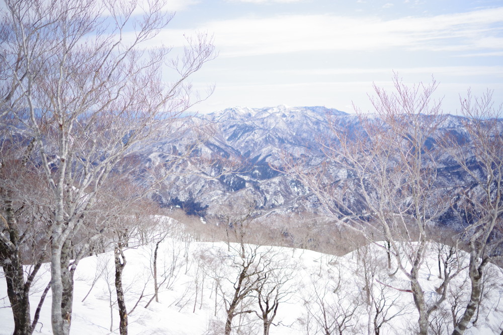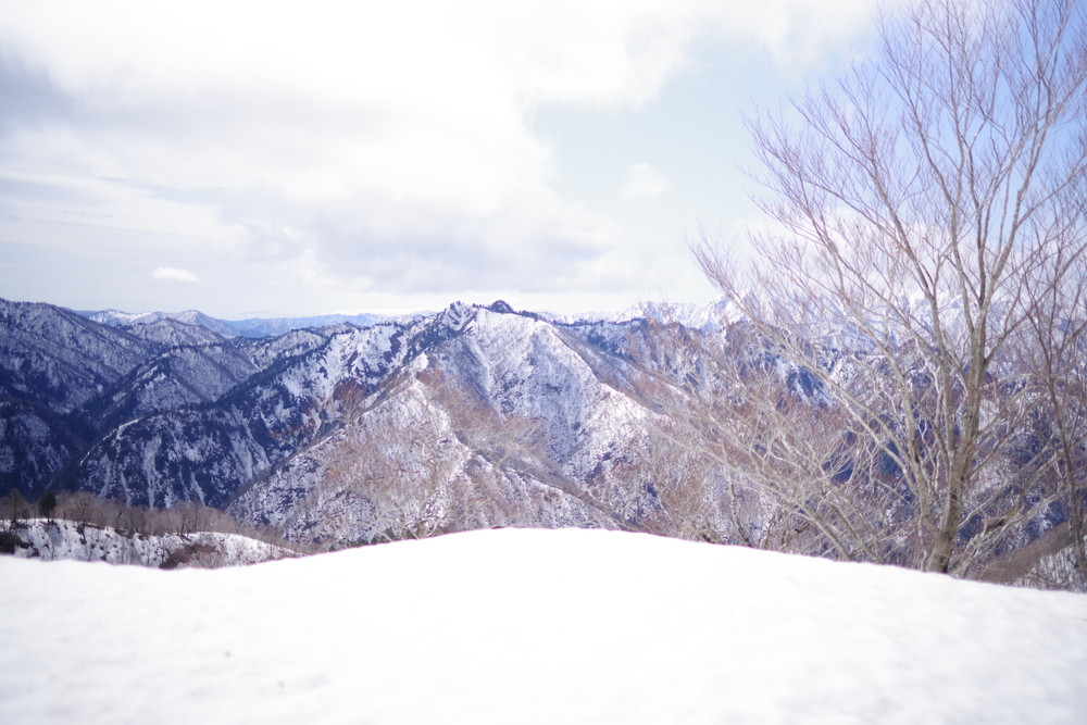 途中雪が切れていて藪の中をスノーシューのまま歩く個所もあったりして前途多難な感じ。
