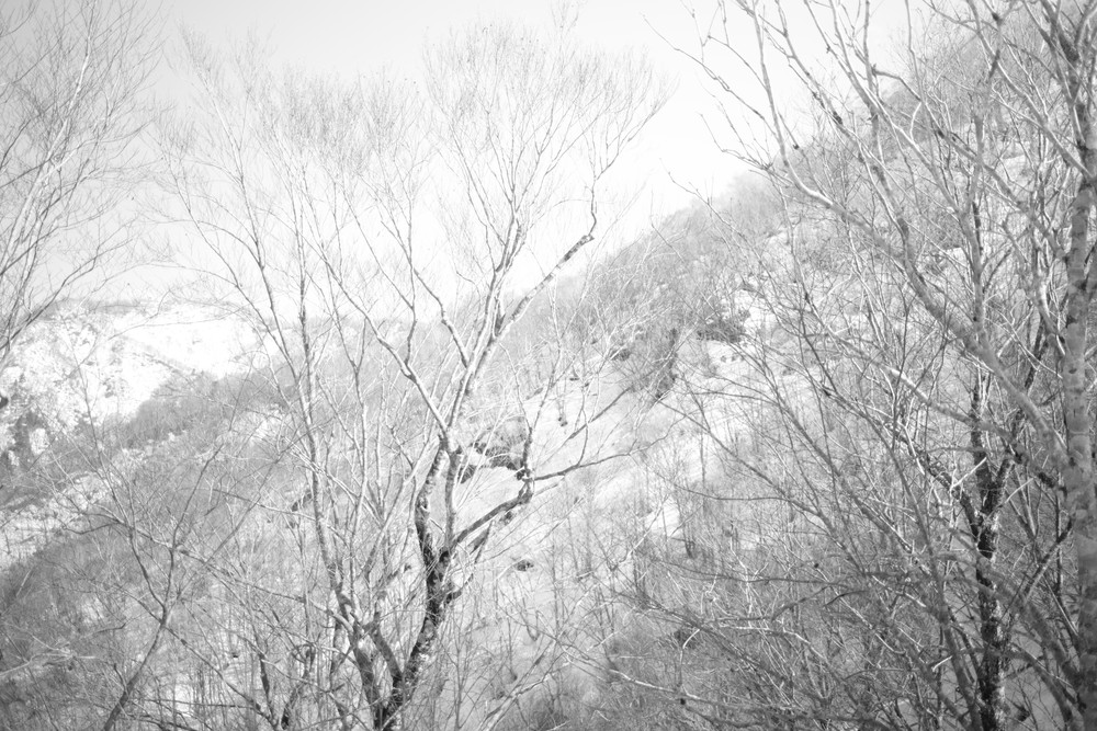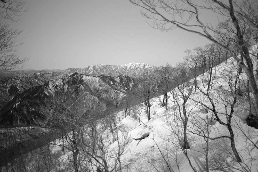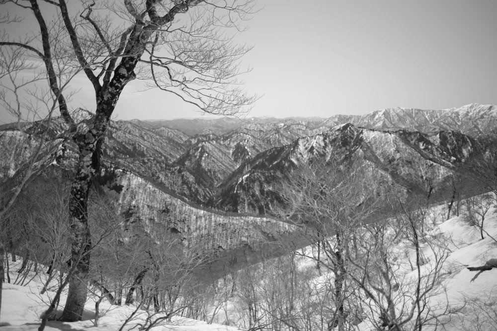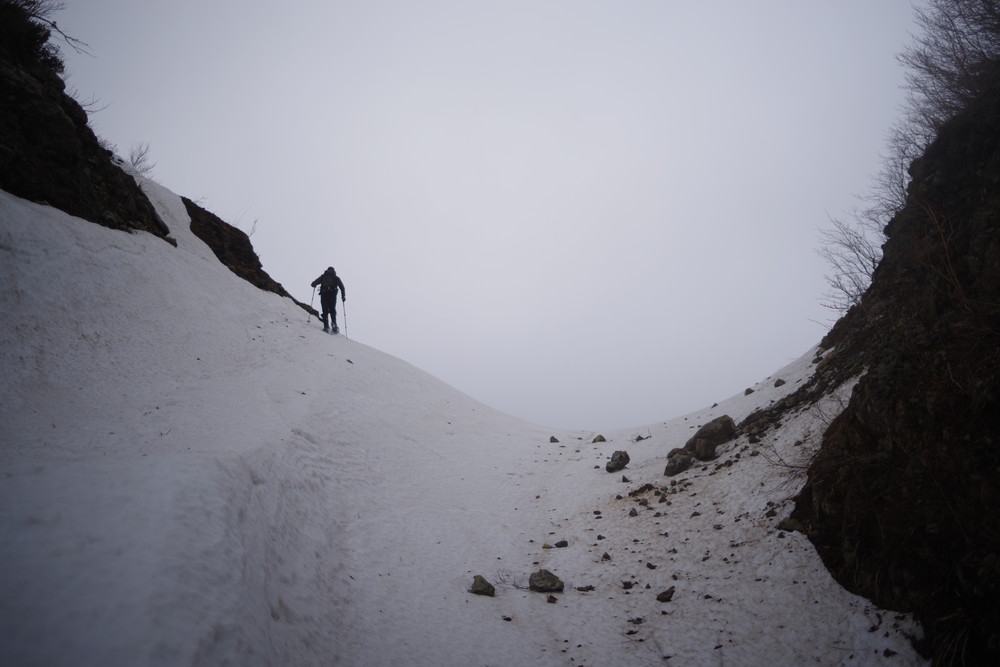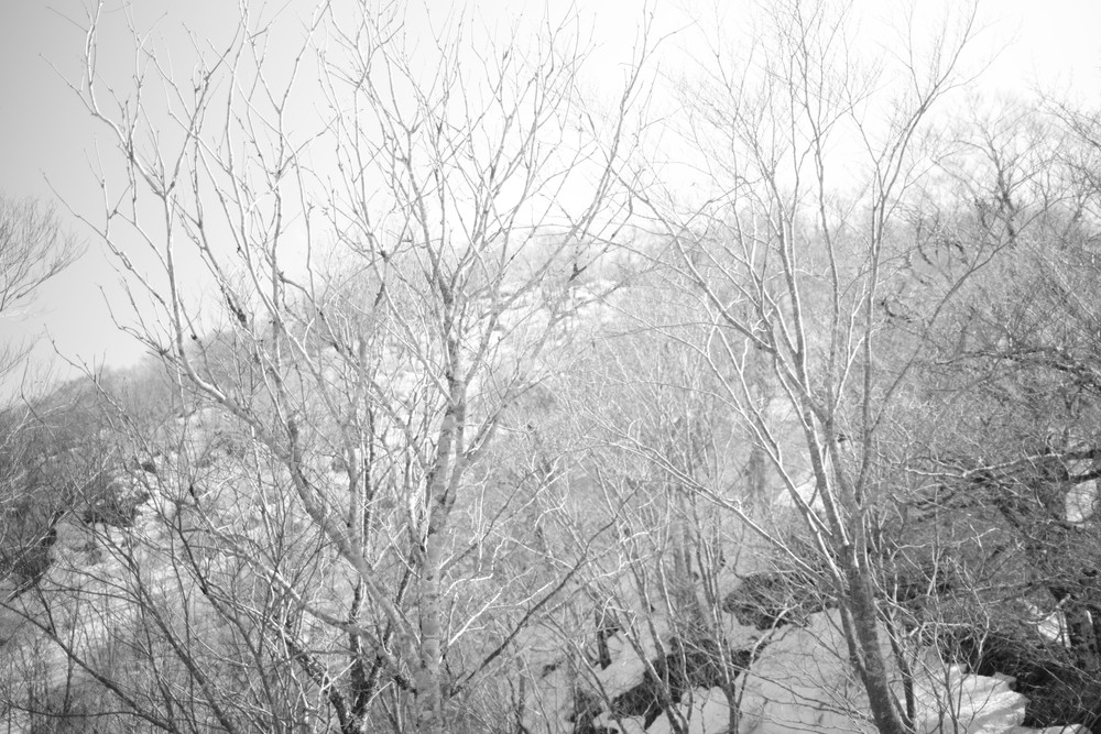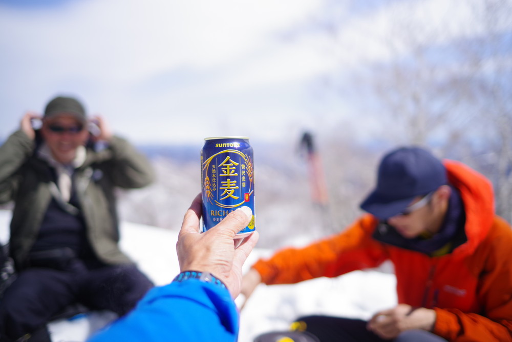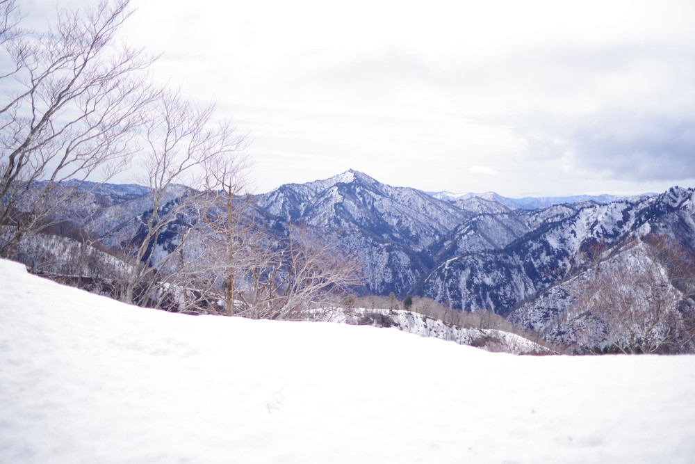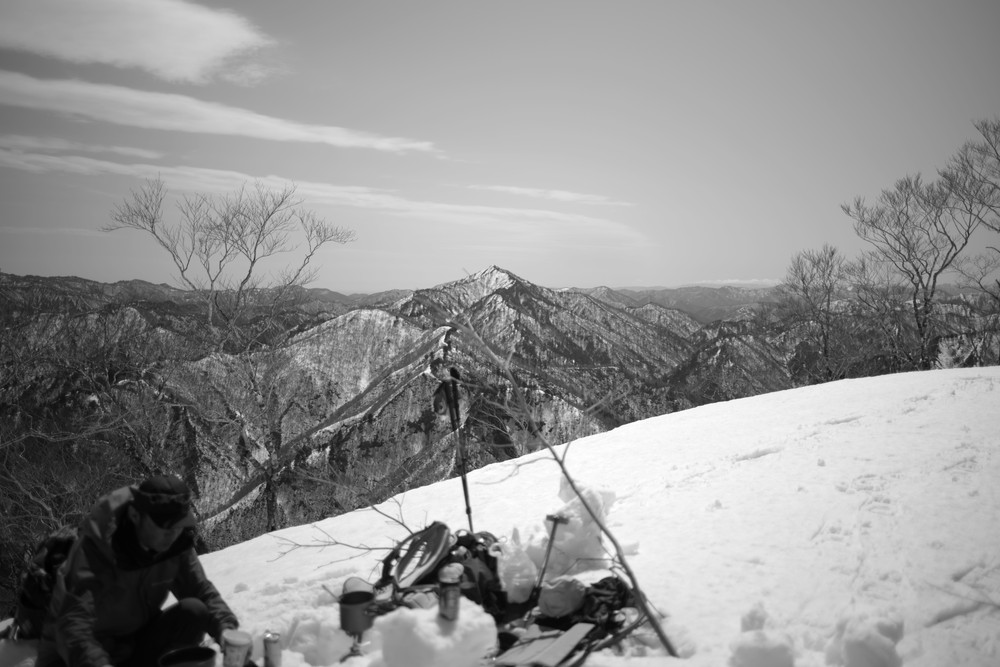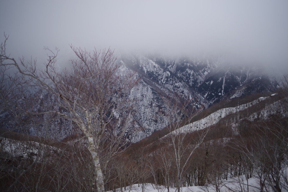 途中雪が切れていて藪の中をスノーシューのまま歩く個所もあったりして前途多難な感じ。
