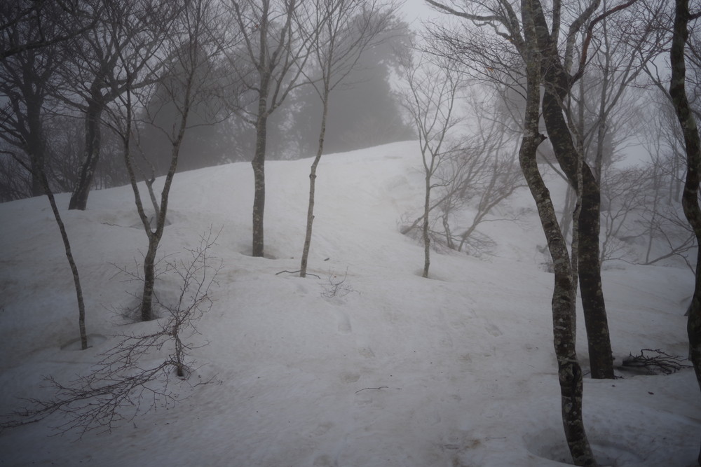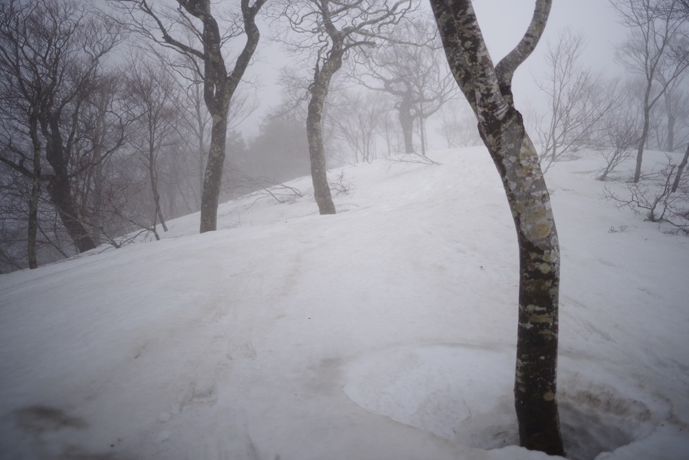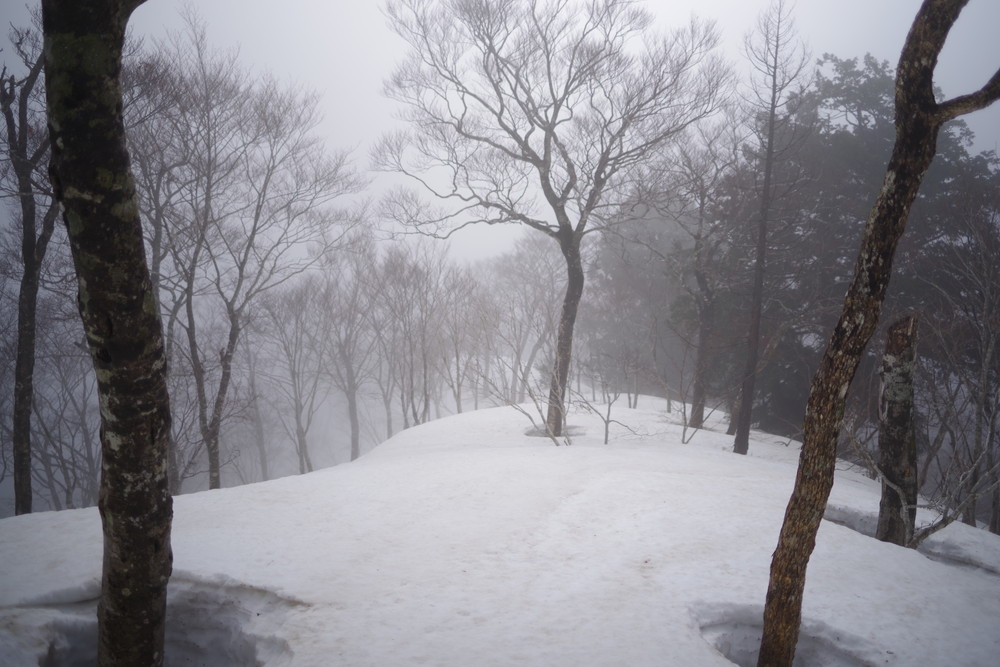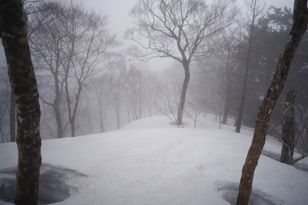 岩谷山に到着したときにもガスがひどくて周り真っ白でした。