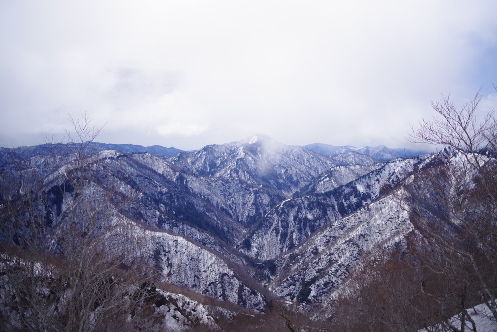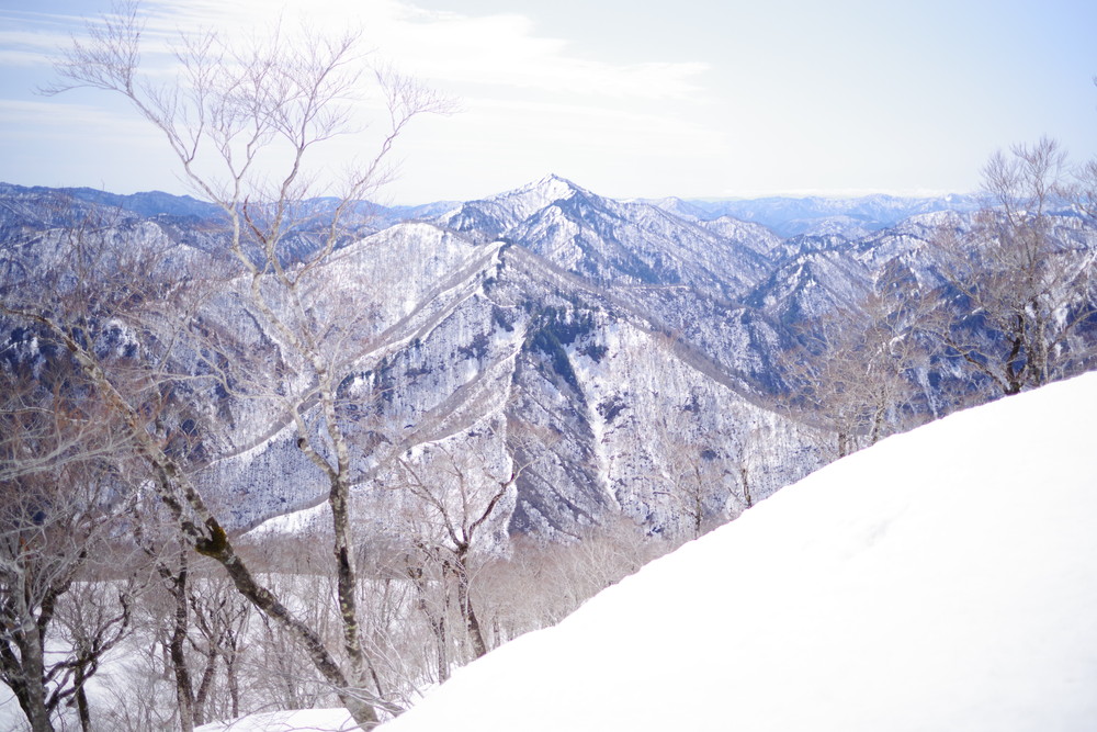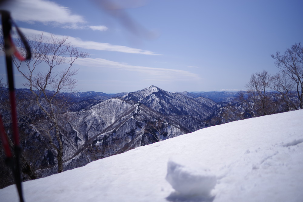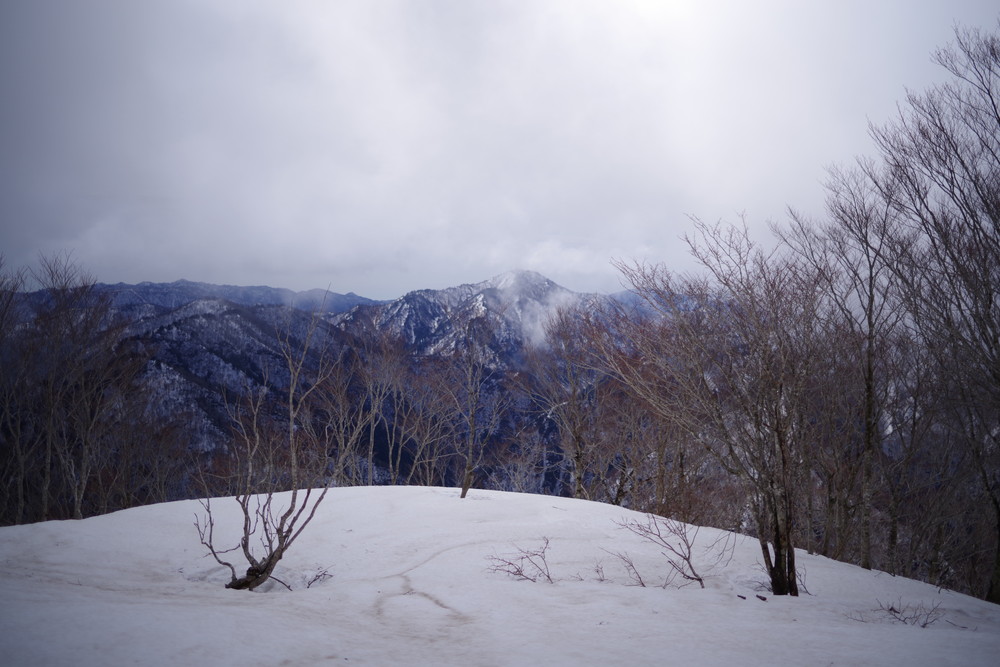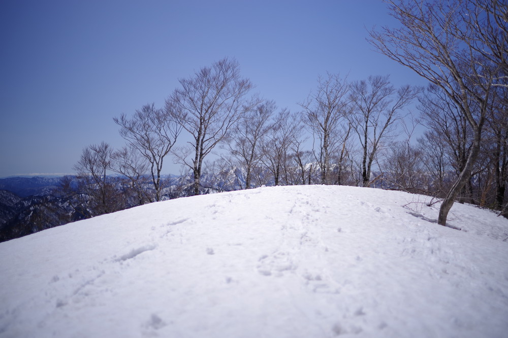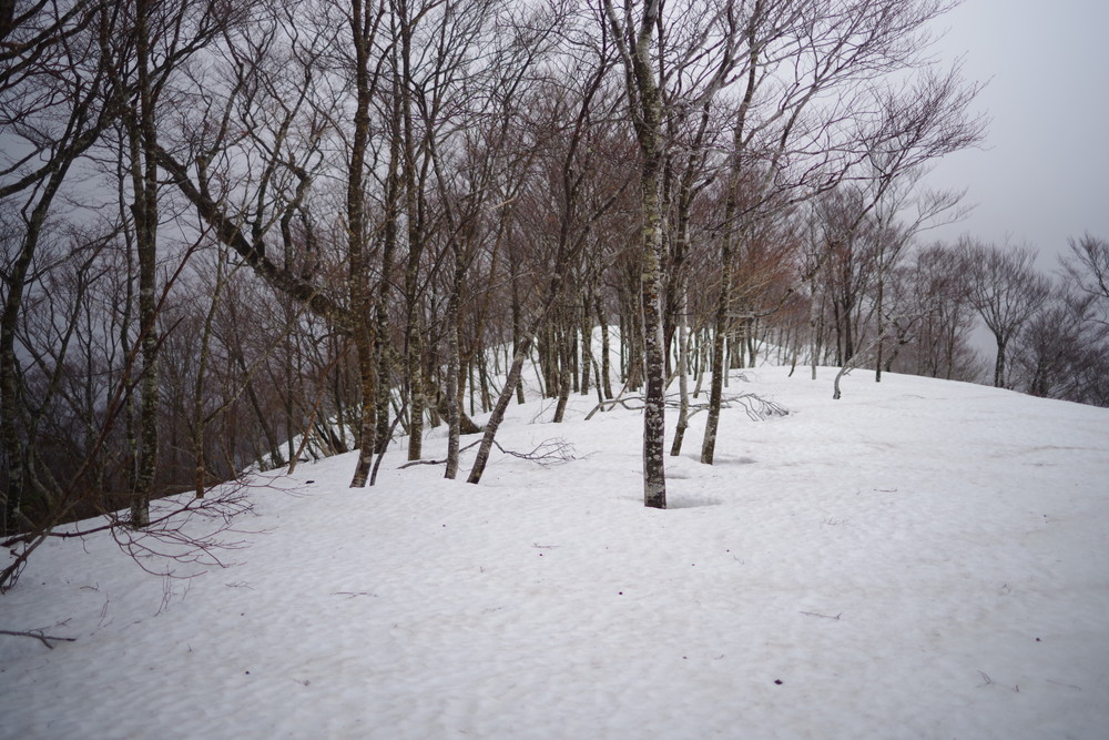 結構な登りが続き山頂西の同じくらいの高さのピークに到着。