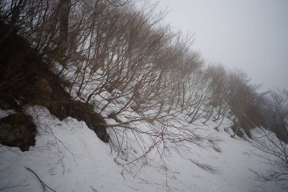とりつきから急登。ヒーヒー言いながら100m登る。