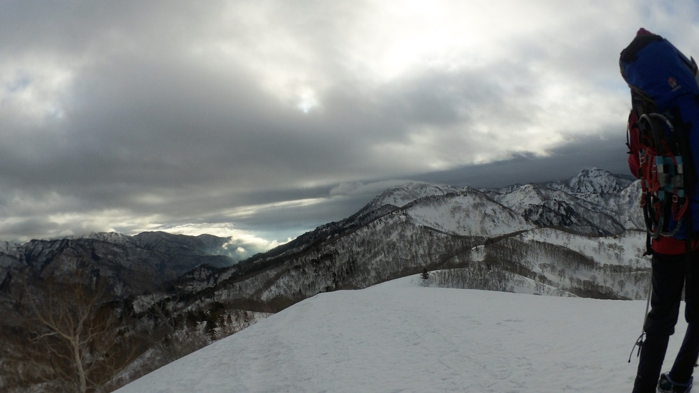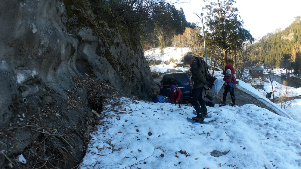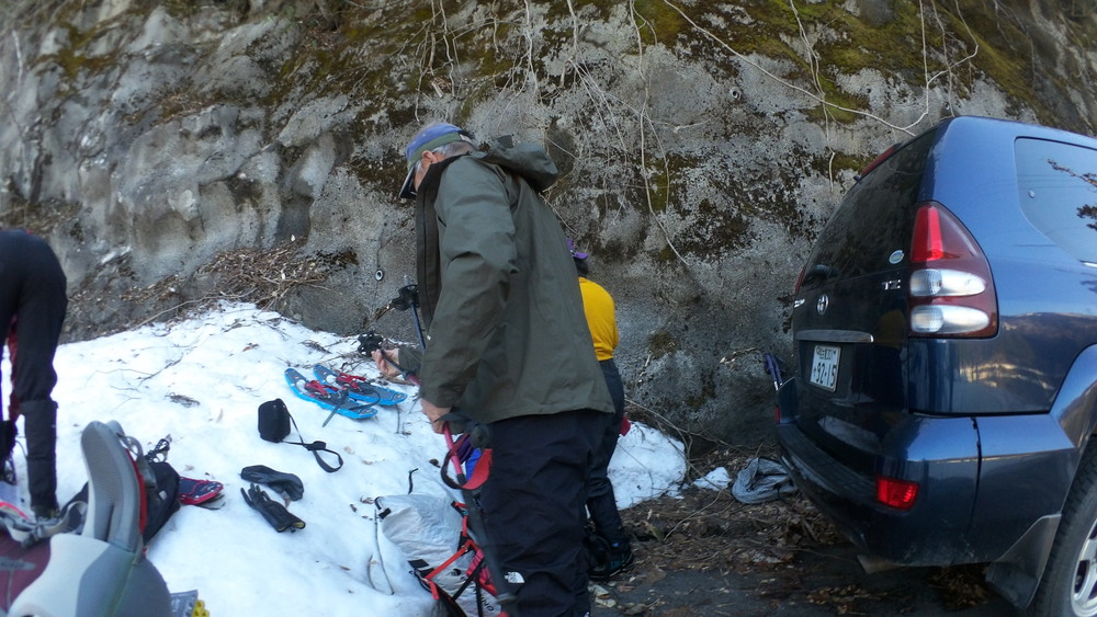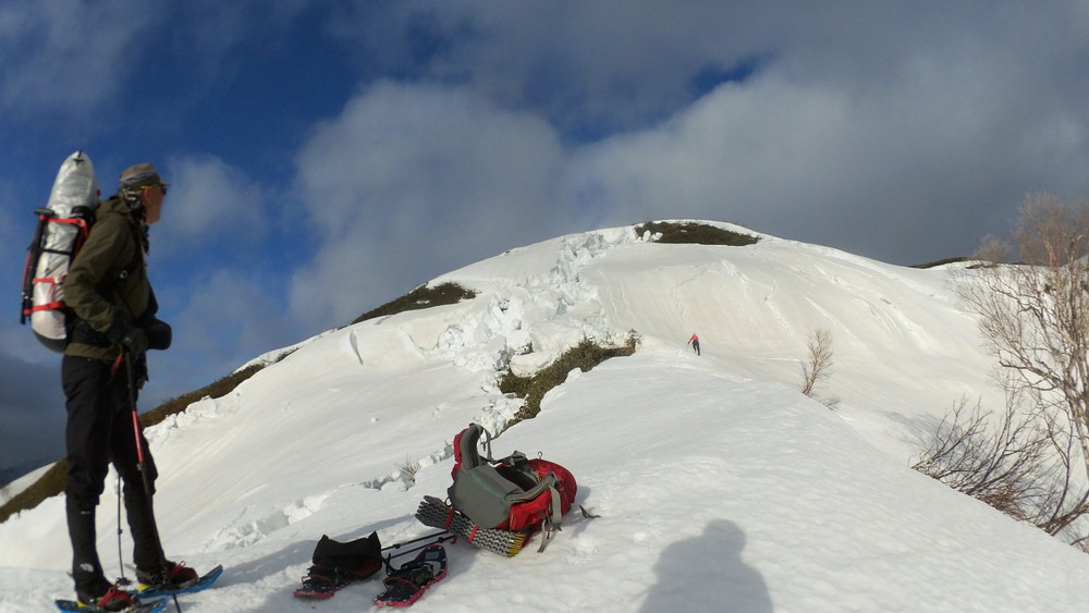 スノーシューを取り付けたザックは大きく重く大変なのですが、まあ何とか大丈夫。