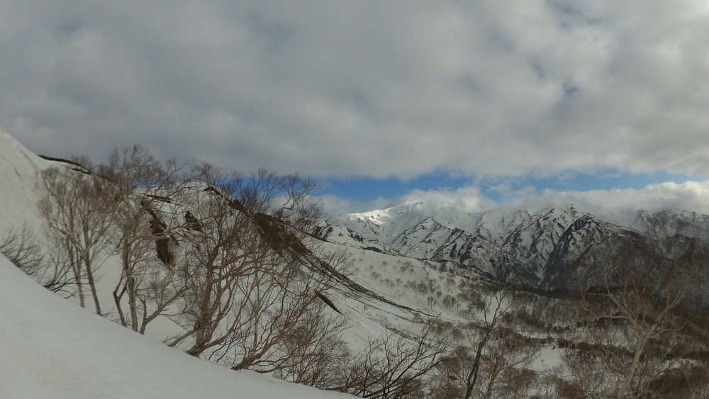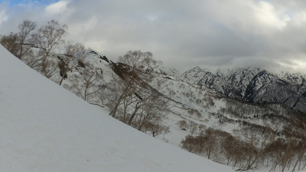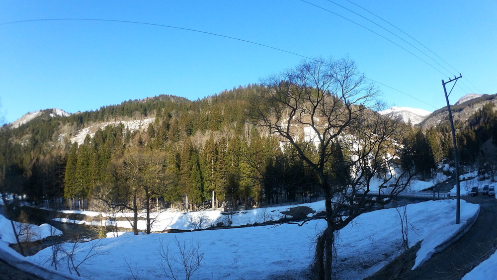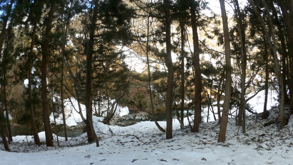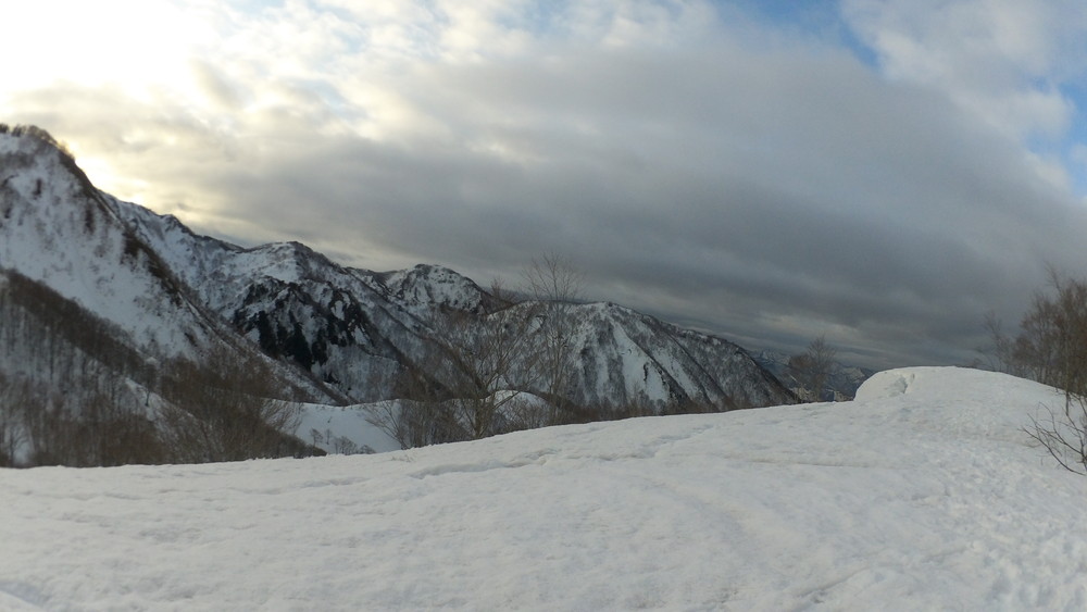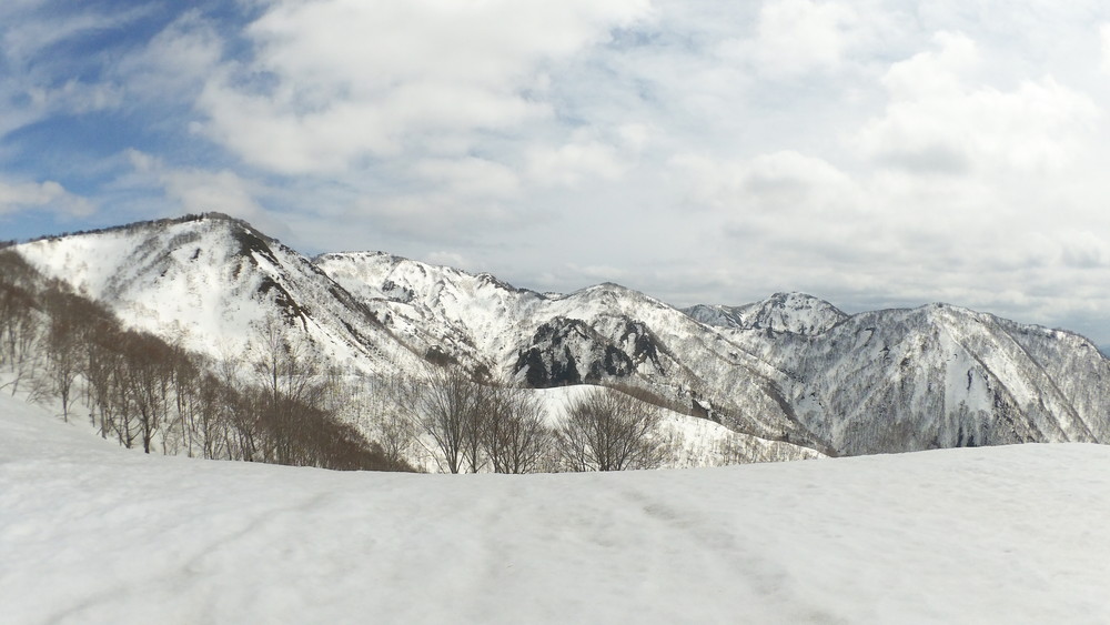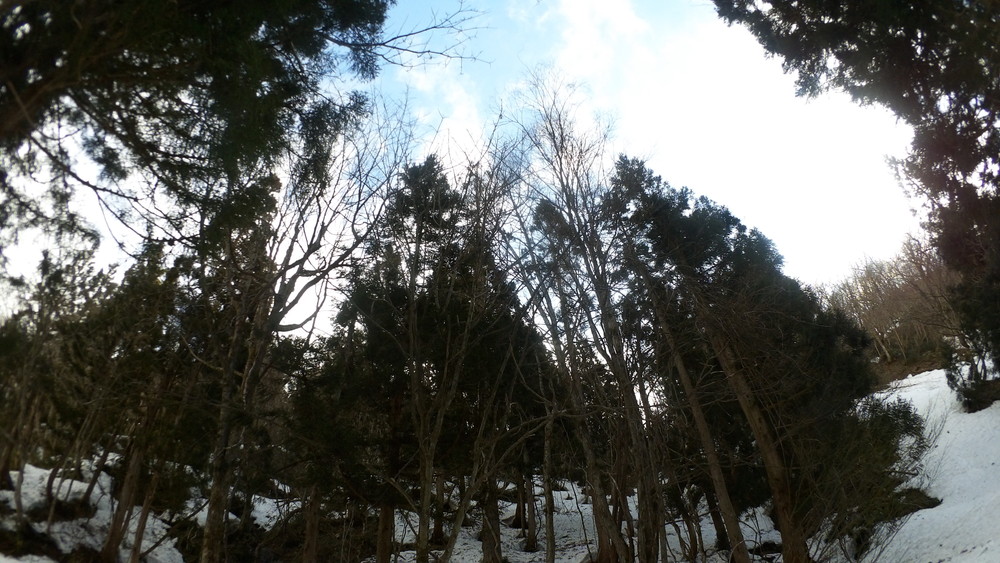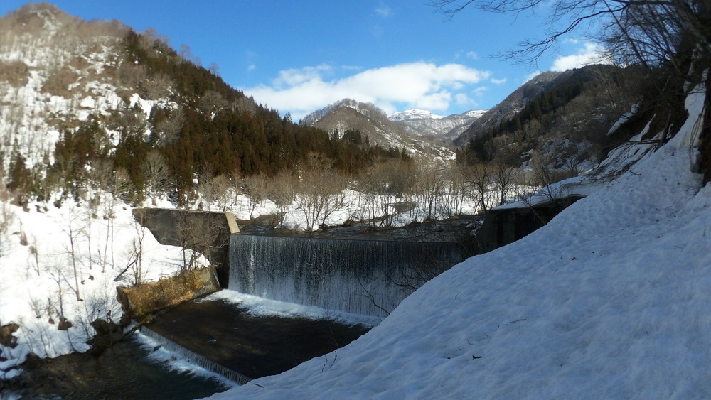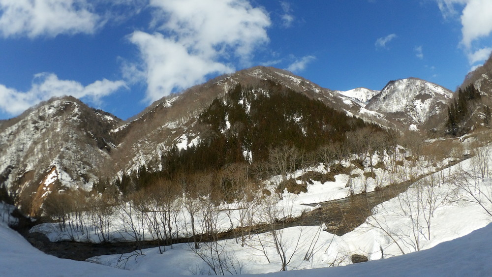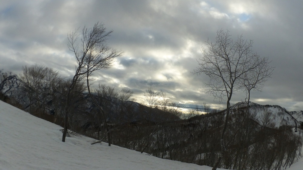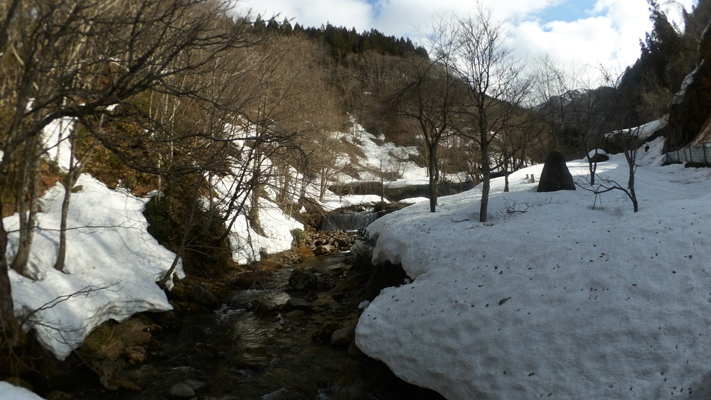 林道は何か所も雪崩ており、2.8km付近ではザラメ雪に加え足を置く幅のない斜面をトラバースするところがあり落ちれば段差8mほどの川にはまりそうな危険個所。かなり緊張しました。復路ではアイゼンにした方がよさそうだな。