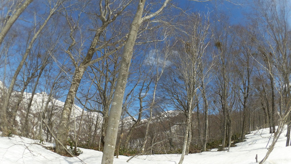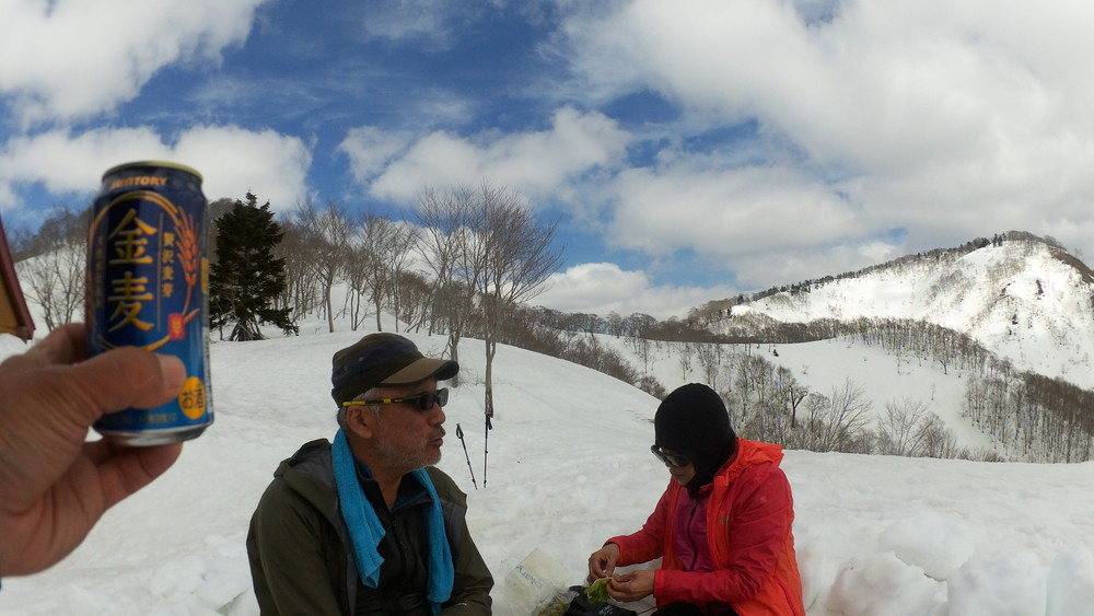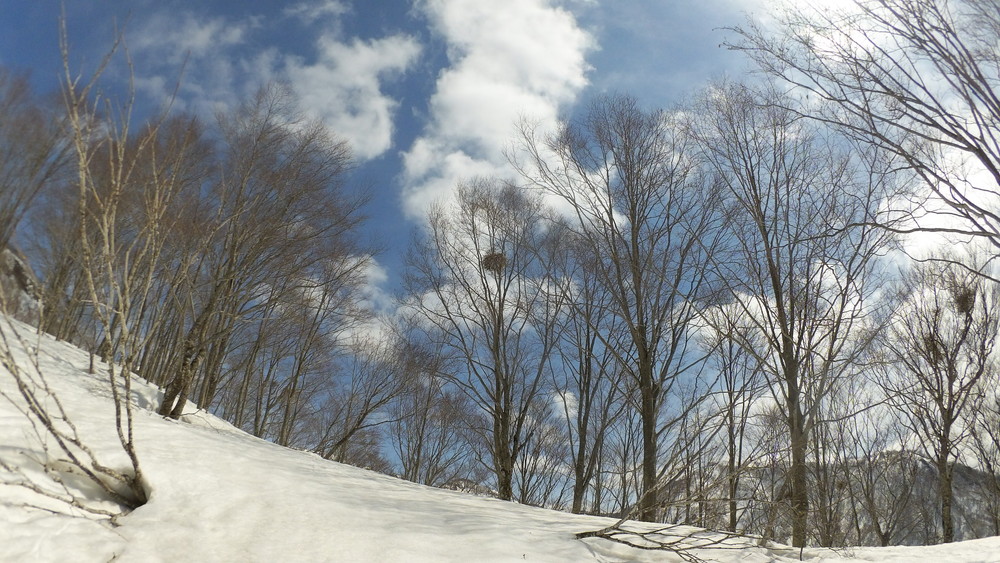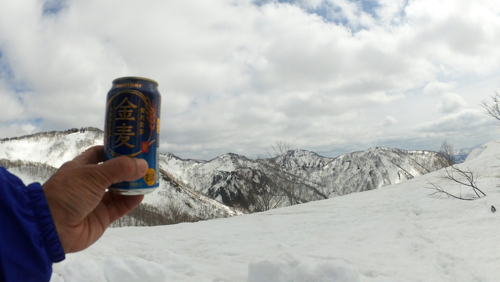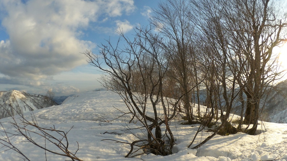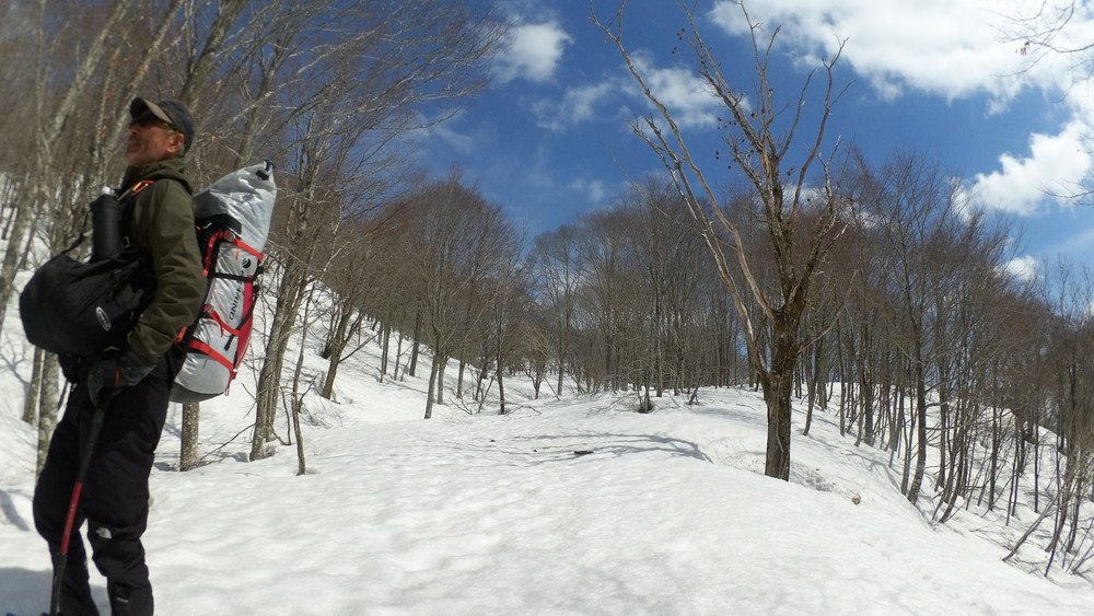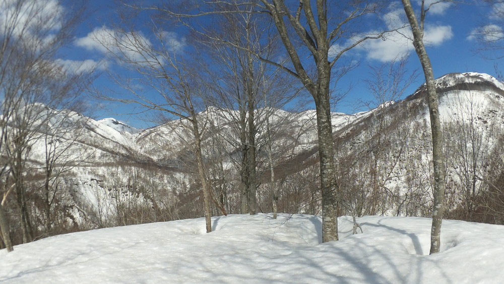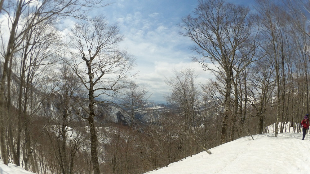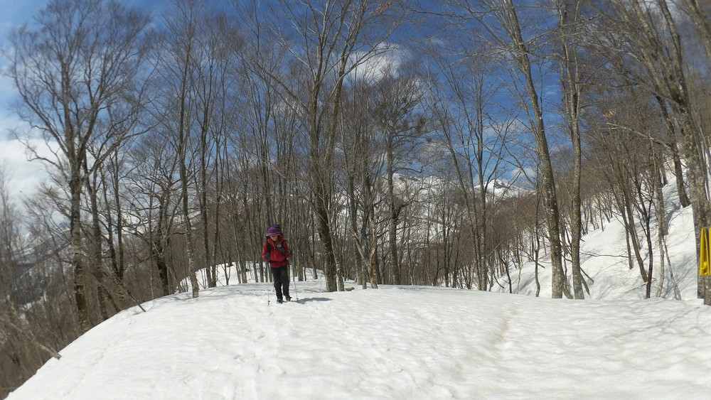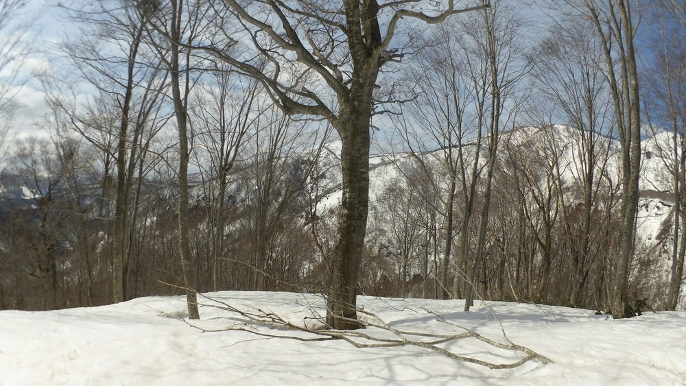 ここでも休憩。今年は雪が多いので藪やうるさい枝はほとんど雪に覆われていて景観も良いし歩きやすい。