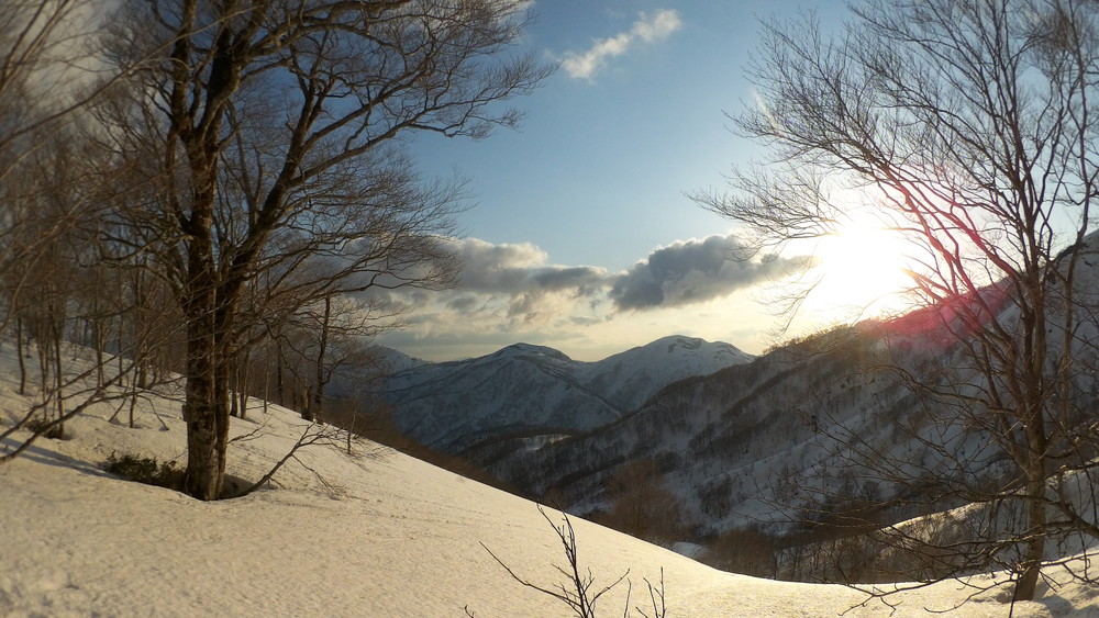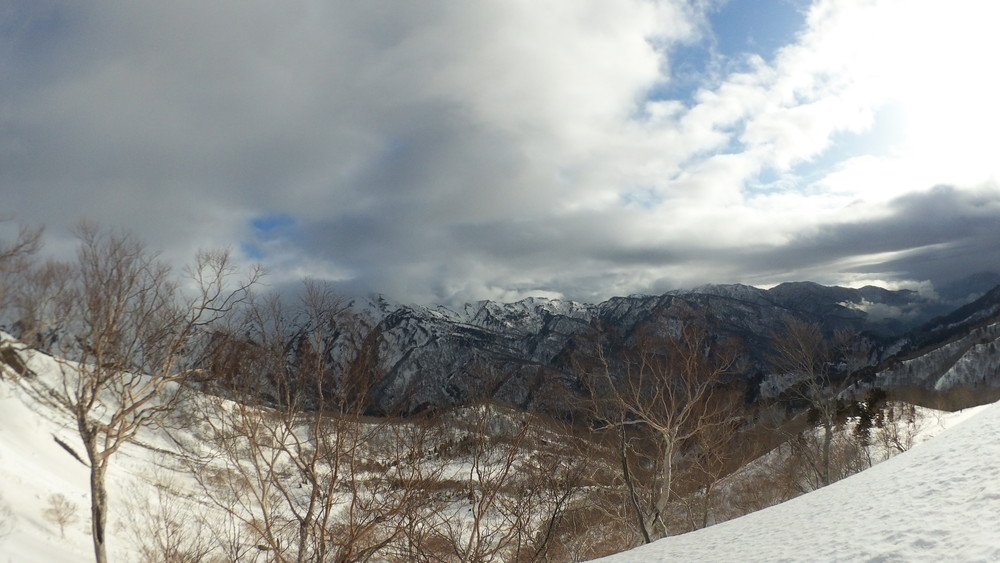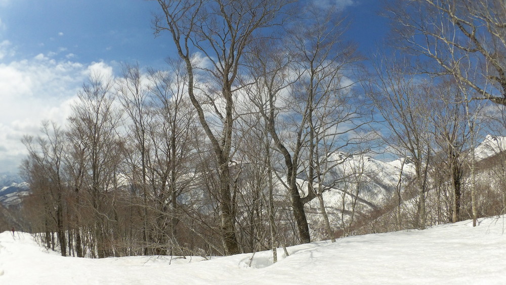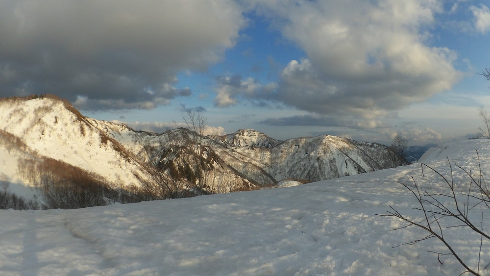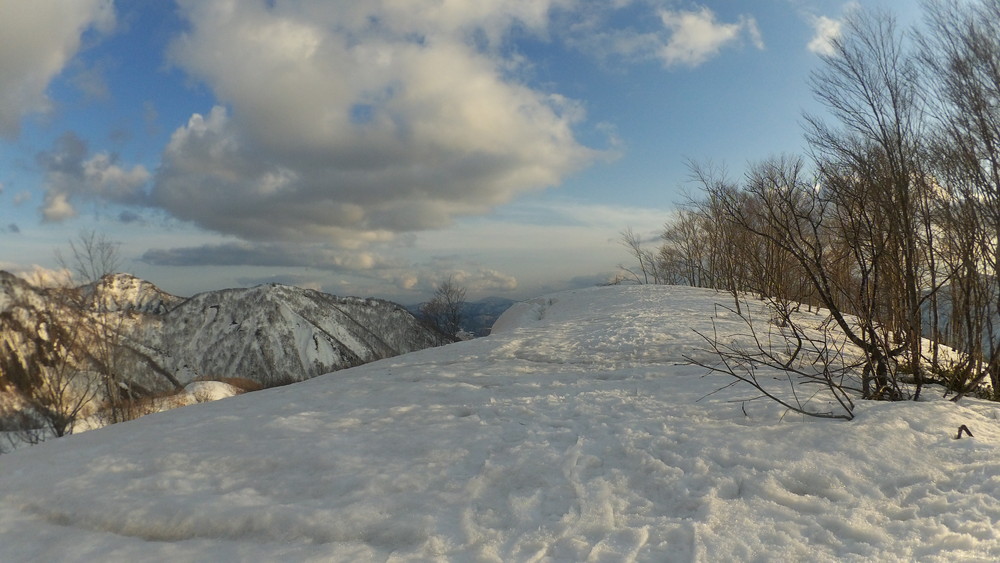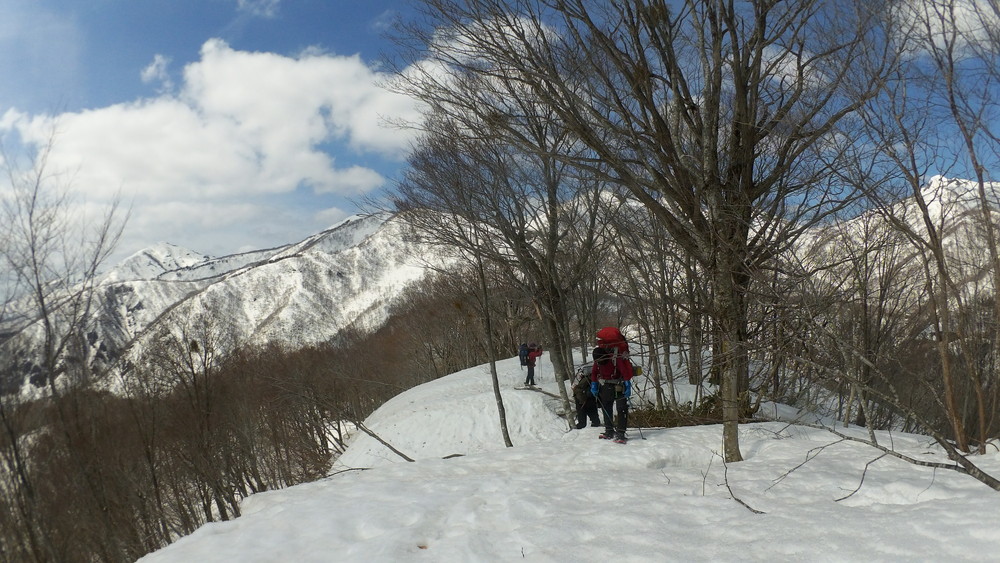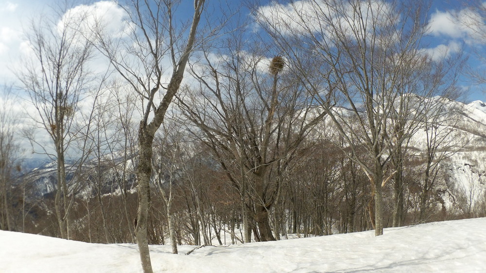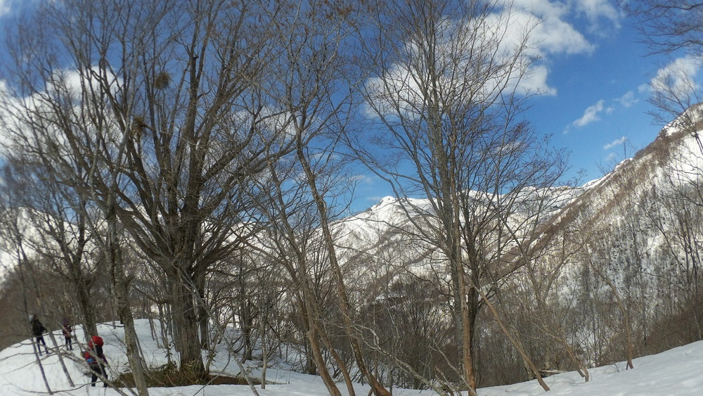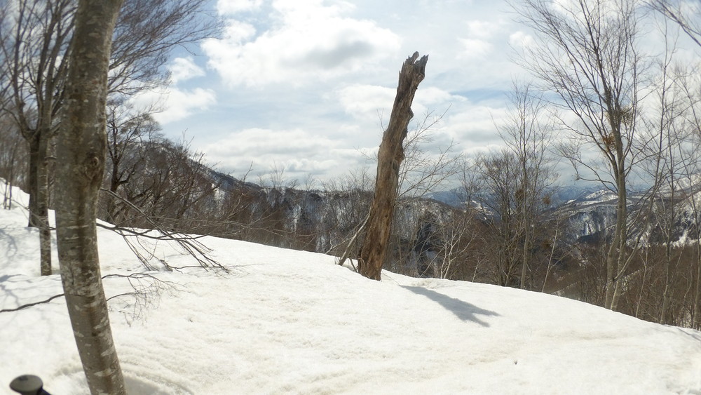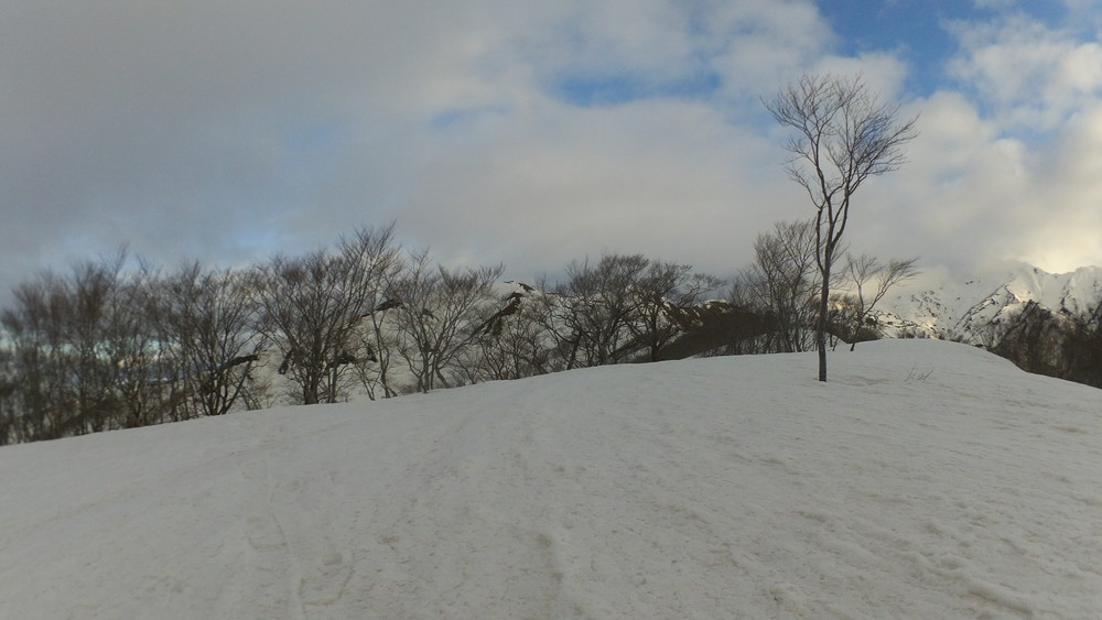 ここでも休憩。今年は雪が多いので藪やうるさい枝はほとんど雪に覆われていて景観も良いし歩きやすい。