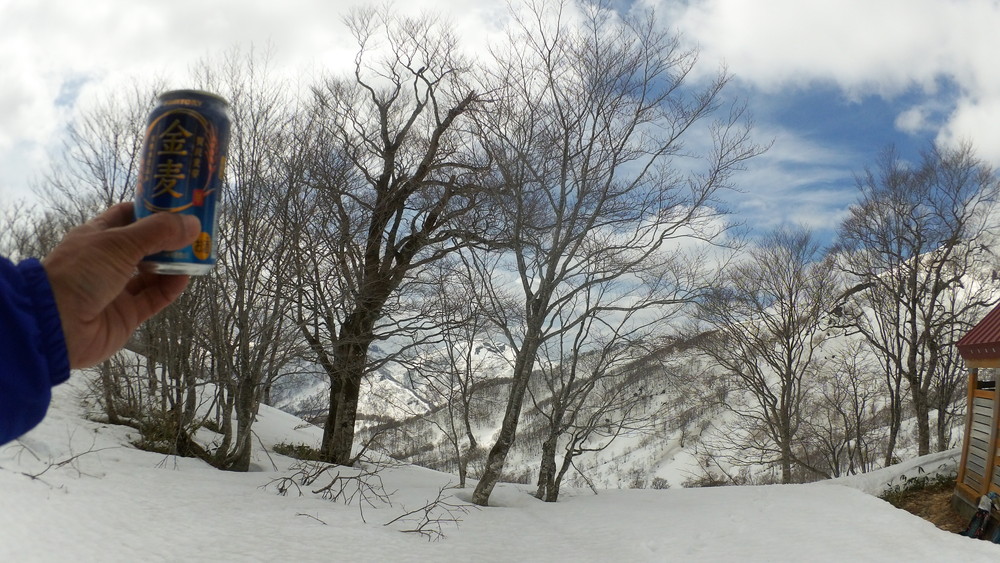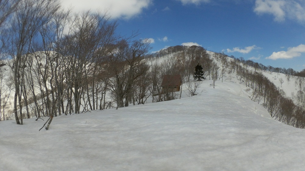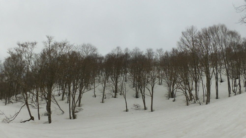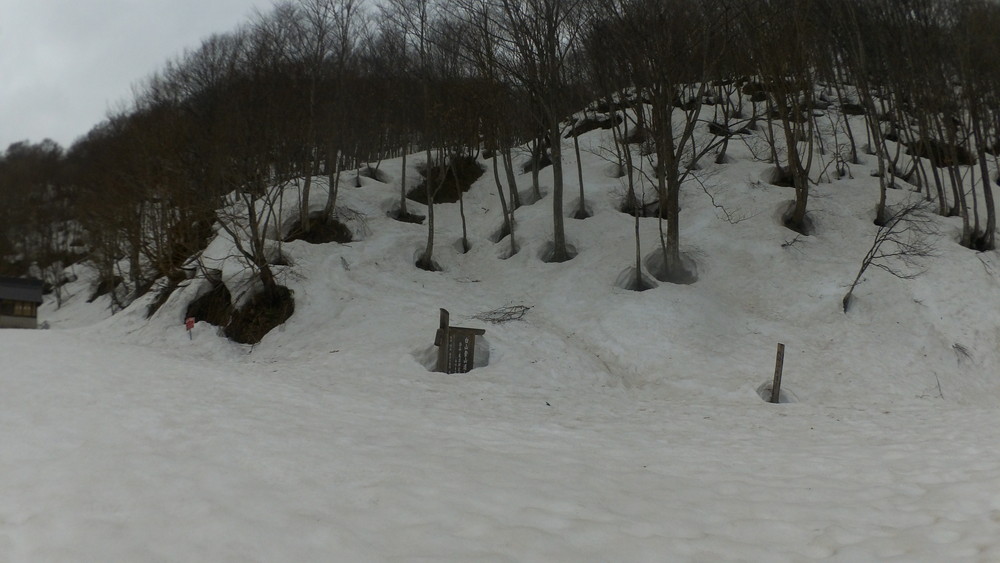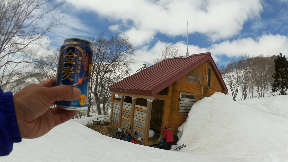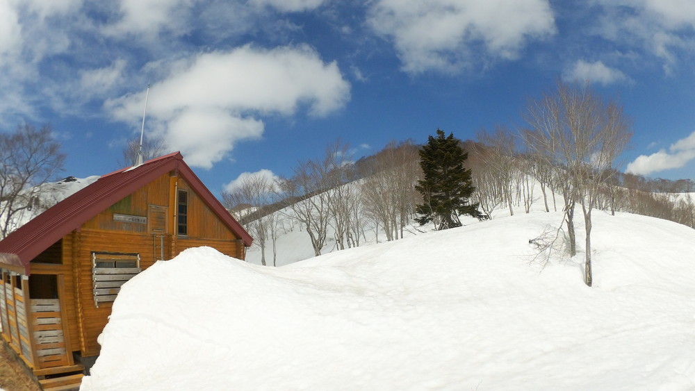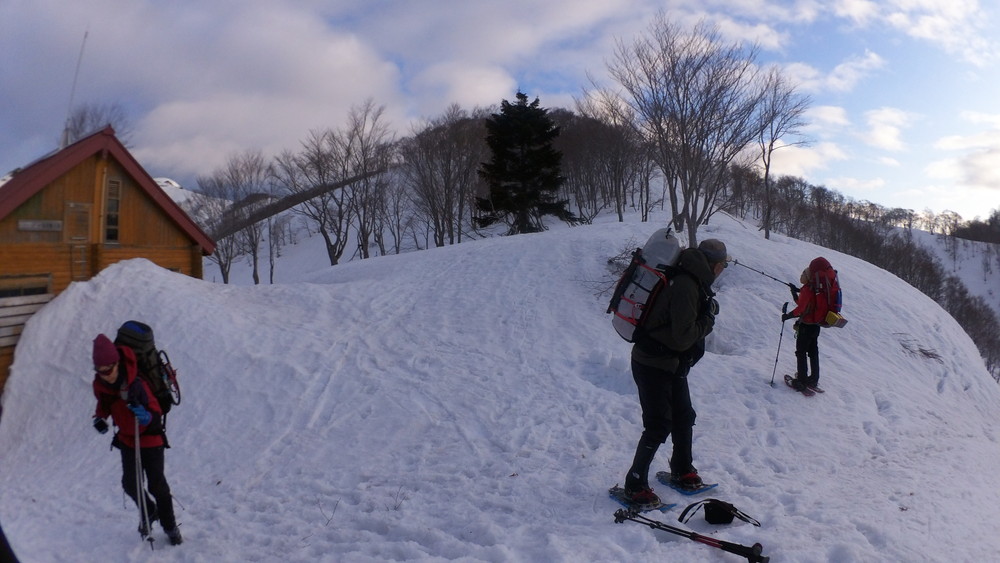 そこからはチャッチャと下山です。避難小屋の前でスノーシューからスパイクチェーンに履き替えたワタクシはサッサか歩きます。