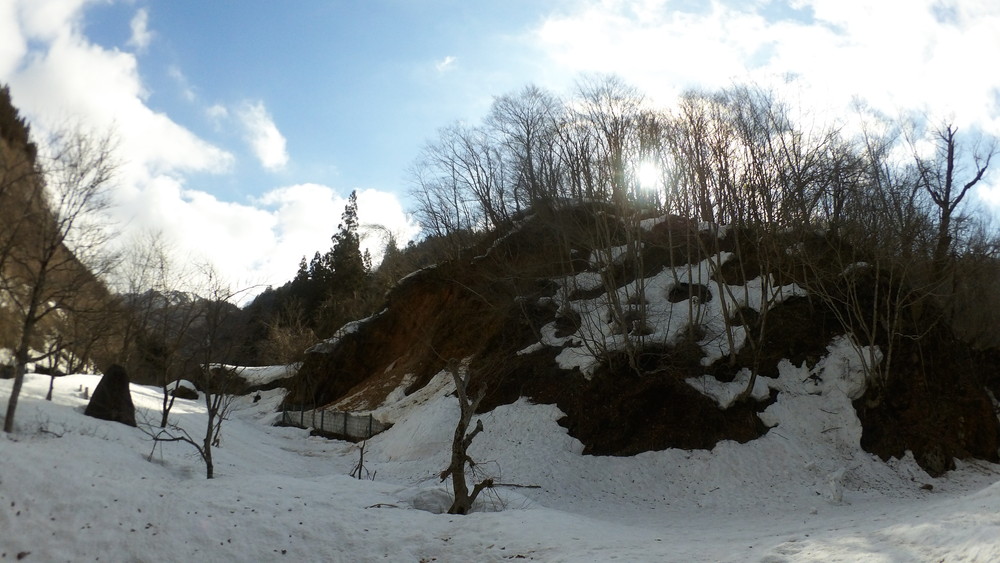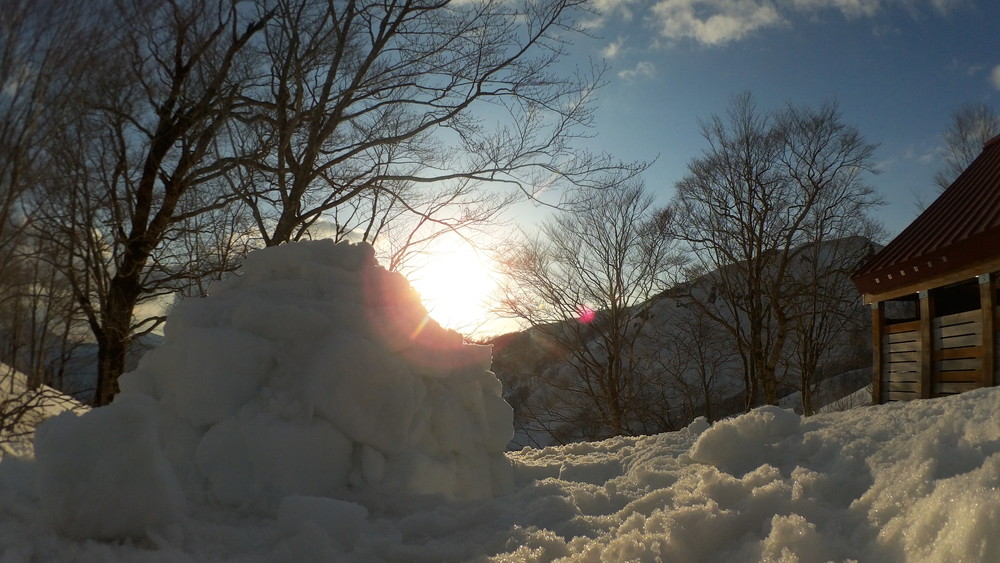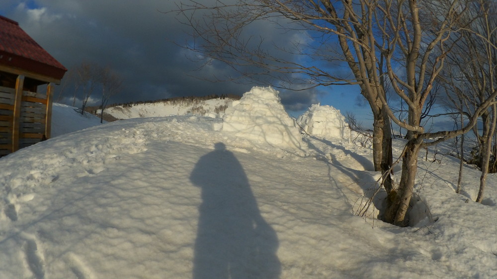 日差しが強くて雪のブロックが溶けてきてカメラがずれ落ちたんですね。