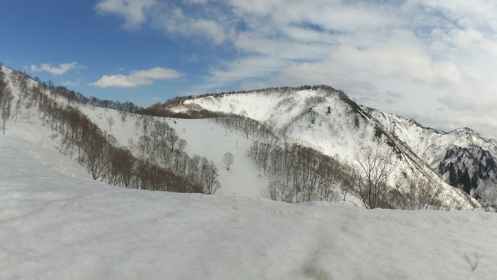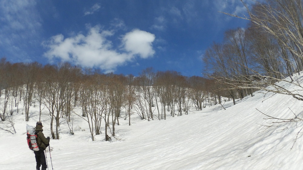 途中P1512に向かう1,400mから1,470mくらいまでが急傾斜で雪も滑り気味なのでちょっと苦労しました。